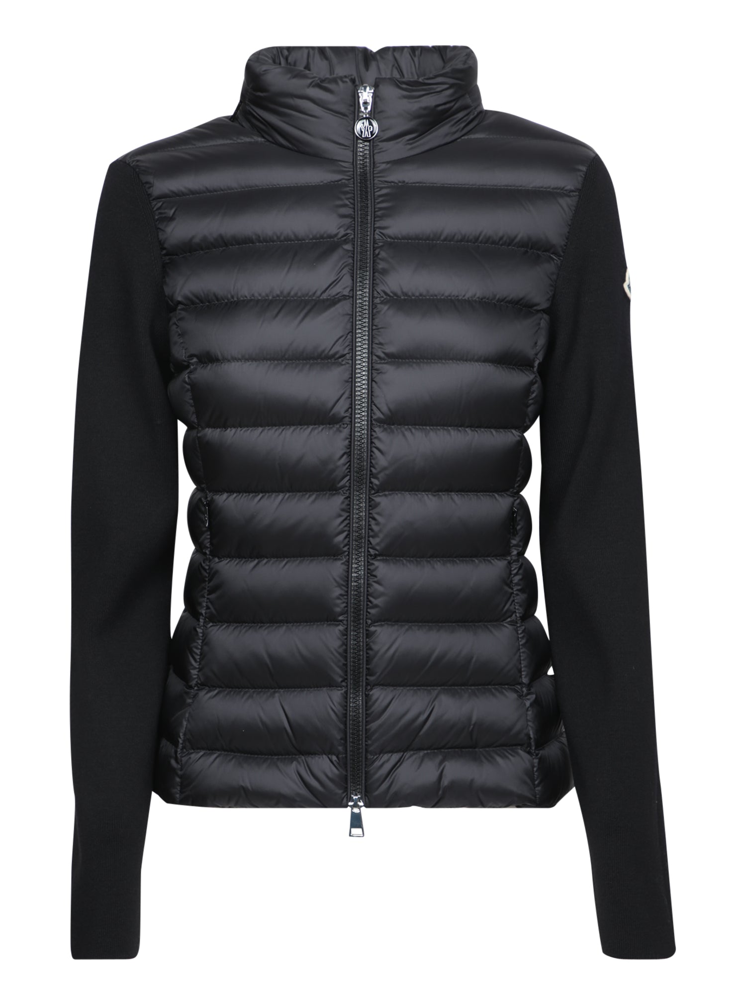 Moncler wool cardigan with padded details. Ideal for mid-seasons; warm and enveloping, with a structured and contemporary design