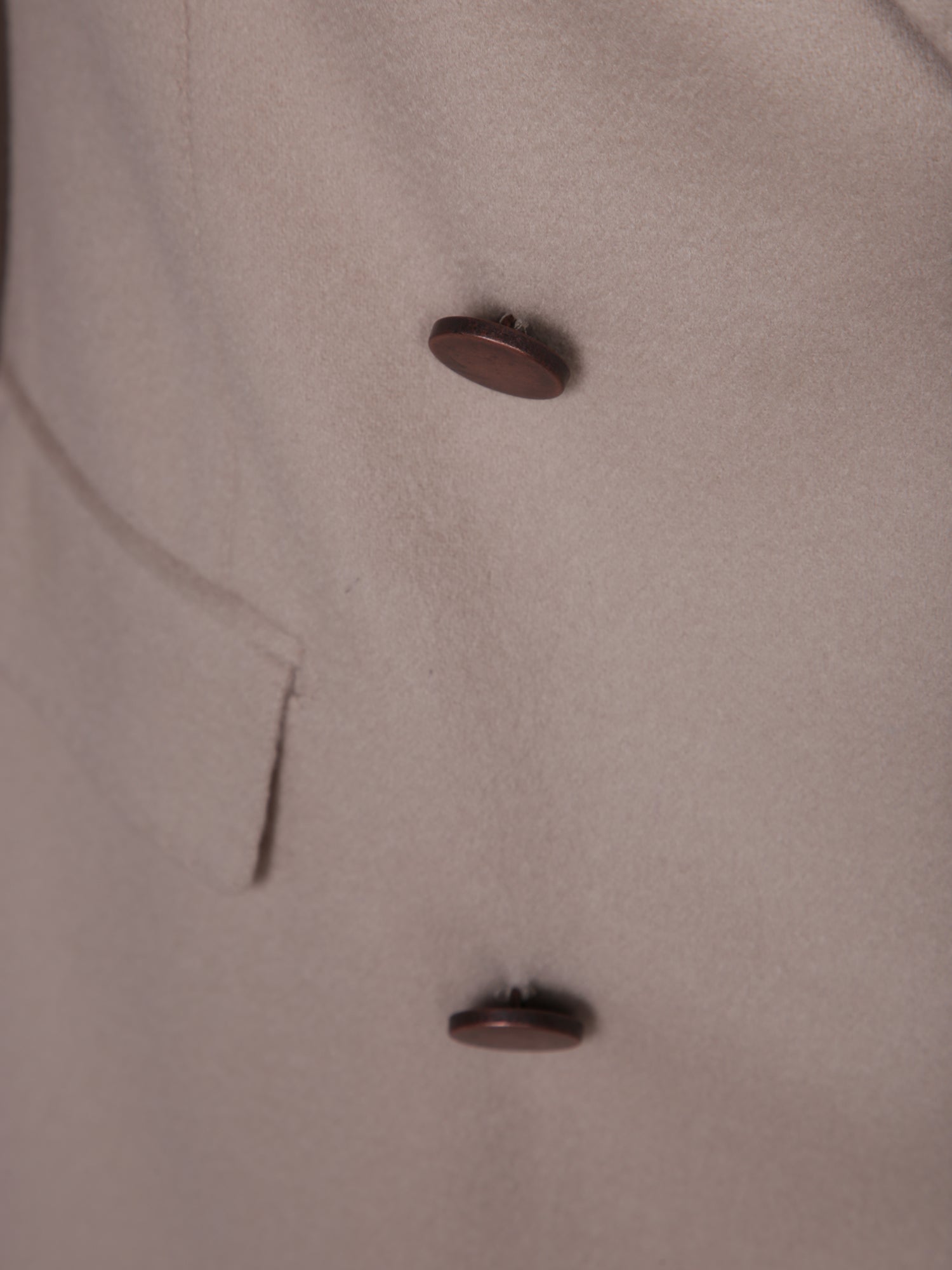 Double-breasted cashmere jacket. Peak lapels. Dark brown button closure. Flap pockets.