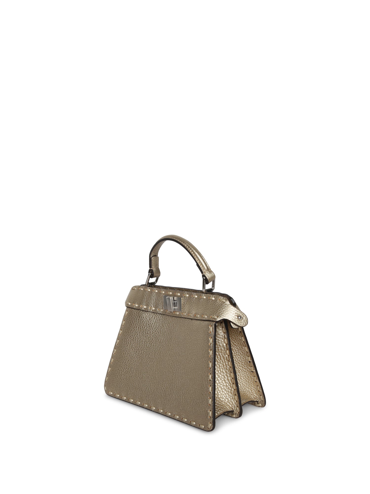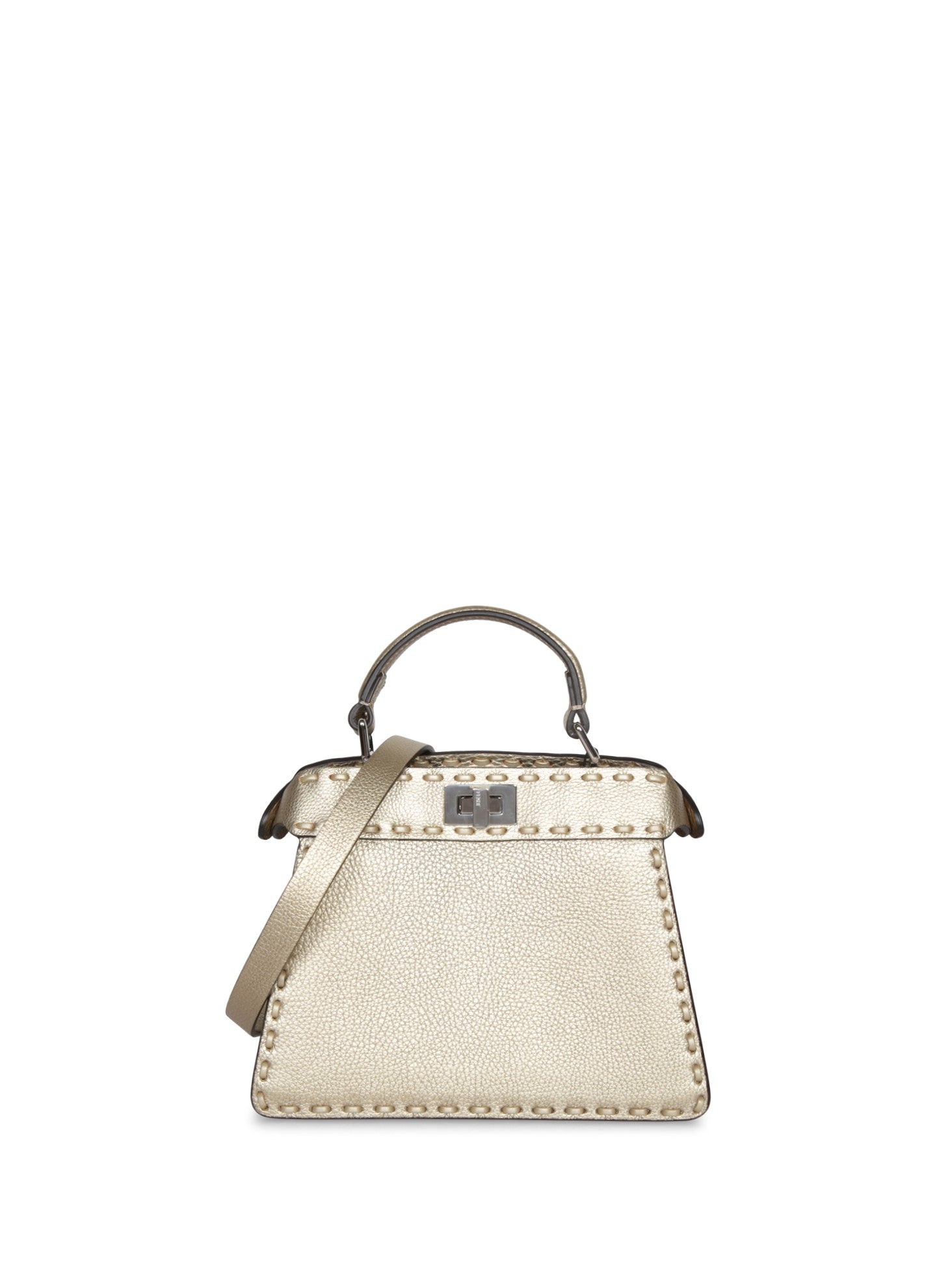 Timeless elegance meets modern design in this Fendi Peekaboo Petite Platinum bag. Featuring a refined silhouette with an iconic twist lock closure and spacious interiors for functional elegance.