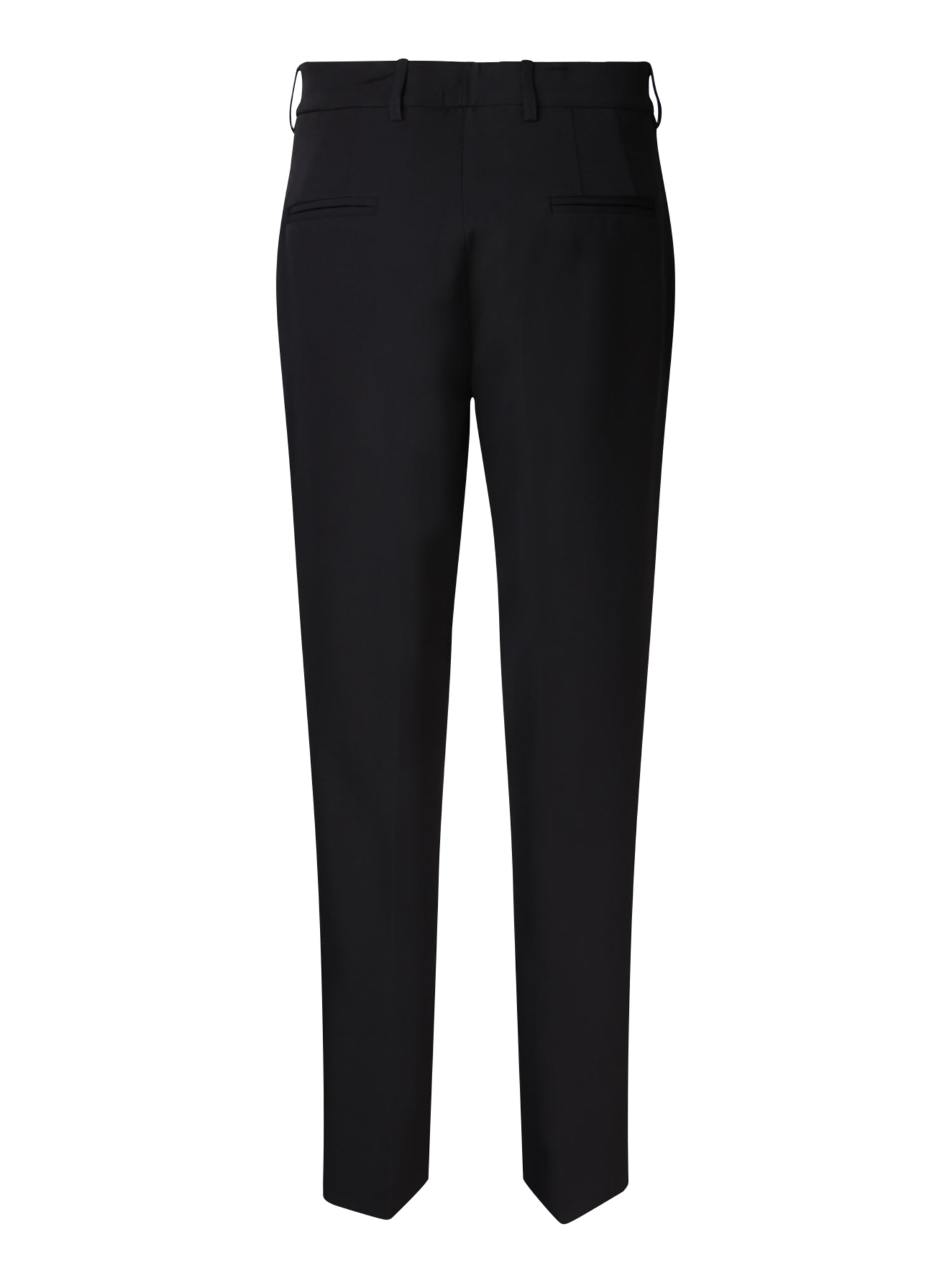 Mid rise. Concealed front fastening. Belt loops. Tone-on-tone stitching. Cigarette model. Regular fit. Straight hem. Color: black