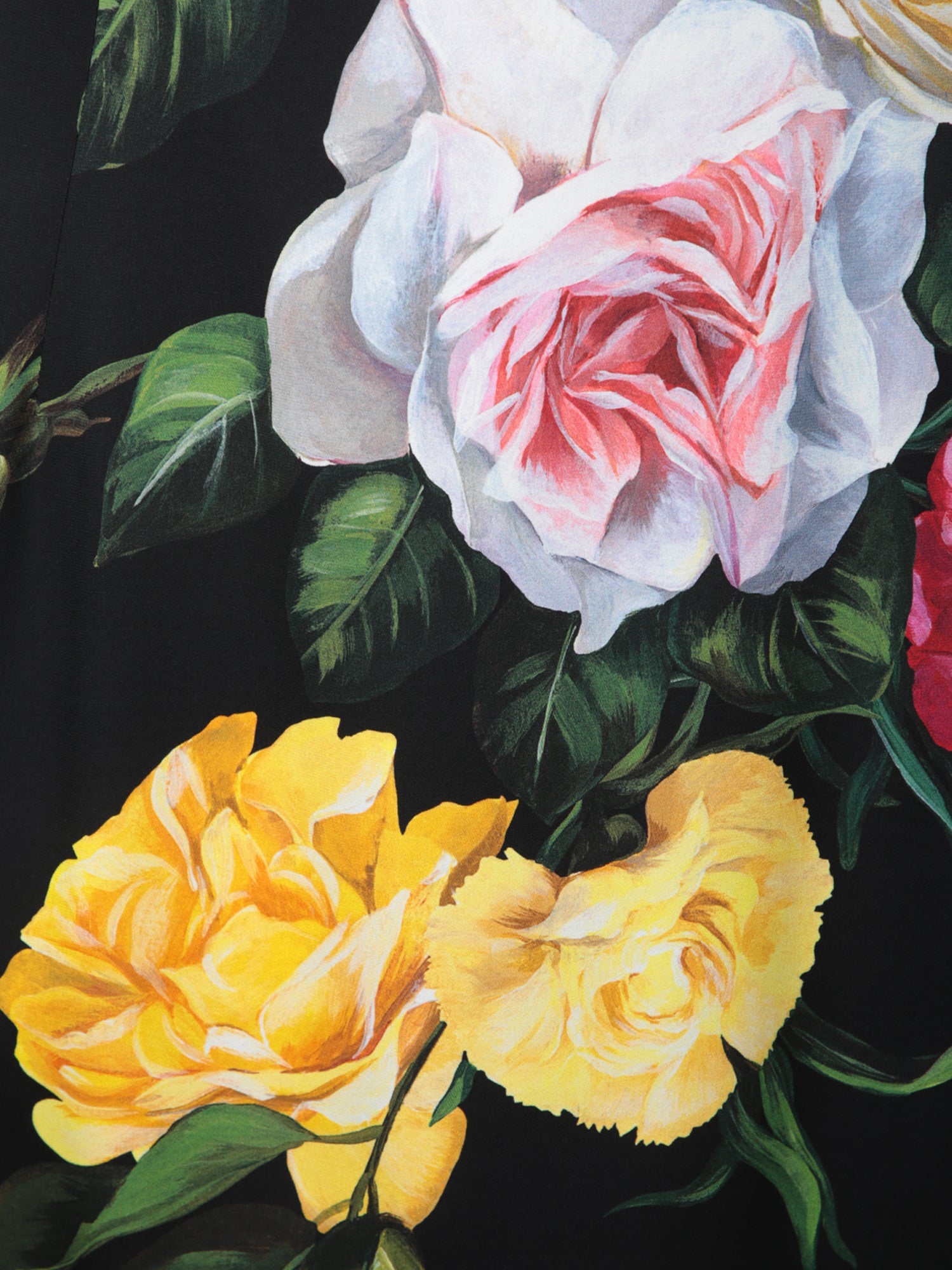 This elegant Dolce & Gabbana dress captures the essence of femininity with its vivid floral print on a black background. The fitted cut enhances the silhouette, while the crepe fabric ensures comfort and durability.