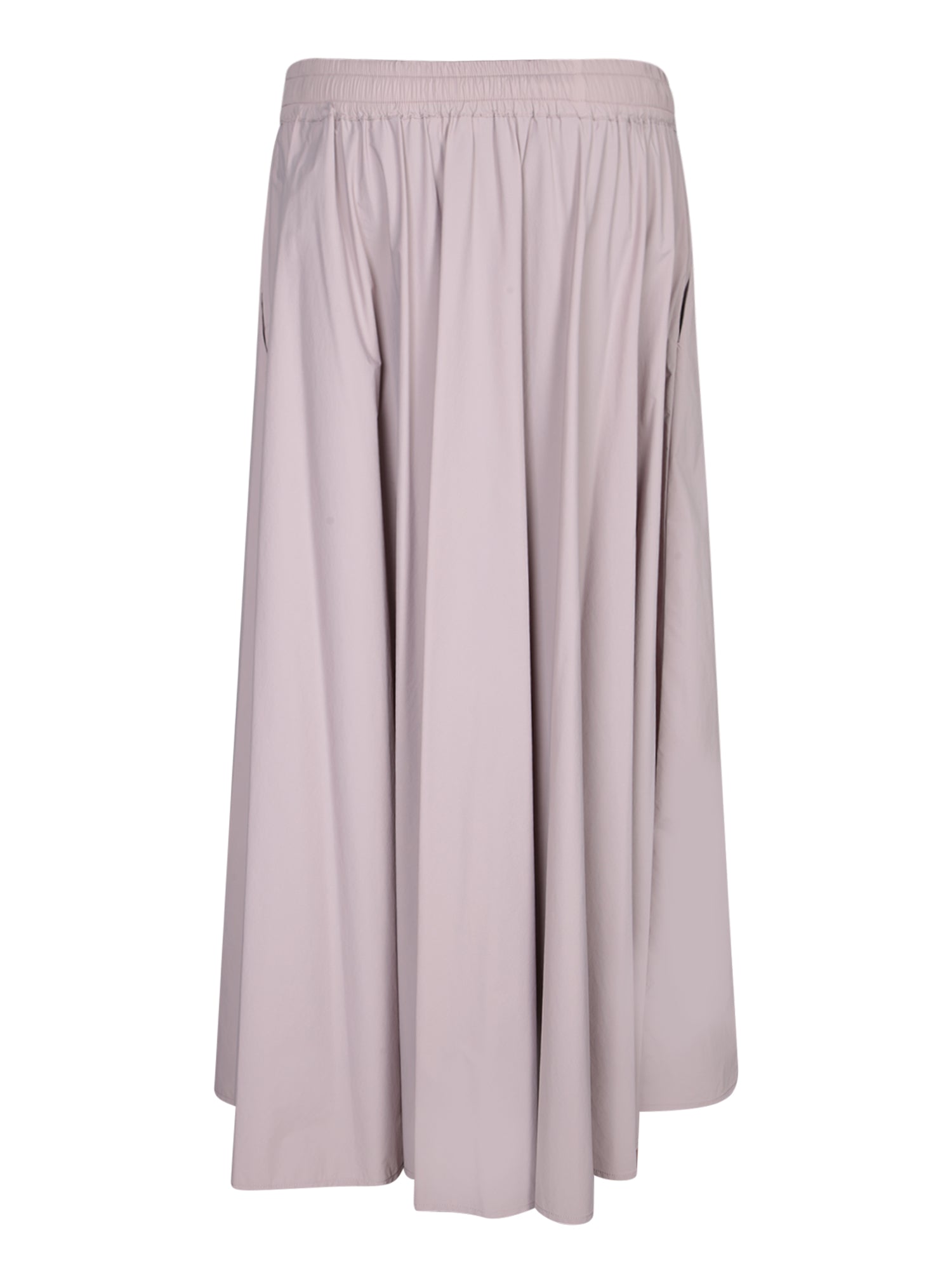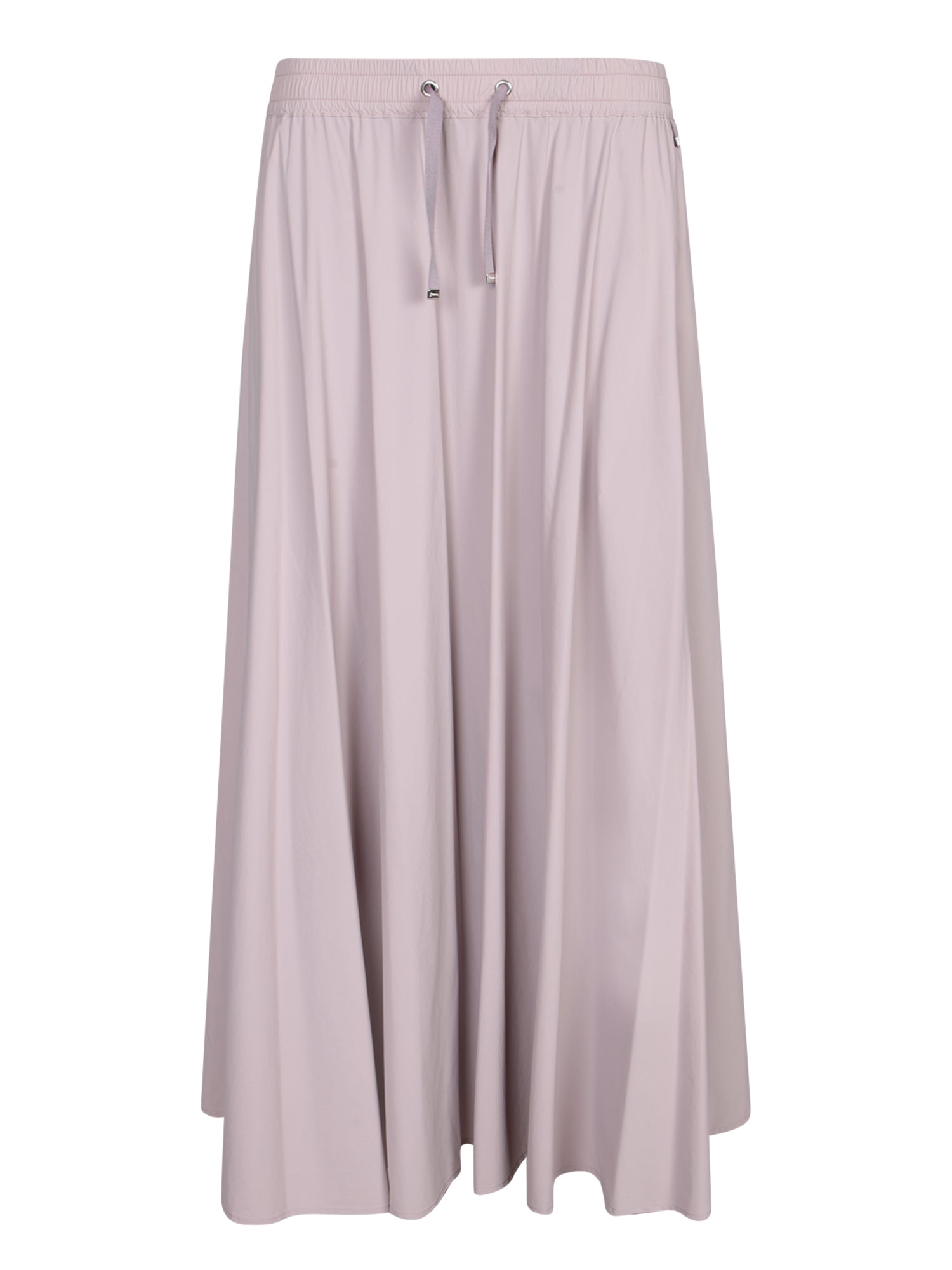 Elastic waistband with drawstrings. Nylon fabric. Wide midi cut.