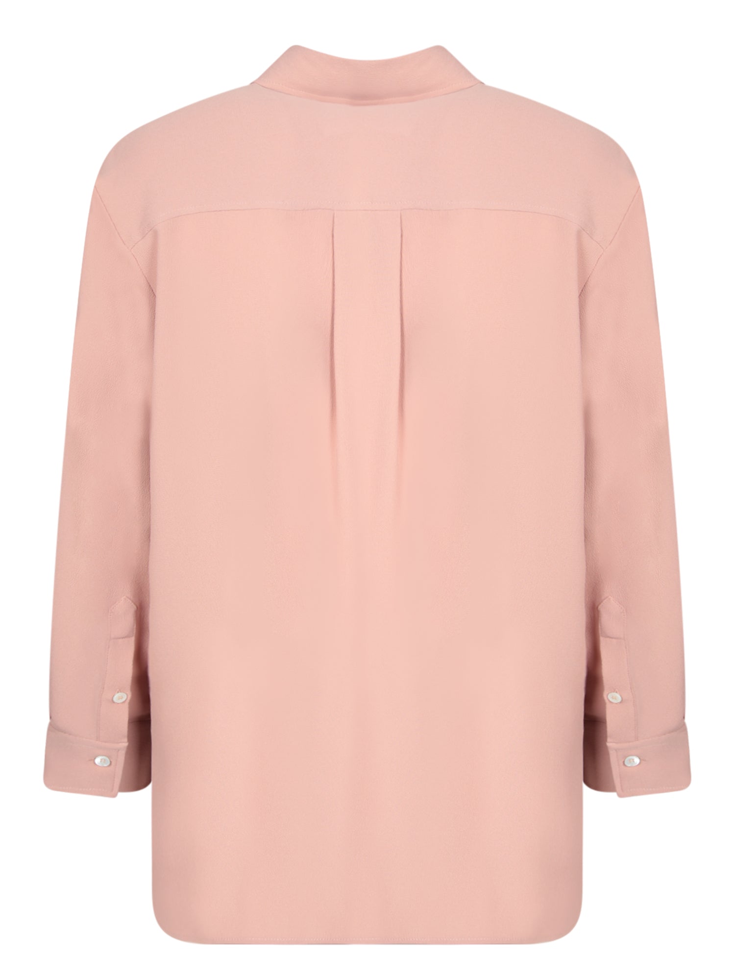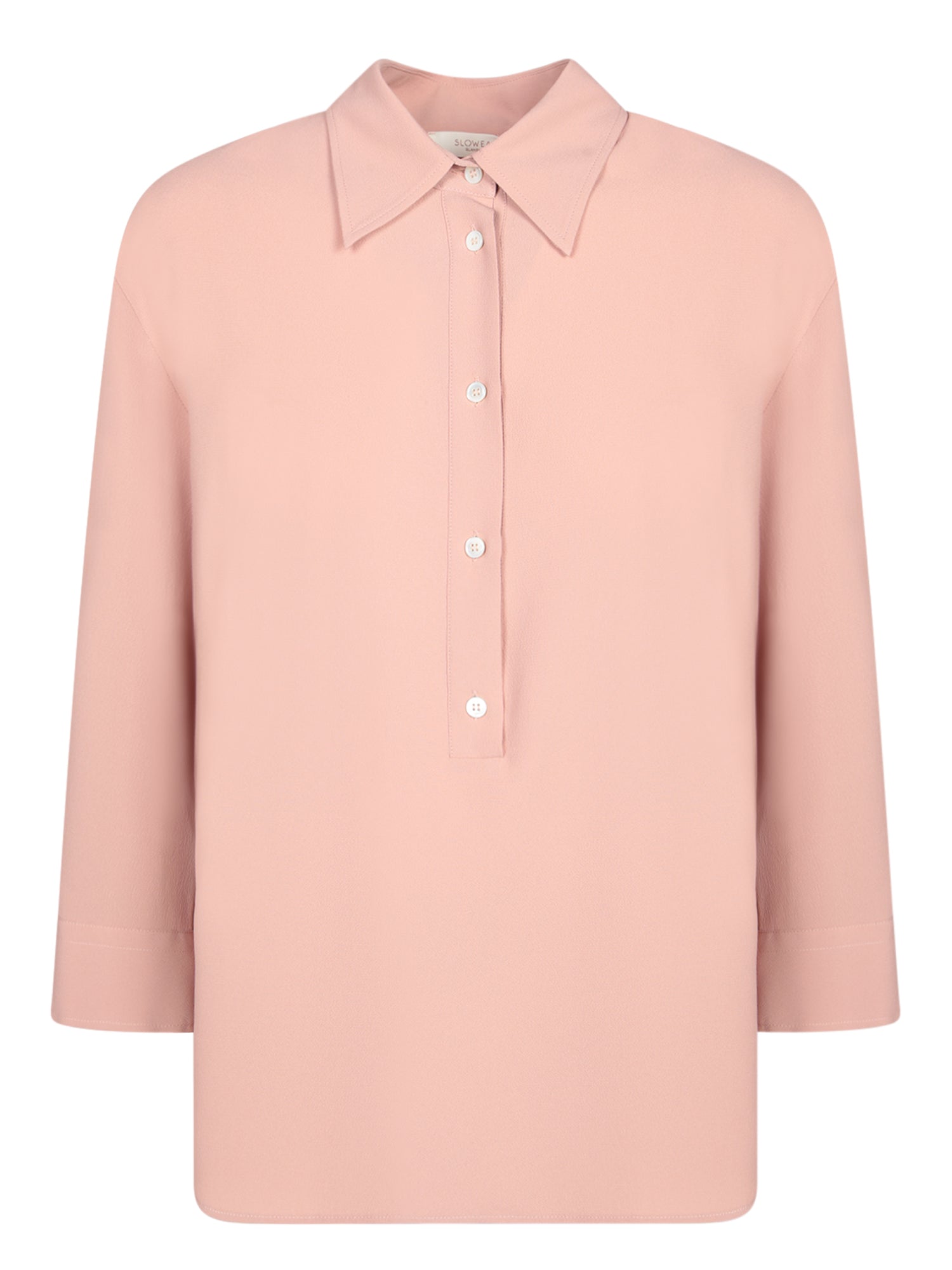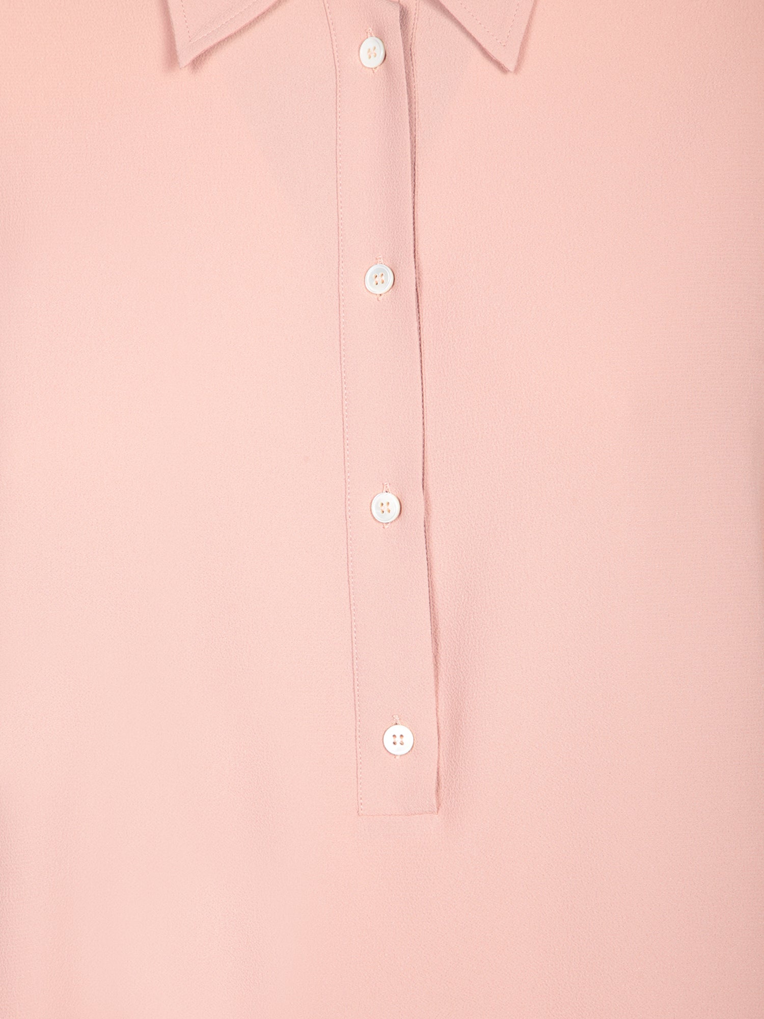 Pink blouse with front closure. Classic collar. Three-quarter sleeves.