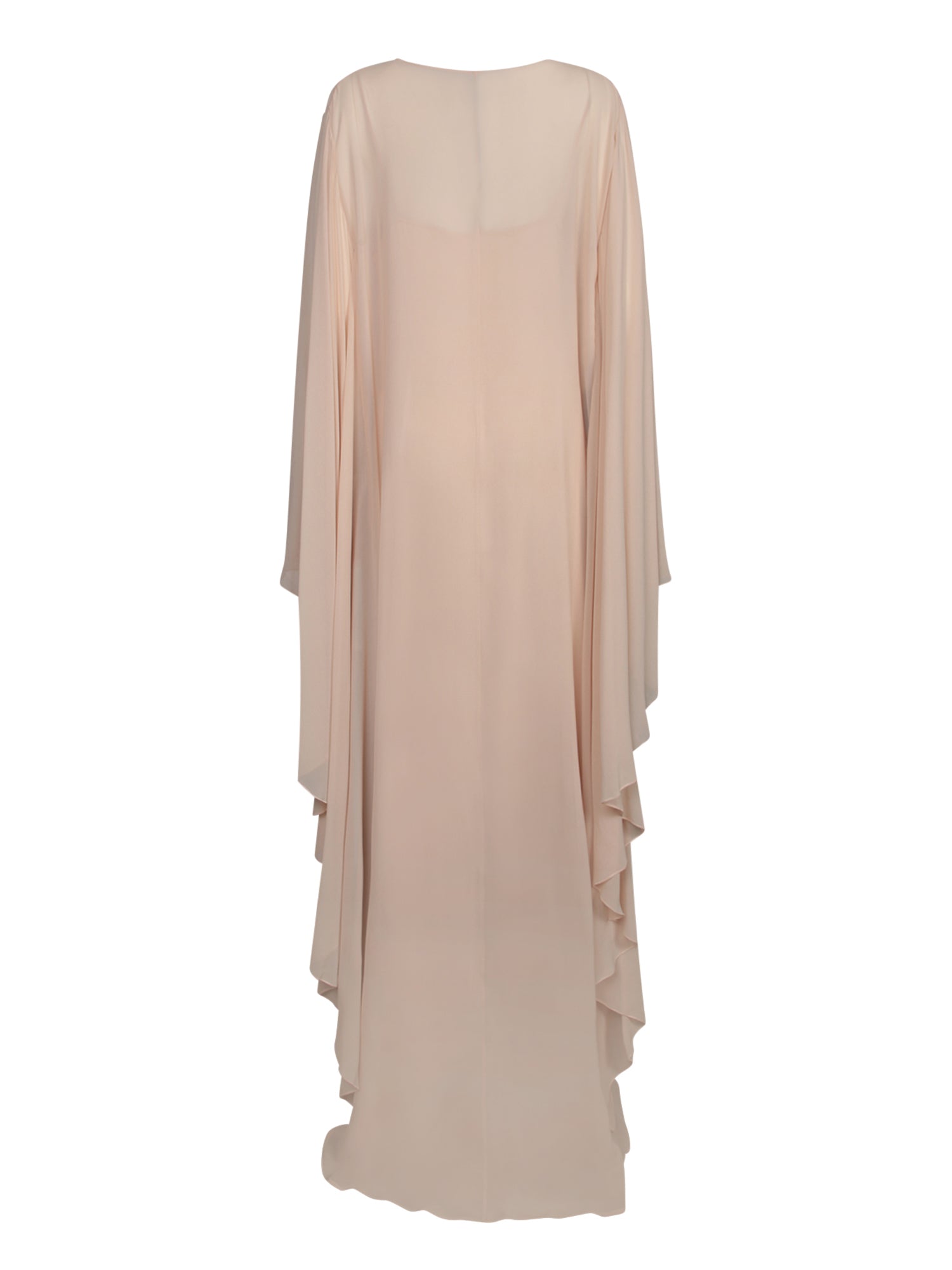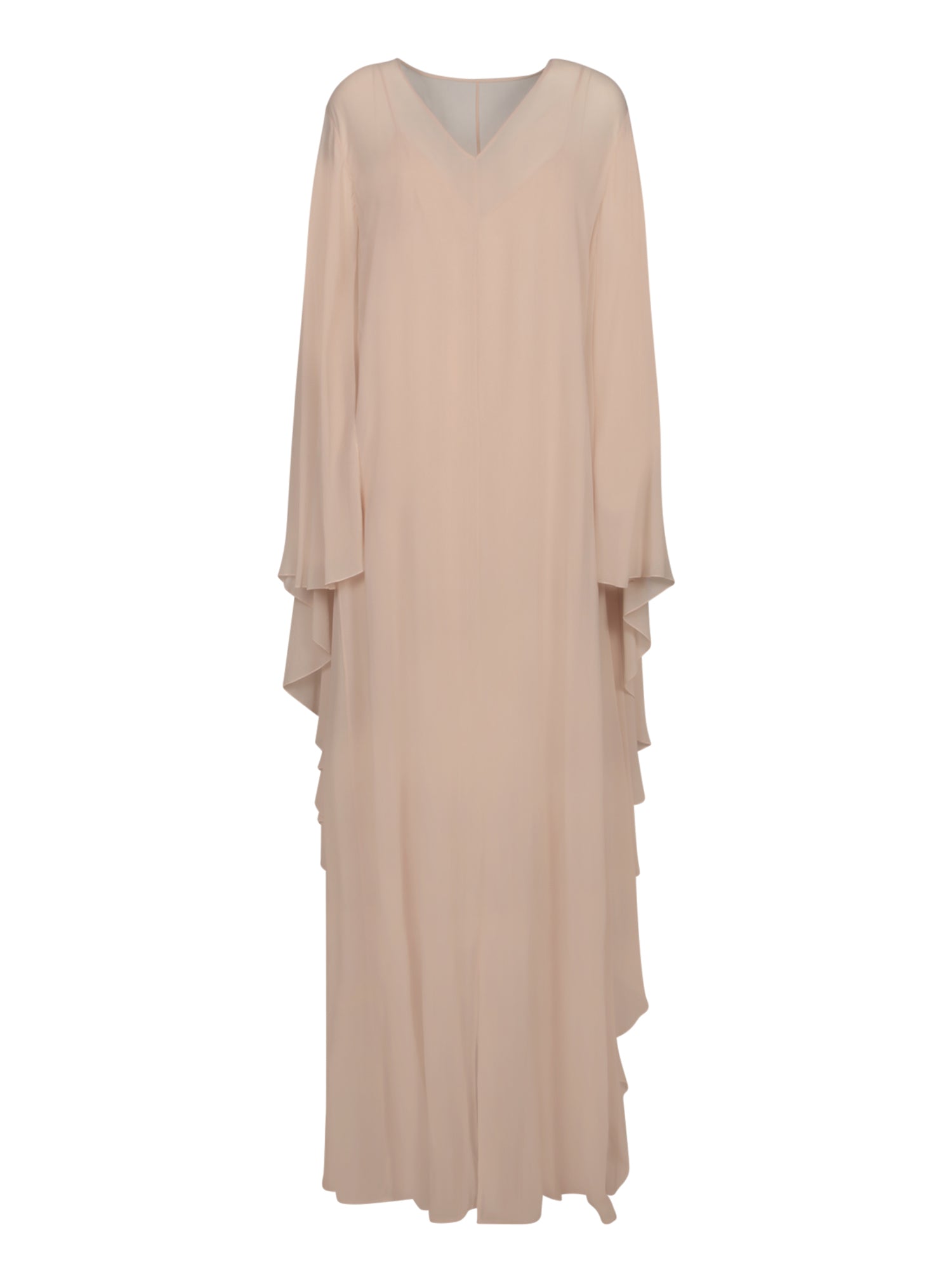 Long dress with bell sleeves, V-neckline, made from lightweight silk.