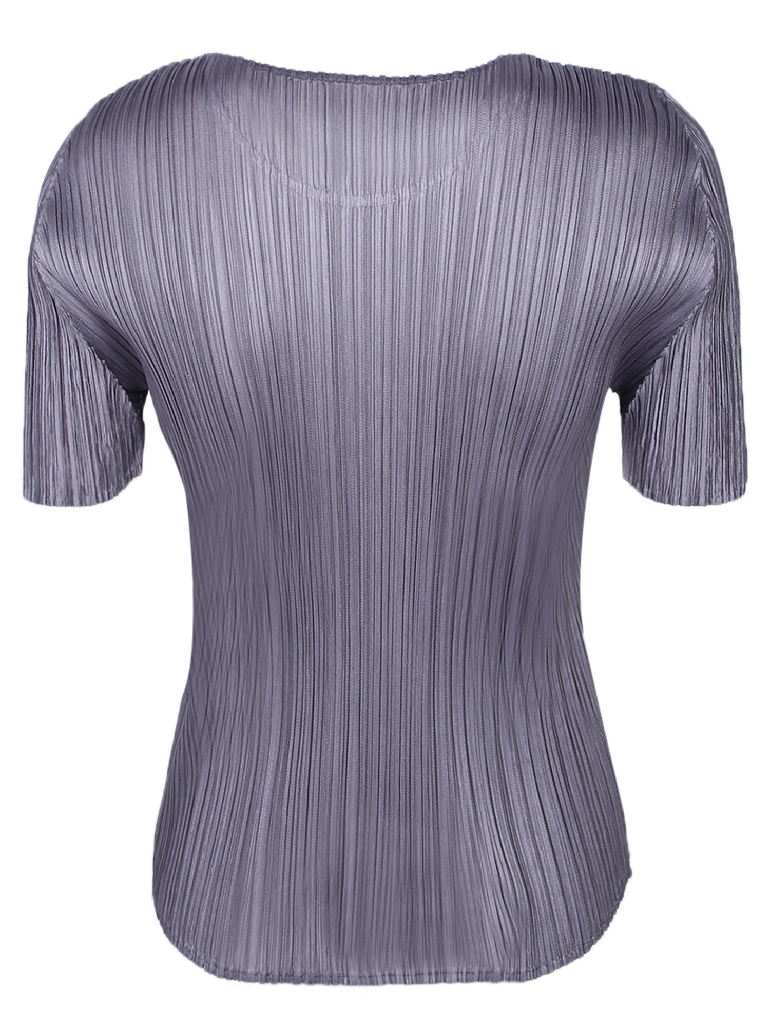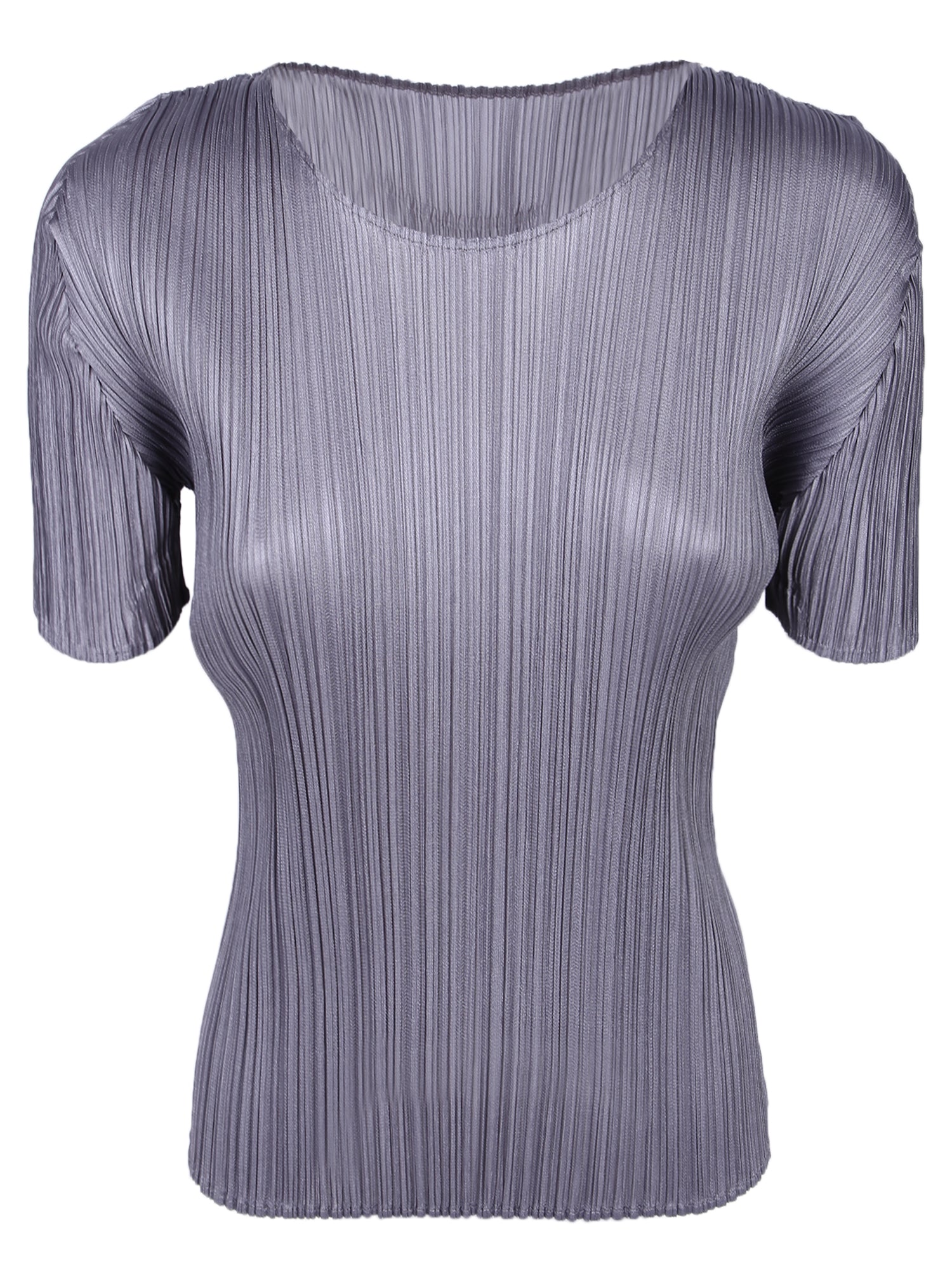 Short sleeve T-shirt. Pleated fabric. Round neckline.