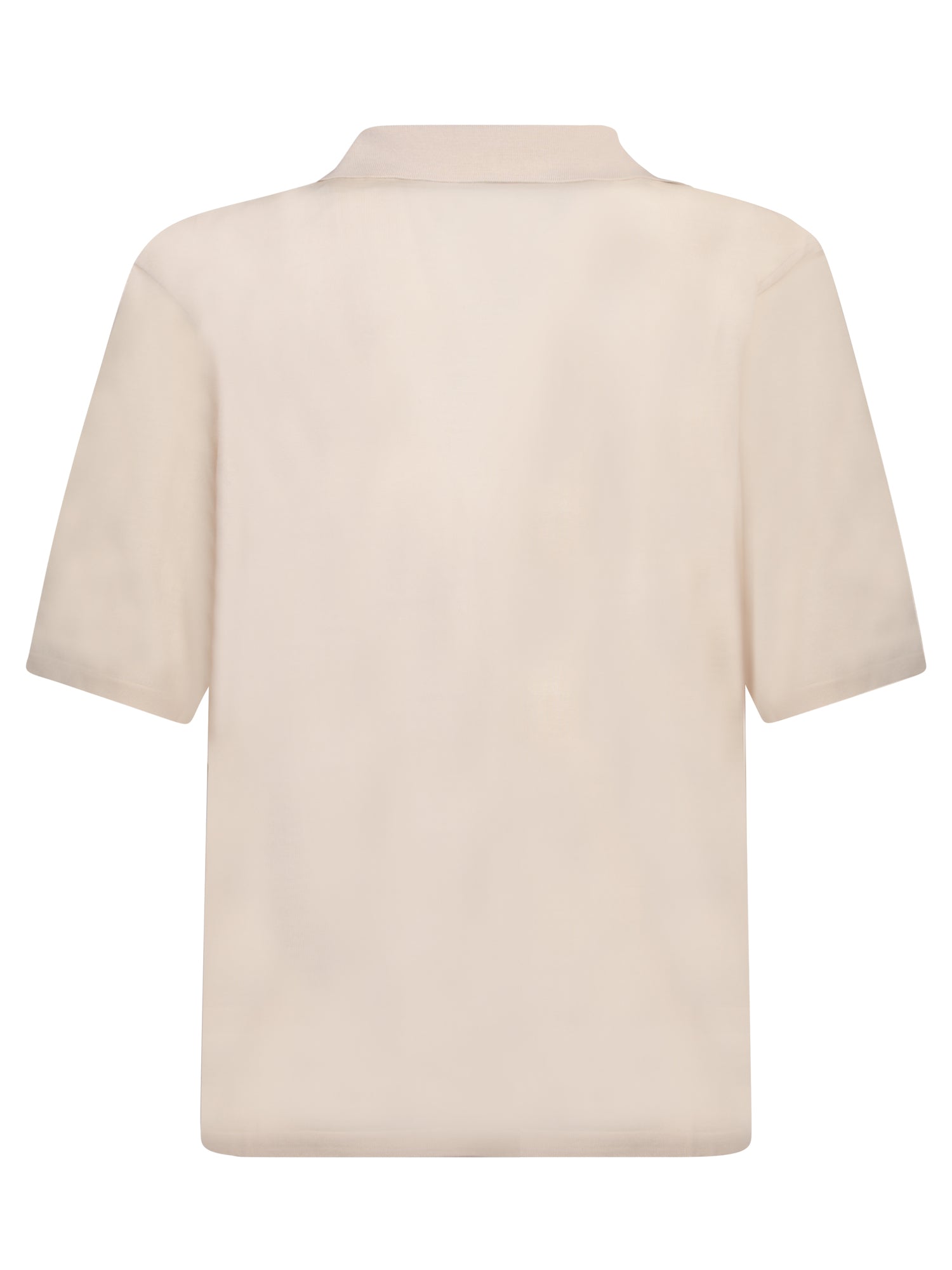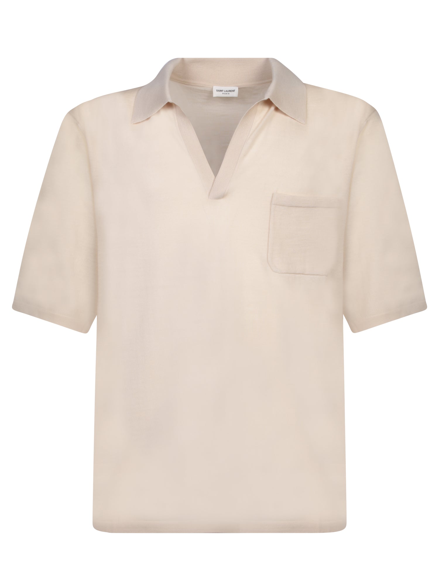 Open collar. Front pocket. Short sleeves. Embroidered YSL to the front.