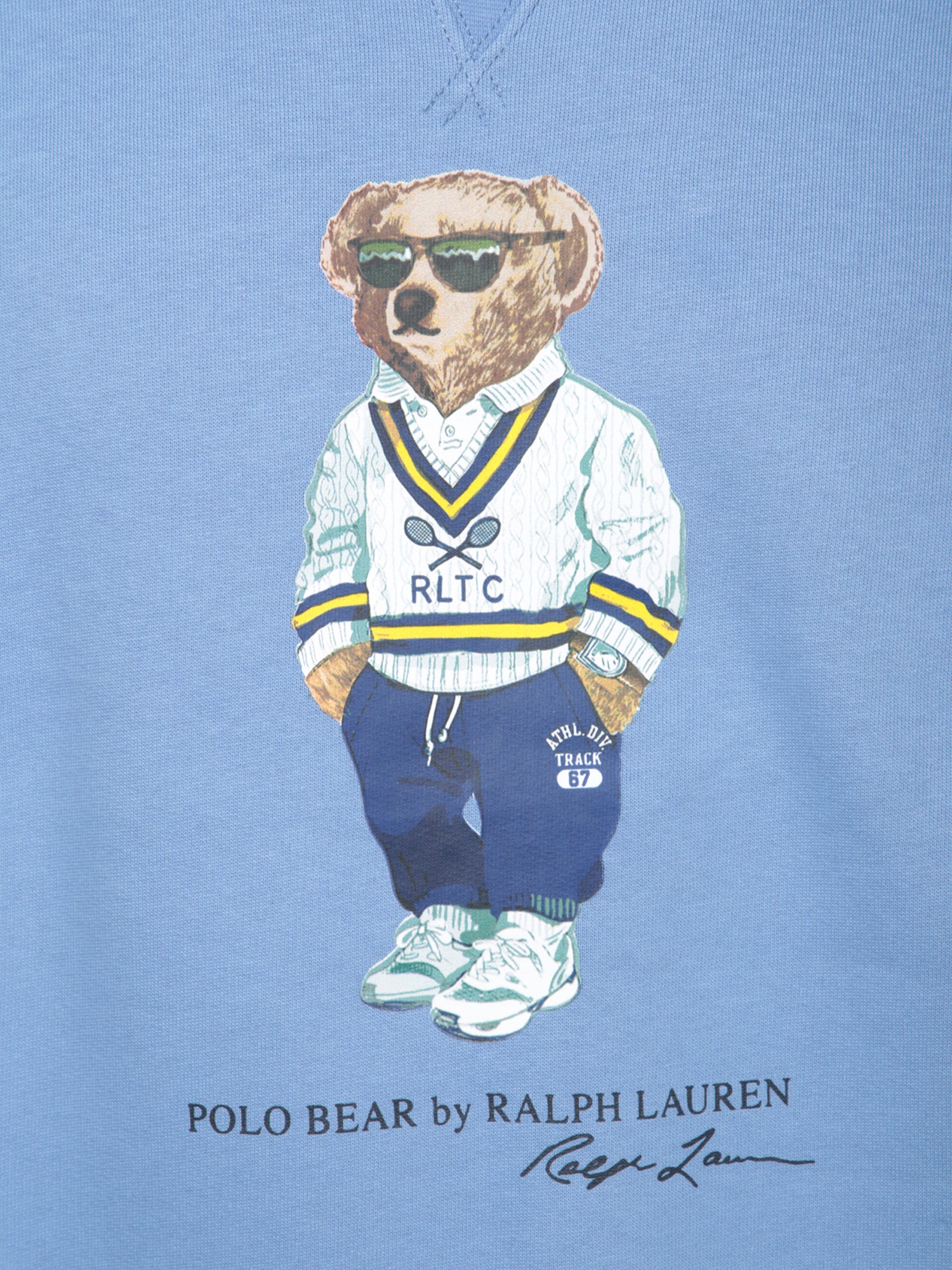 Cotton sweatshirt, long sleeves, crewneck. Features a Polo bear in sporty attire.
