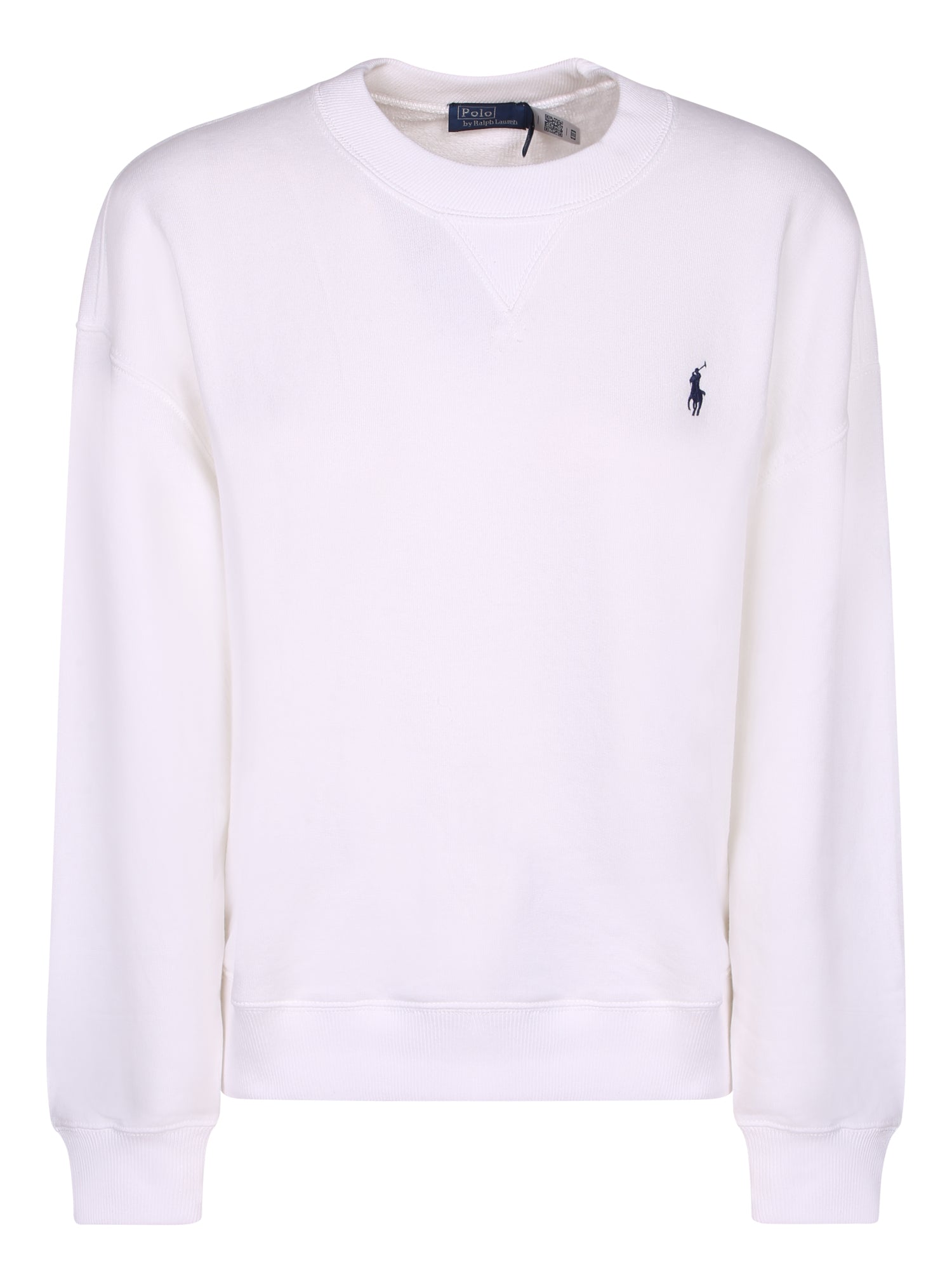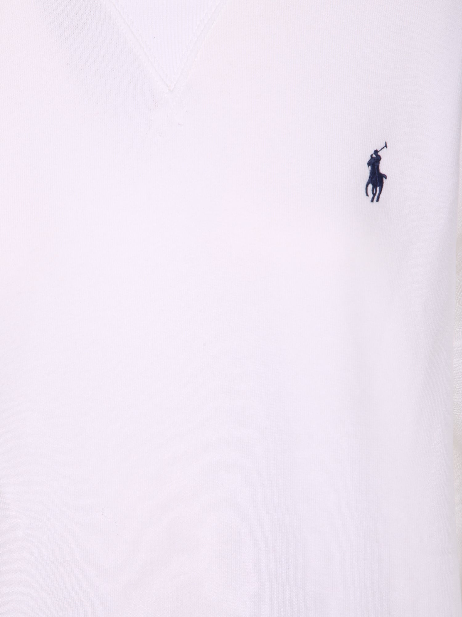 White sweatshirt with logo, V-neckline, long sleeves, ribbed cuffs and hem.