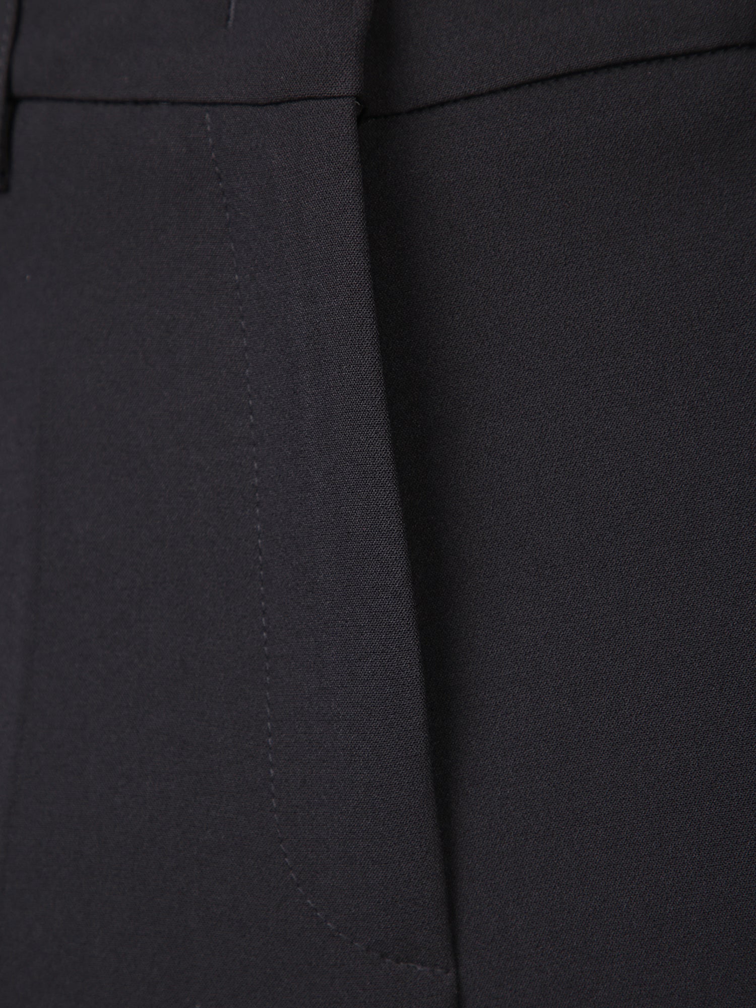 Mid rise. Concealed front fastening. Belt loops. Side pockets. Front pleat. Tone-on-tone stitching. Palazzo model. Regular fit. Straight hem. Color: black