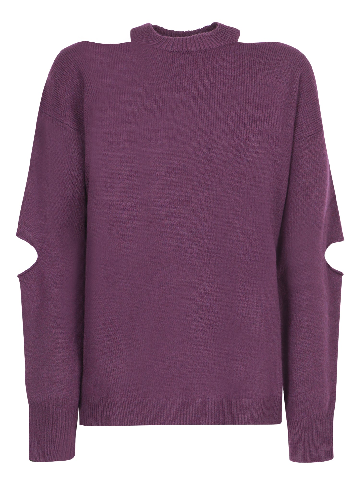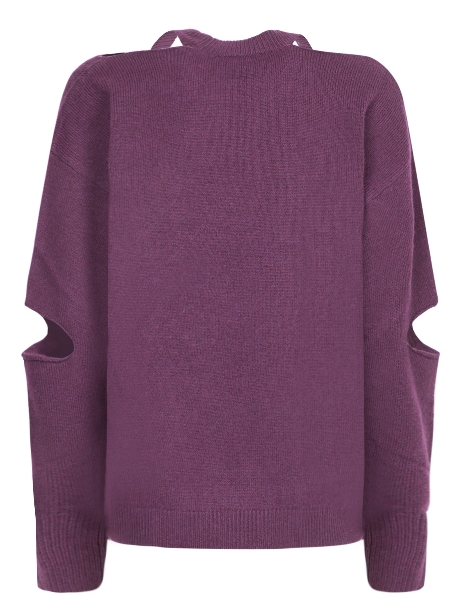 Cashmere blend sweater. Decorative cut-out design on sleeves. Crew neck.