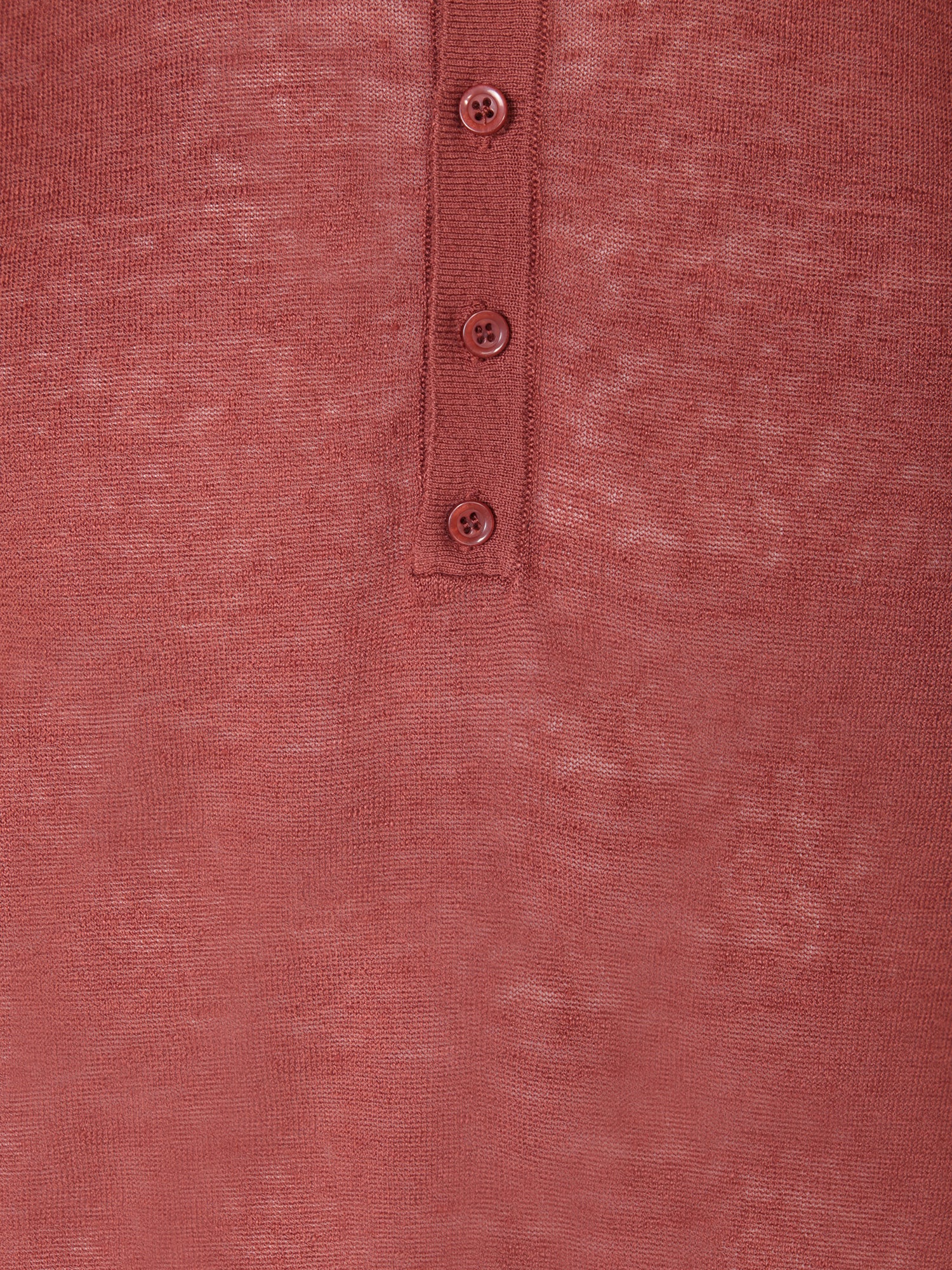 Short sleeves. Three-button collar closure. Textured cotton fabric.