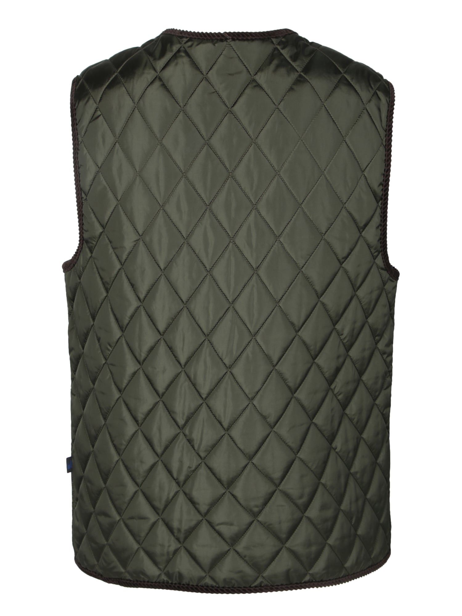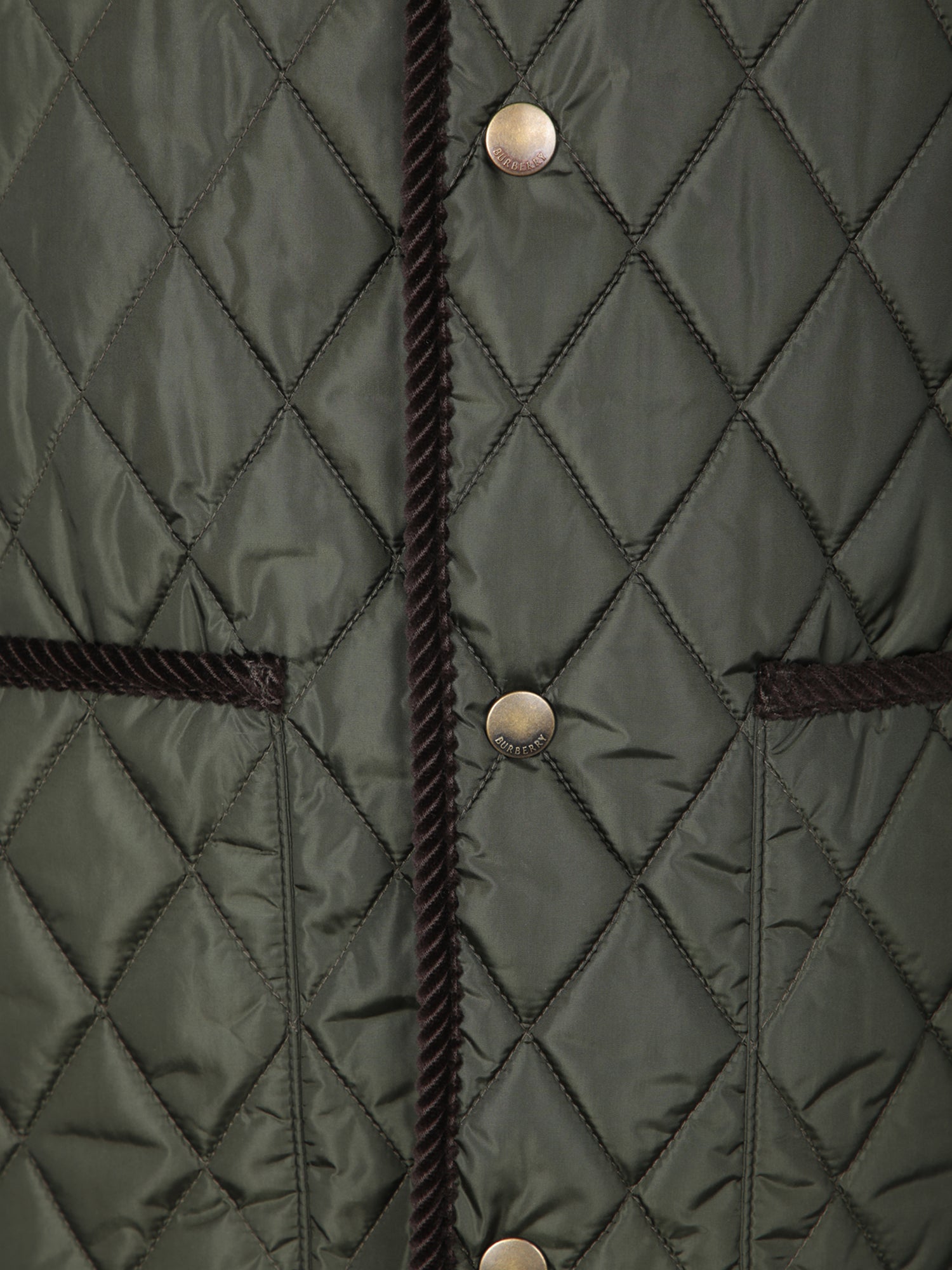 An iconic and essential wardrobe piece, this Burberry military green vest features a signature lined interior, elegant button closure, and large front pockets.