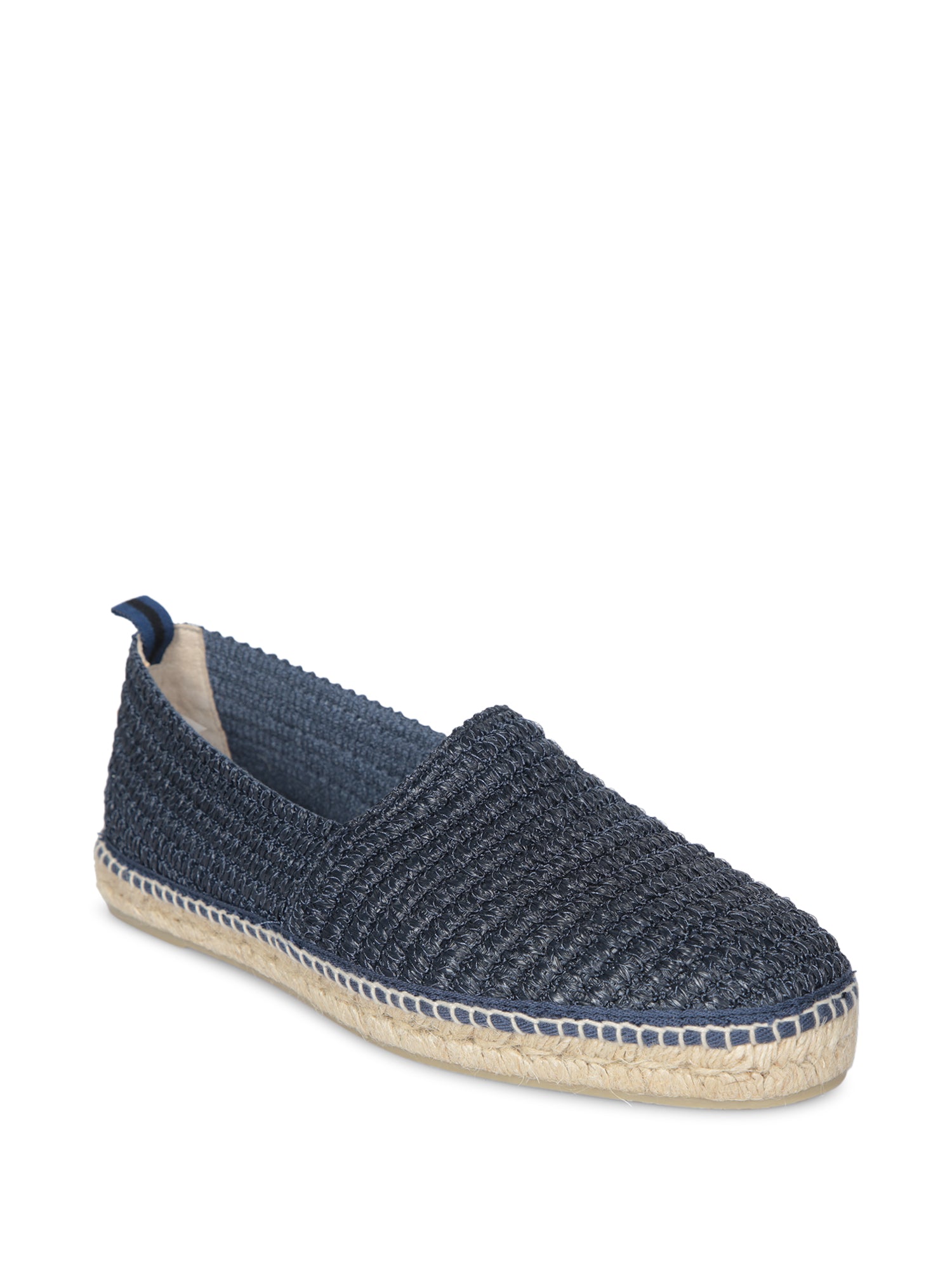 Elegant Castaner espadrilles, perfect for a casual yet sophisticated occasion. Crafted with woven blue raffia fabric and rope details, they provide unparalleled comfort and style.