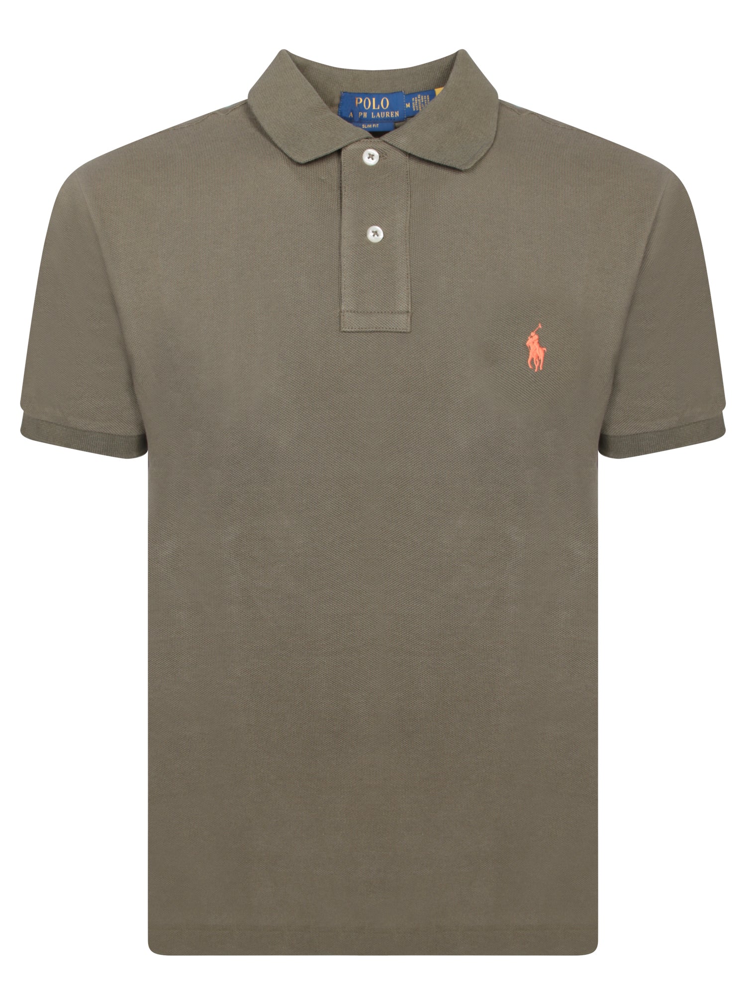 This Ralph Lauren military green cotton piquet polo features a clean and classic design, with a contrasting embroidered logo adding a distinctive touch. Ideal for a casual yet refined look.