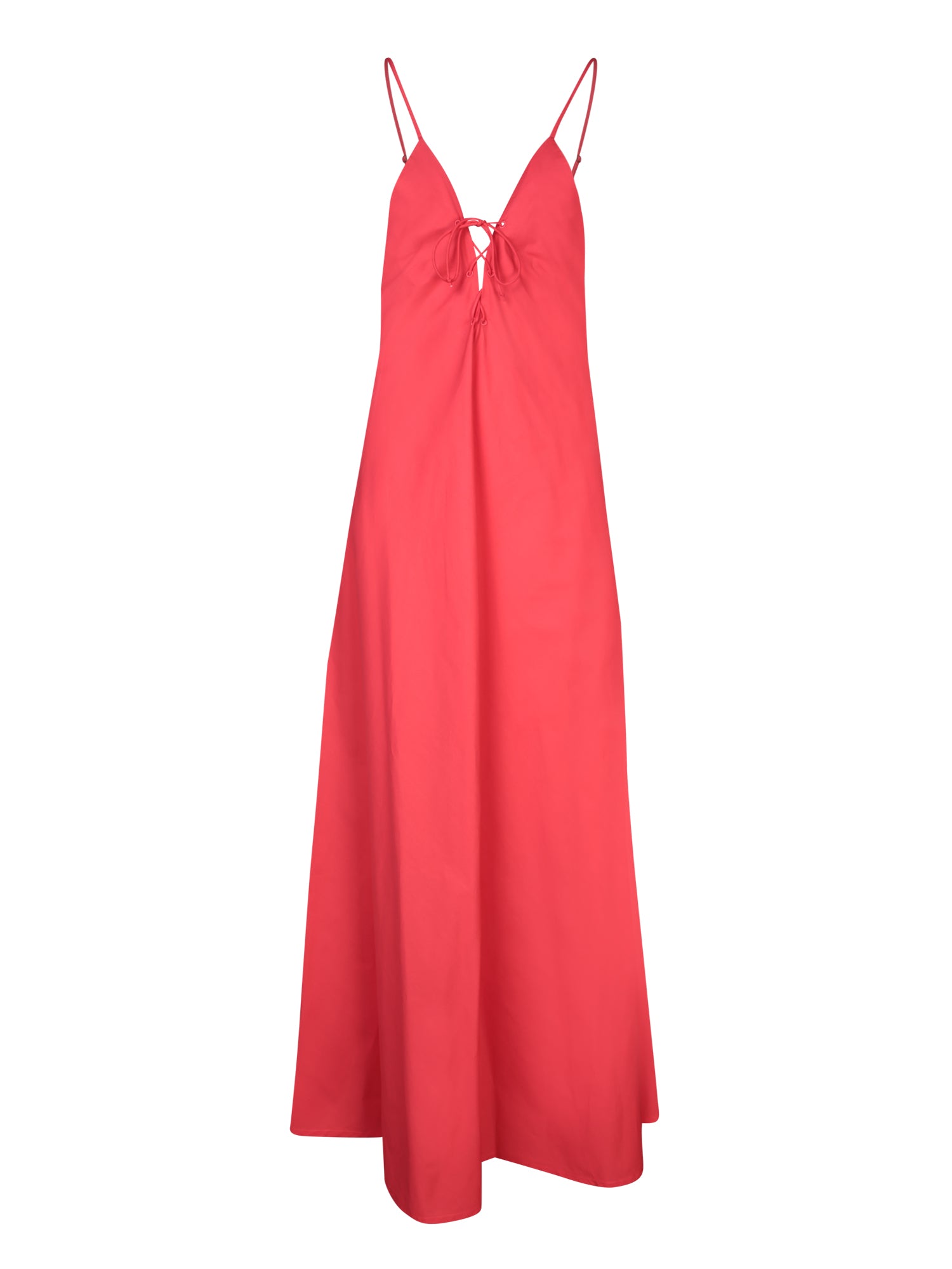 This elegant FORTE FORTE red poplin slip dress offers a flowing, lightweight fit. Perfect for summer evenings, the lace-up detail at the neckline adds a touch of understated femininity.