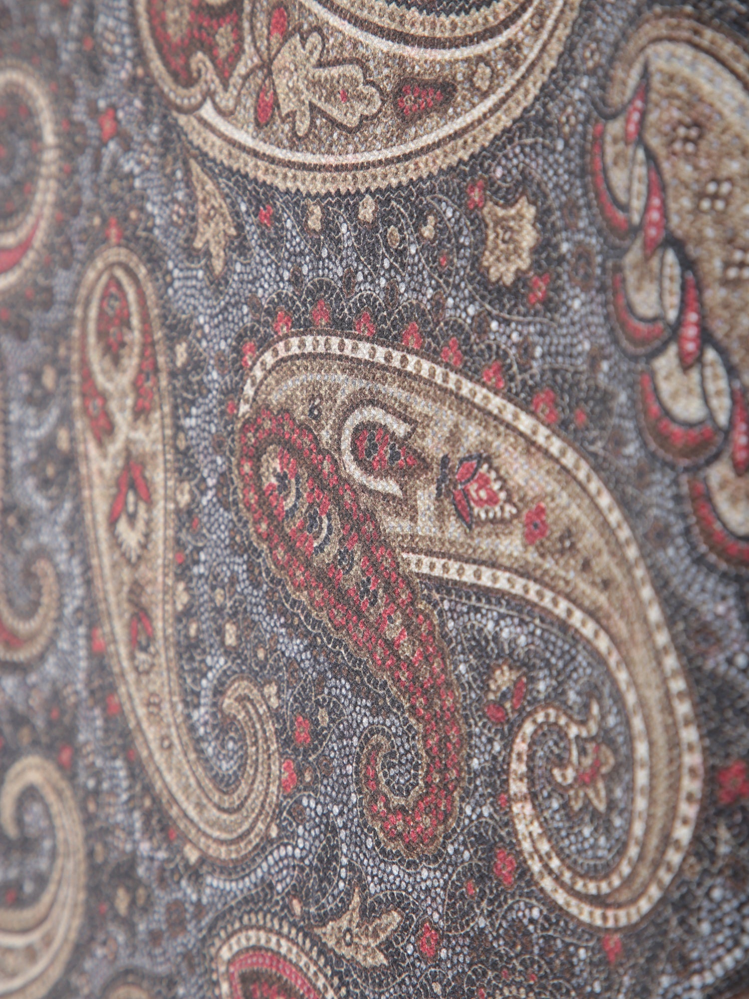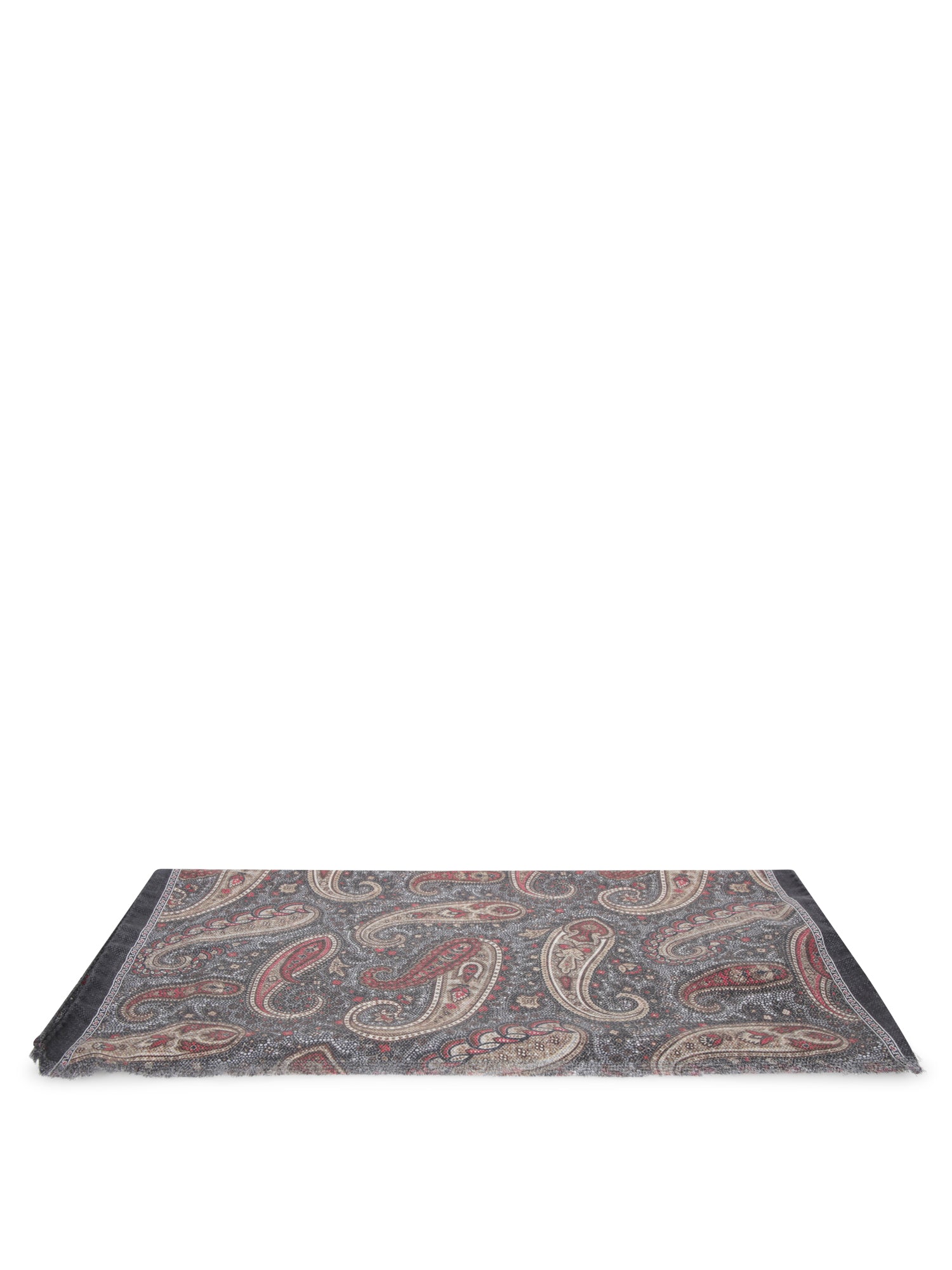 Pure silk scarf with paisley print. Hand-finished edges.