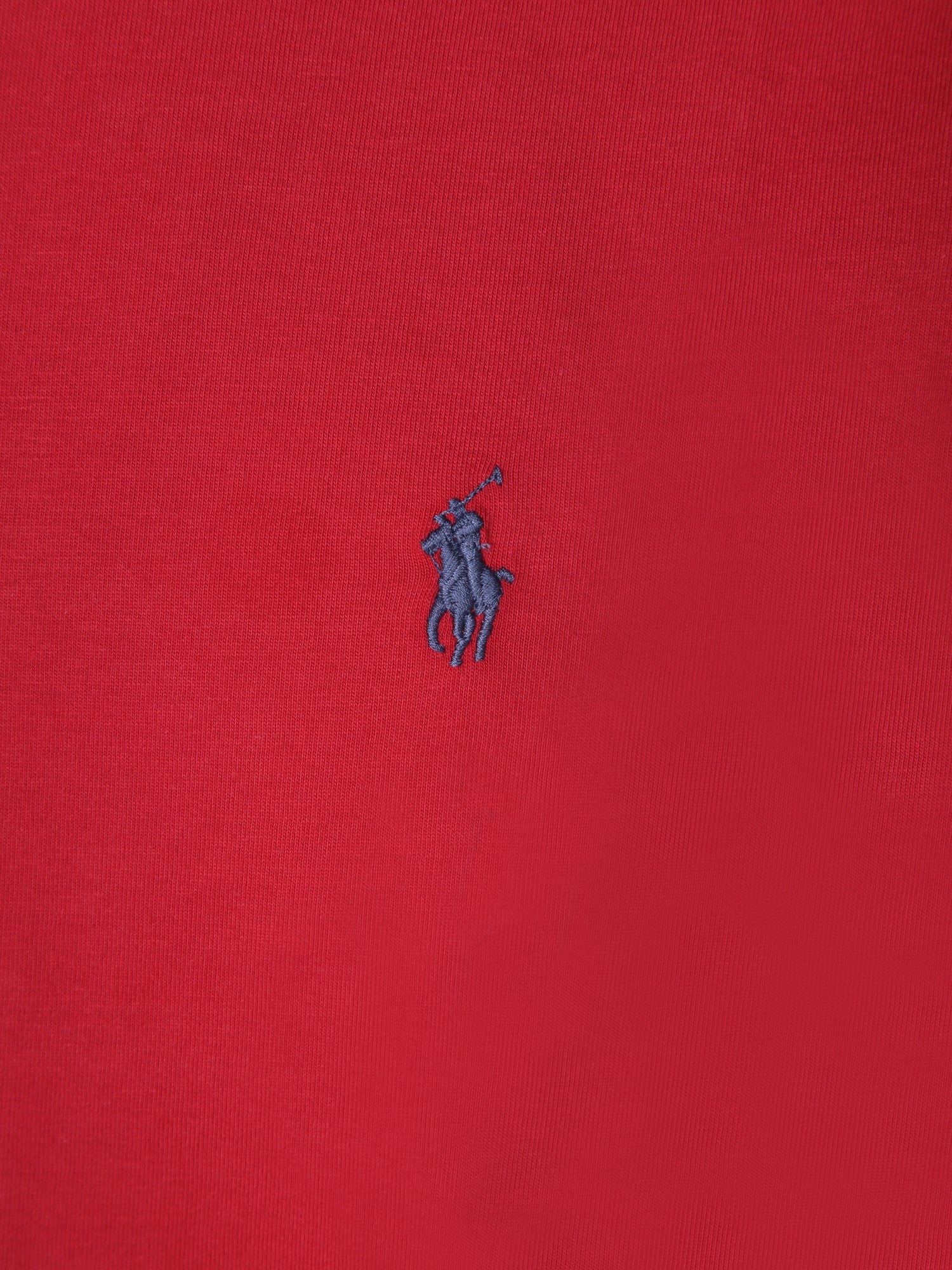 Short-sleeve cotton t-shirt in red. Crew neck with an embroidered logo on the chest.