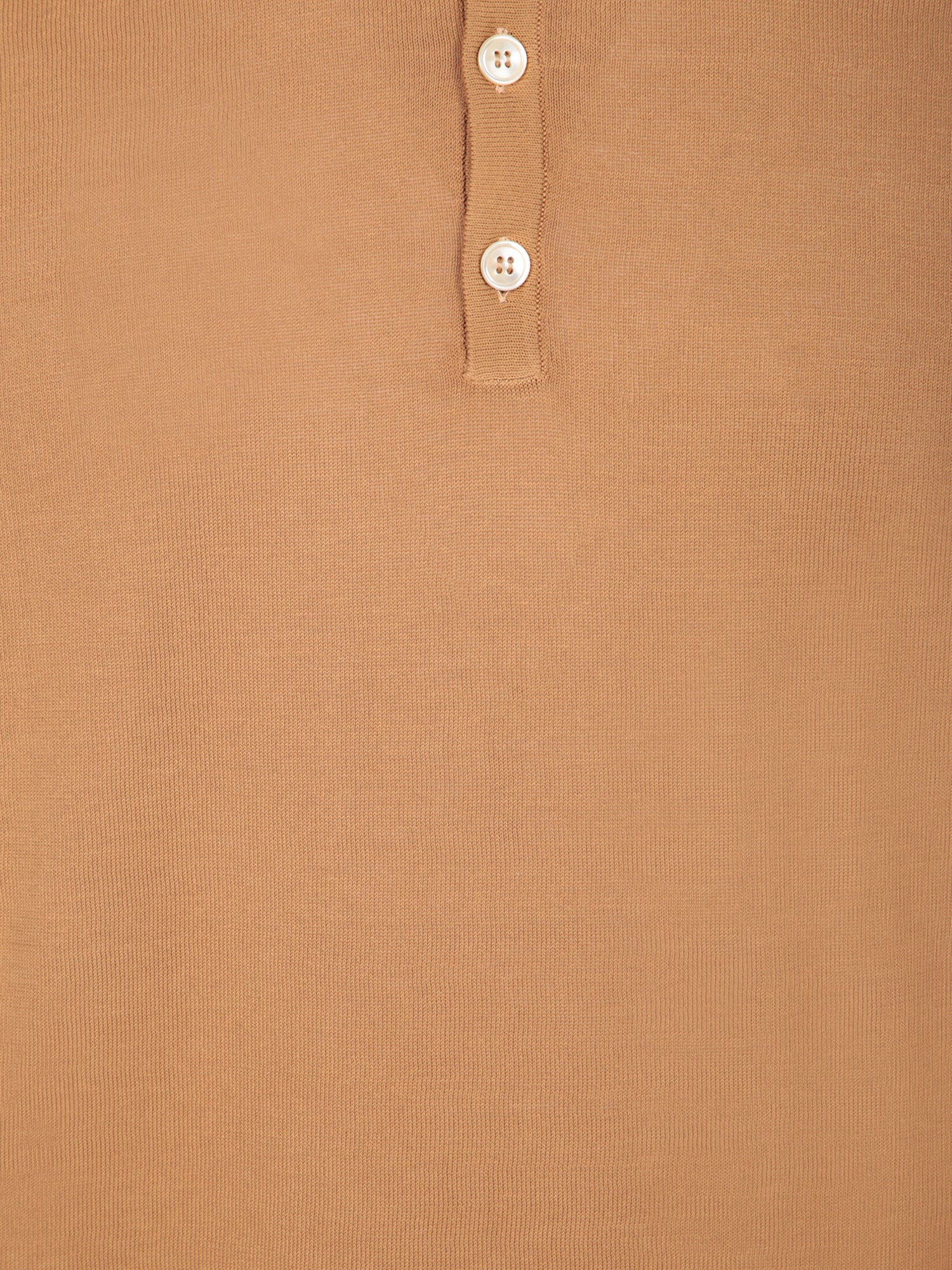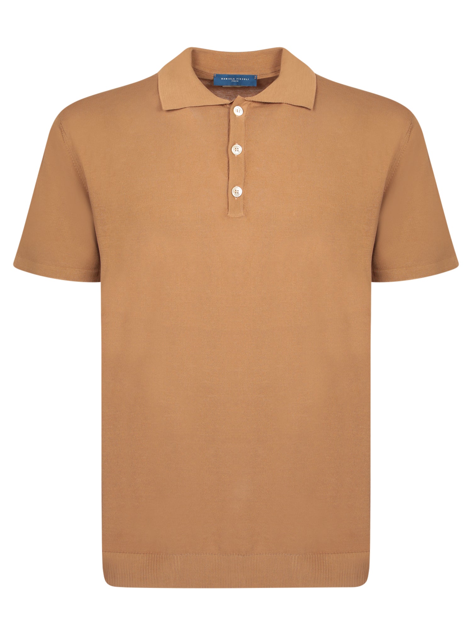 This elegant Daniele Fiesoli polo is crafted in a distinguished brown crepe fabric, offering a perfect blend of comfort and sophistication. Partial button placket and classic cut for a clean and versatile silhouette.