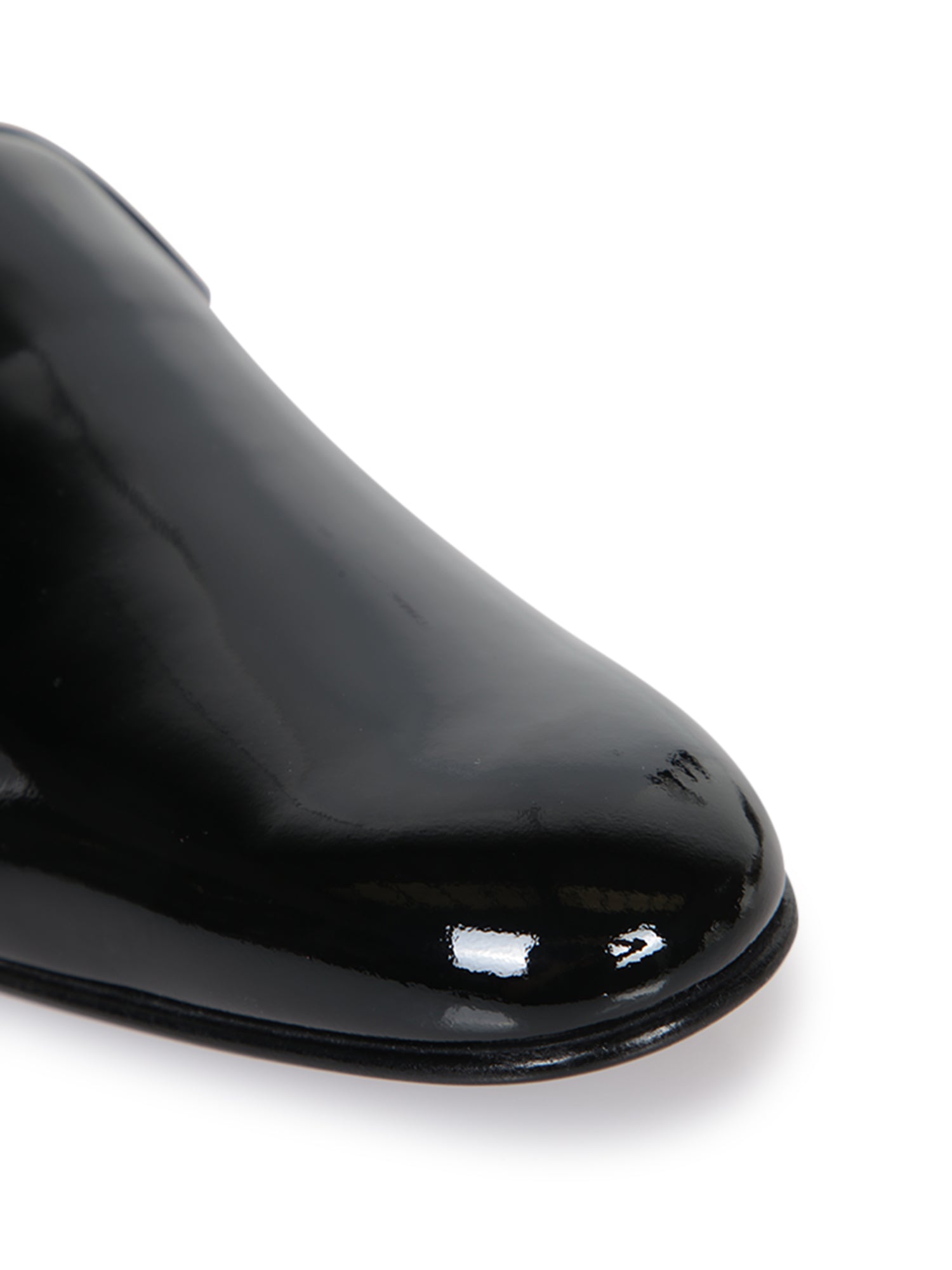 Elegant black patent loafers. Slip-on design. Glossy finish.