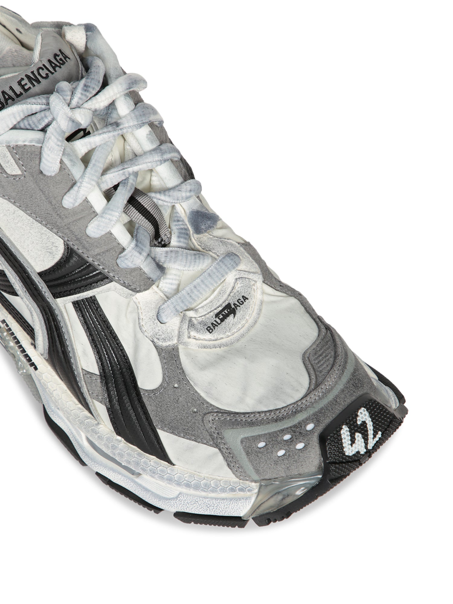 Express a bold, contemporary spirit with Balenciaga's Runner sneakers, featuring an innovative design with leather, mesh, and reflective detailing, perfect for a sophisticated street-style look.
