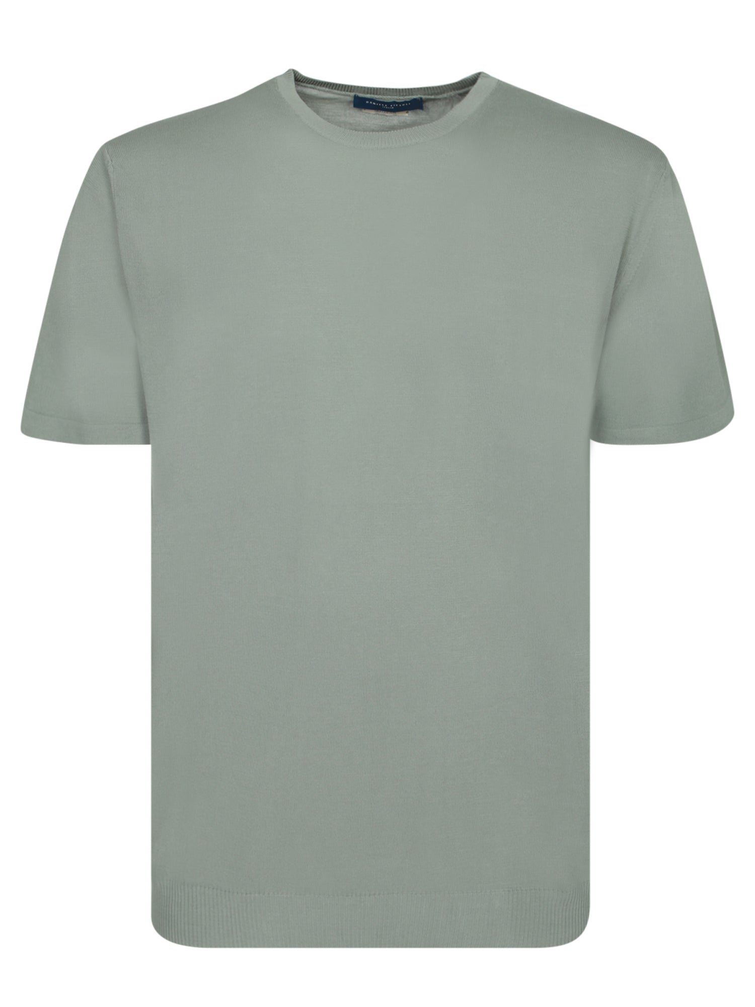 Casual elegance is encapsulated in this soft crepe sage-colored T-shirt by Daniele Fiesoli; perfect for a versatile and sophisticated pairing.