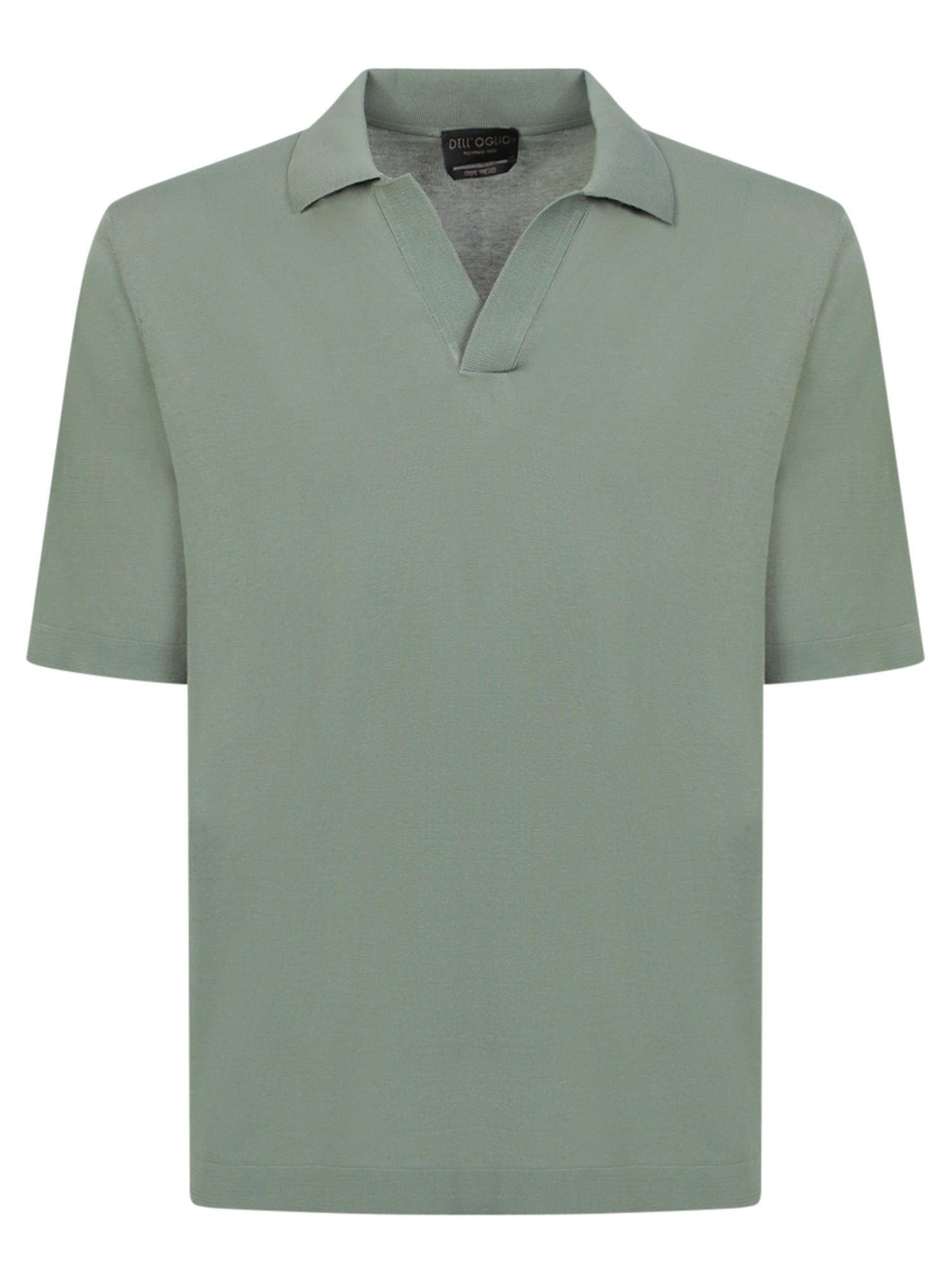 Sage green cotton polo shirt by Dell'Oglio; the brand is renowned for its minimalist yet timeless design