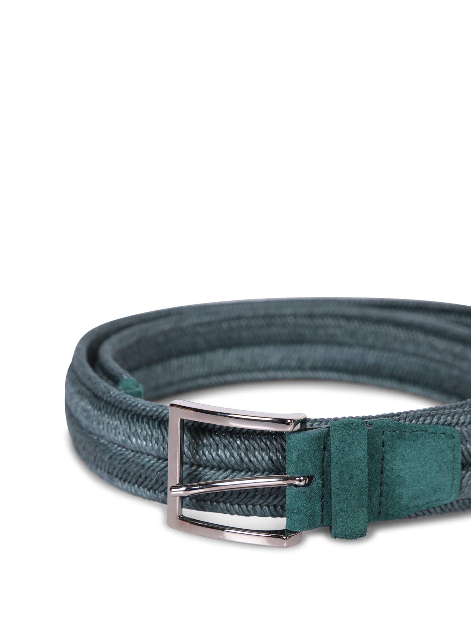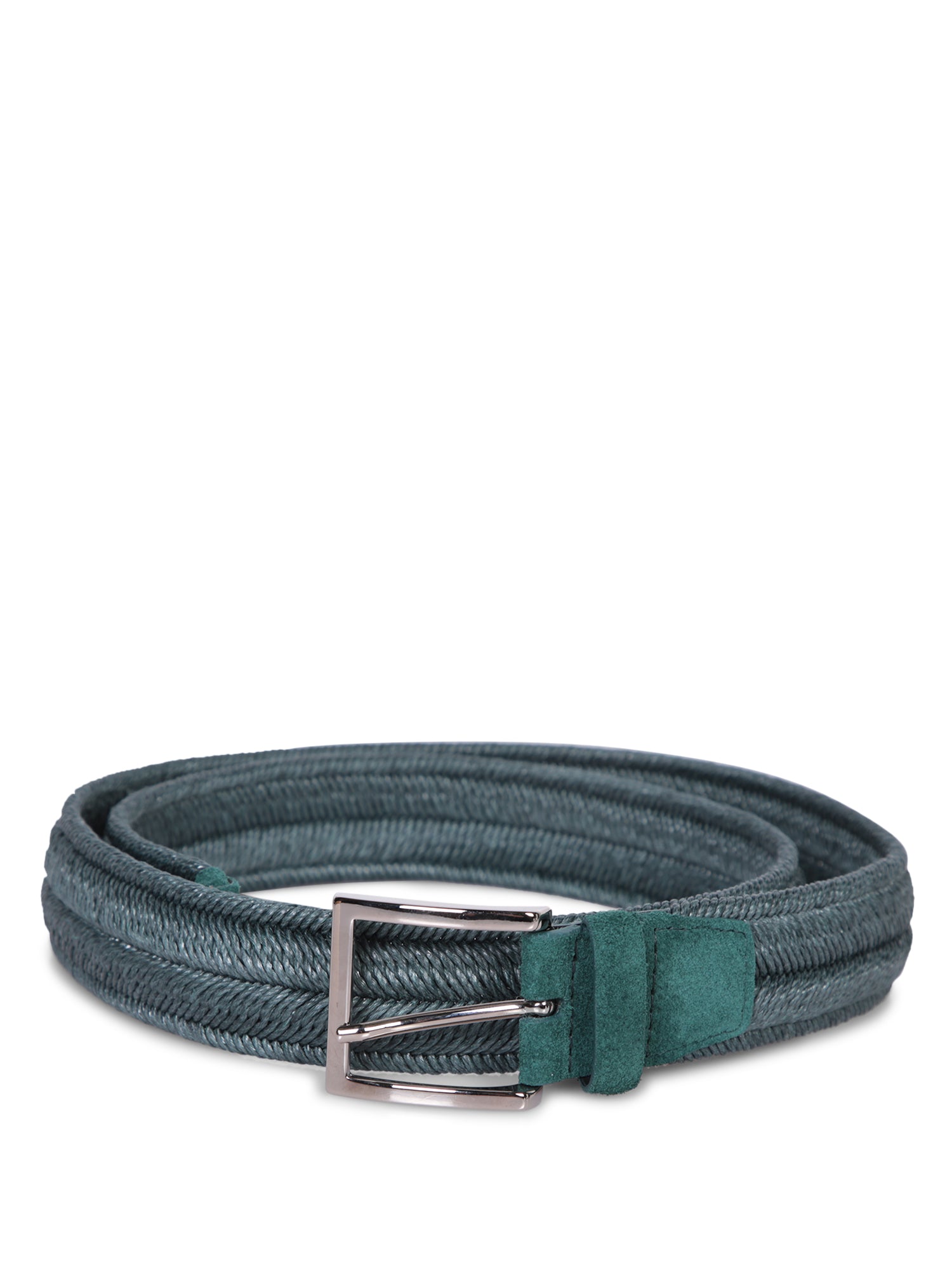 Braided belt. Silver-toned metal buckle. Leather loop at the end.