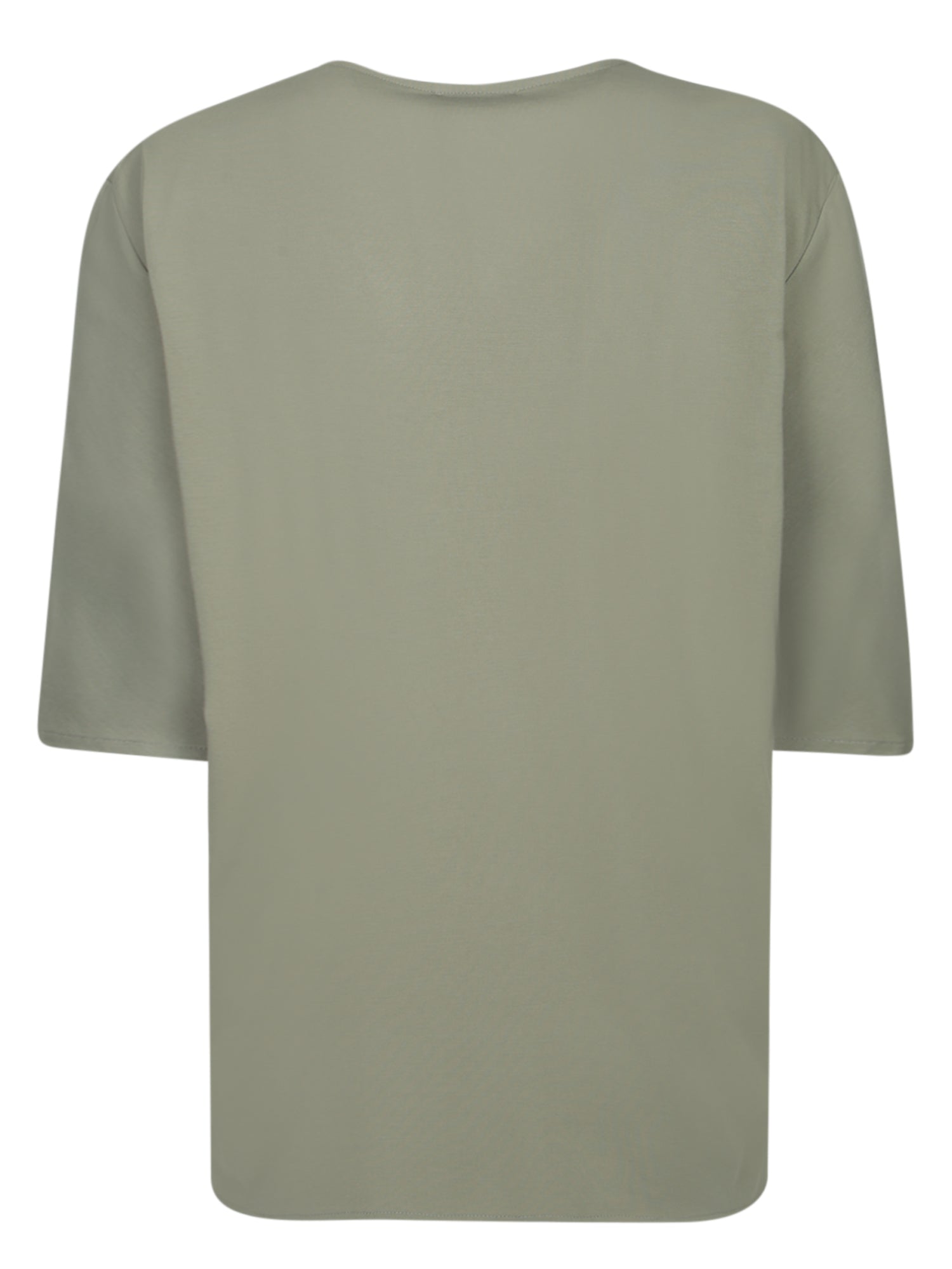 This elegant Blanca Vita blouse in sage hue is crafted from soft jersey fabric, featuring a gently deep V-neck and straight hem. Perfect for a refined everyday look.