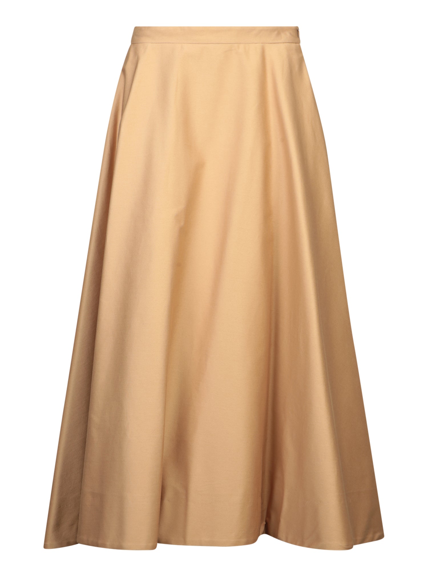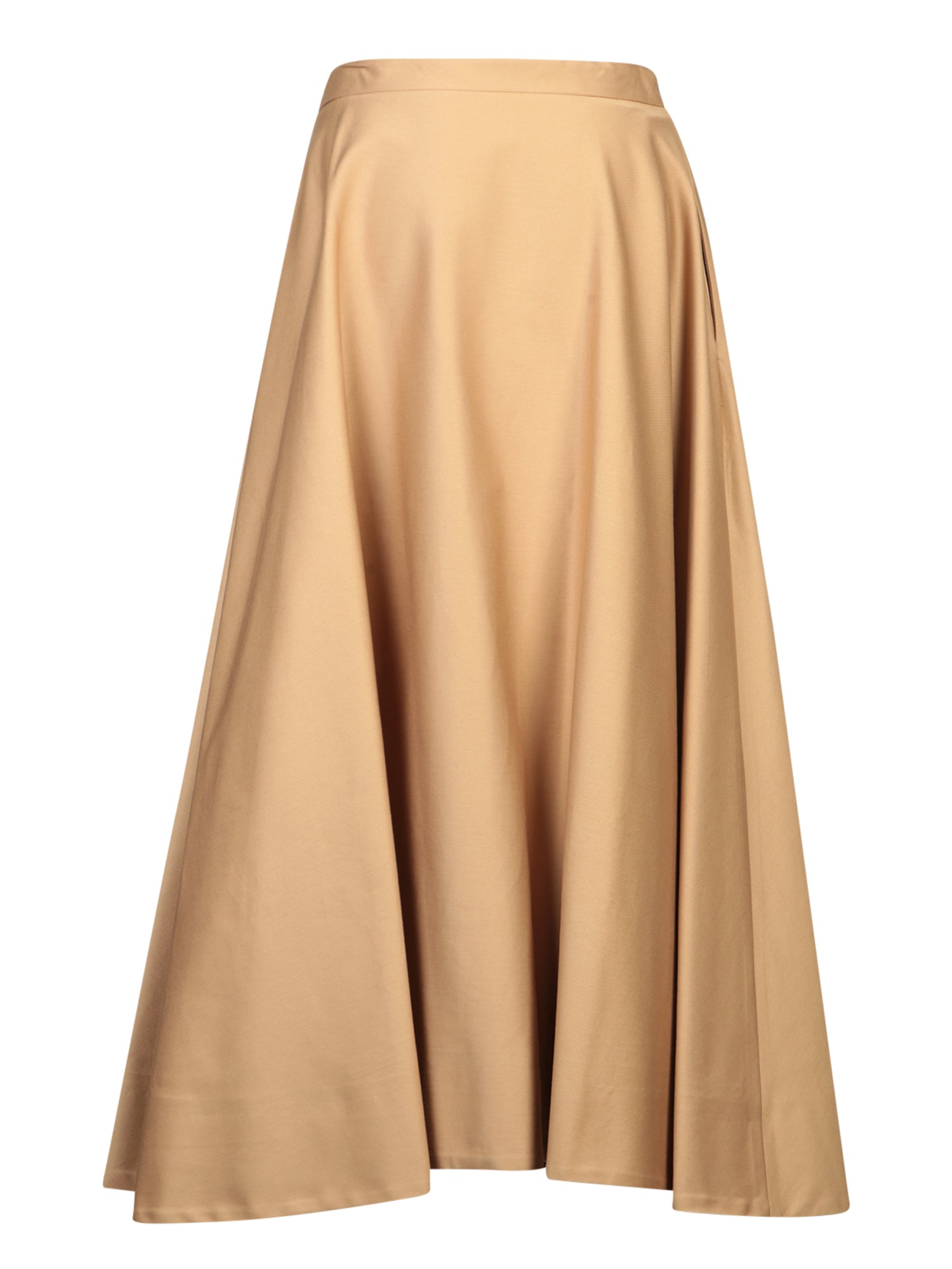 This elegant midi skirt by Blanca Vita exudes sophisticated grace with its full wheel cut and high-quality stretch drill fabric, perfect for versatile styling from day to evening.