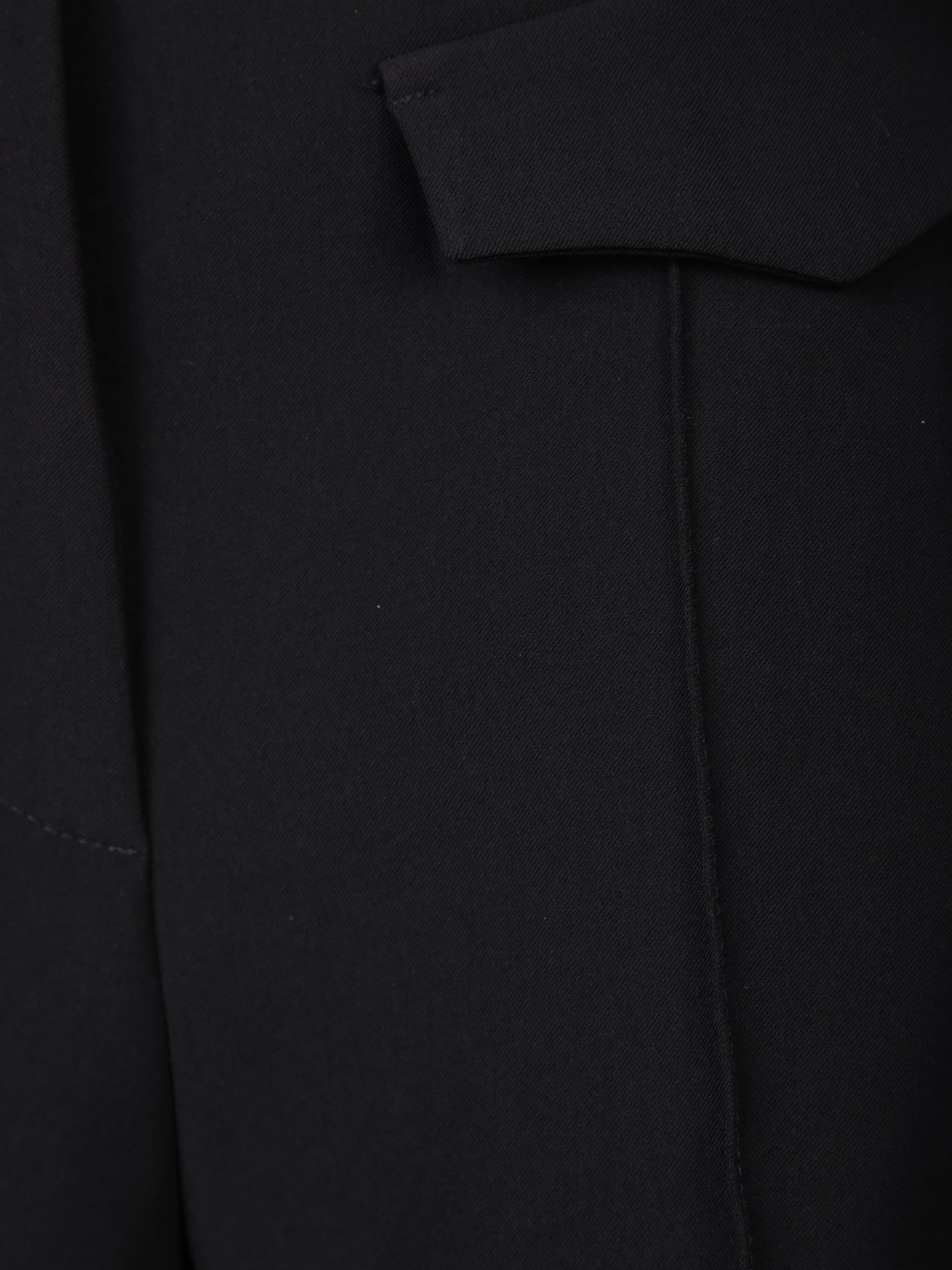 Mid-rise. Concealed front fastening. Belt loops. Two side pockets. Front flap. Central topstitching. Tone-on-tone stitching. Regular fit. Straight hem. Color: black.