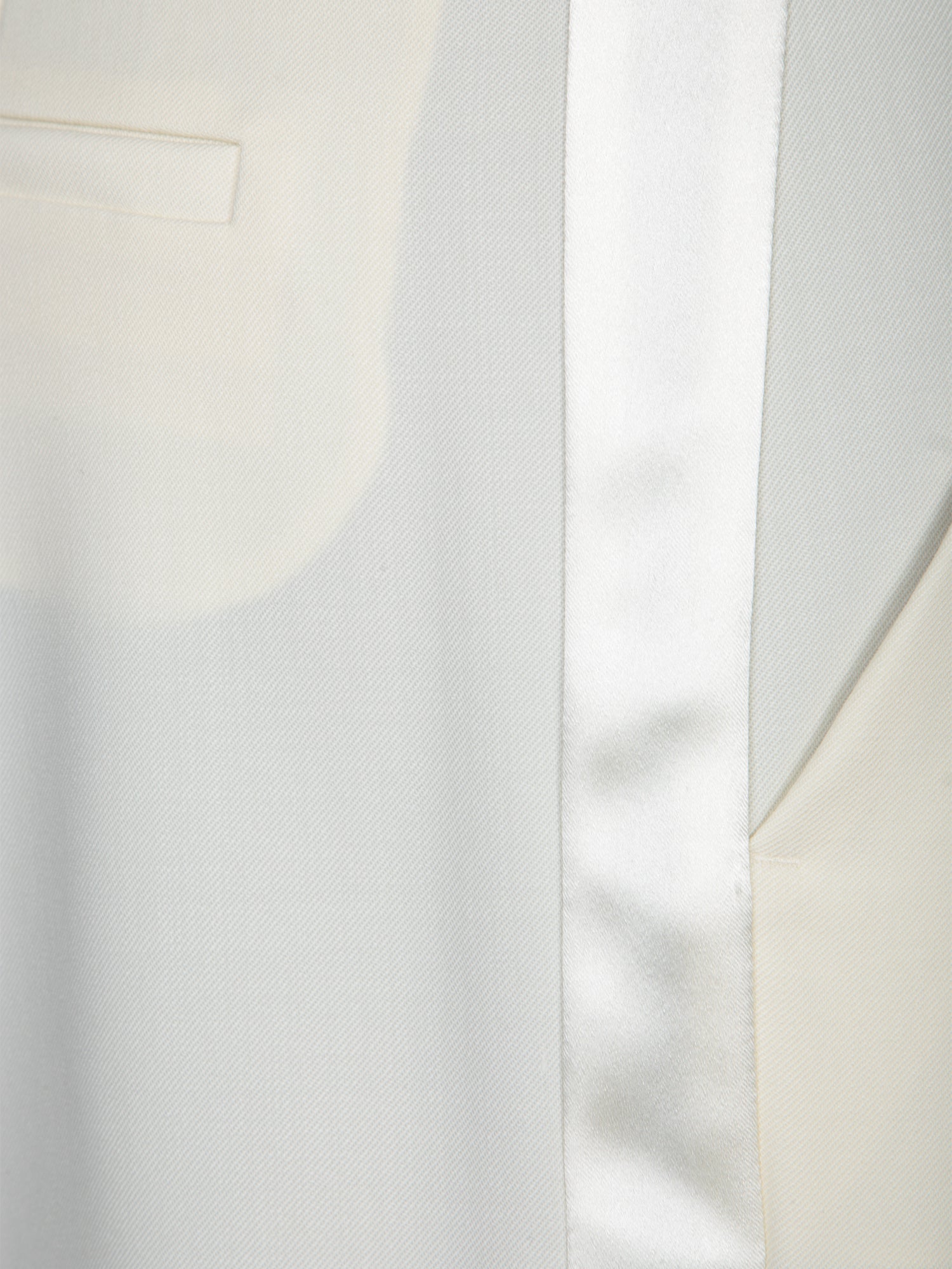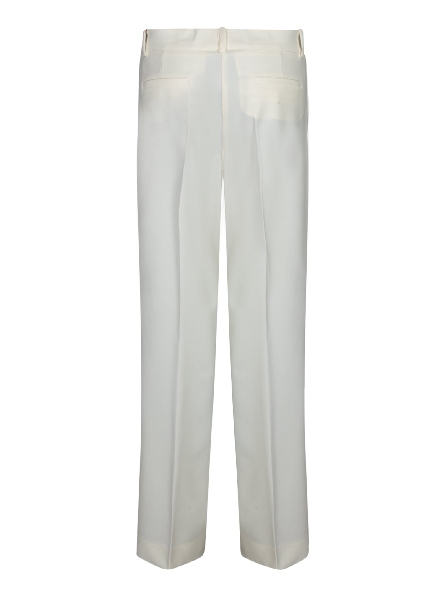 High-waisted design. Front zip and hook closure. Slant side pockets.