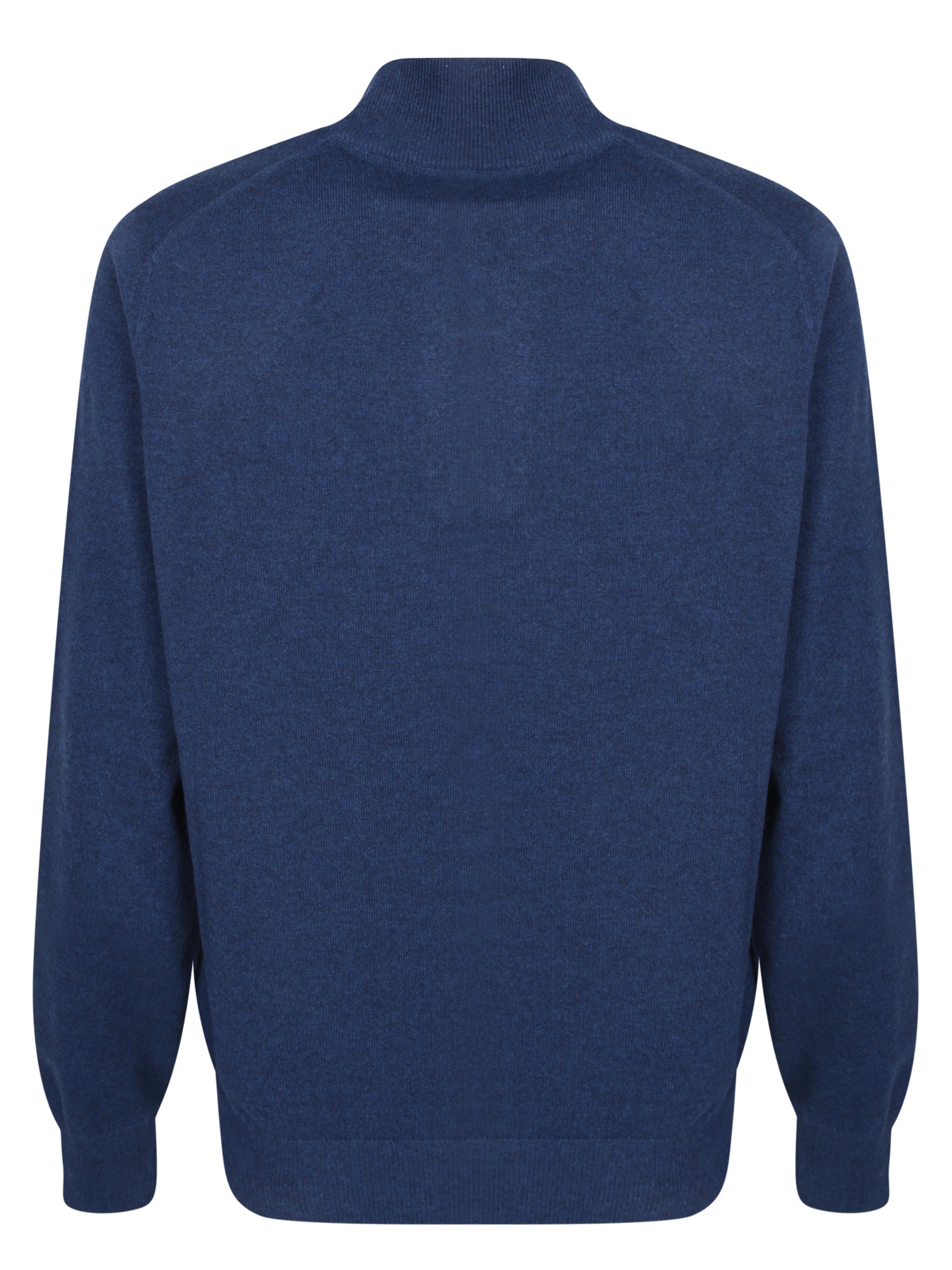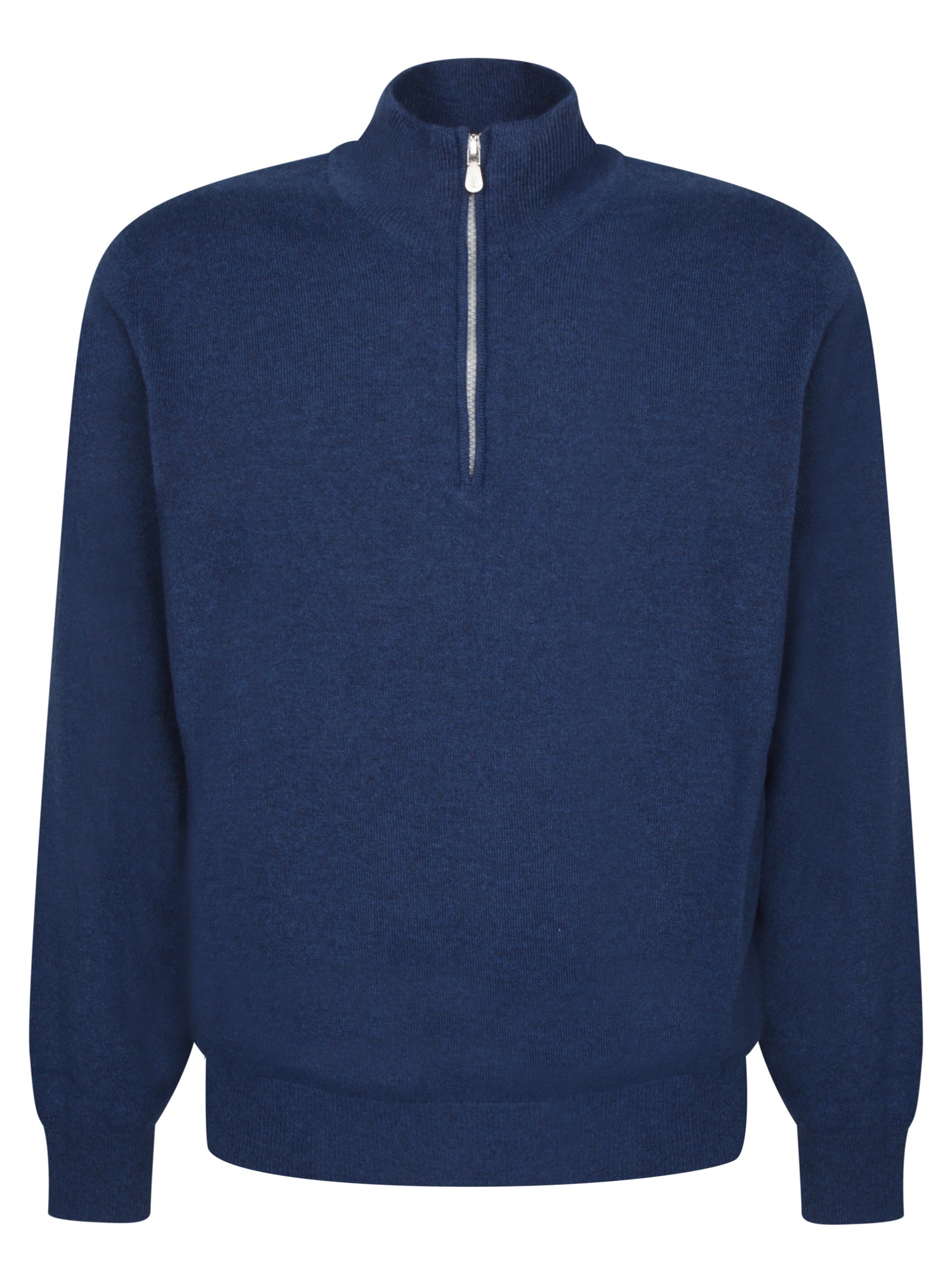 High collar with midzip closure. Long sleeves. Ribbed hem and cuffs.