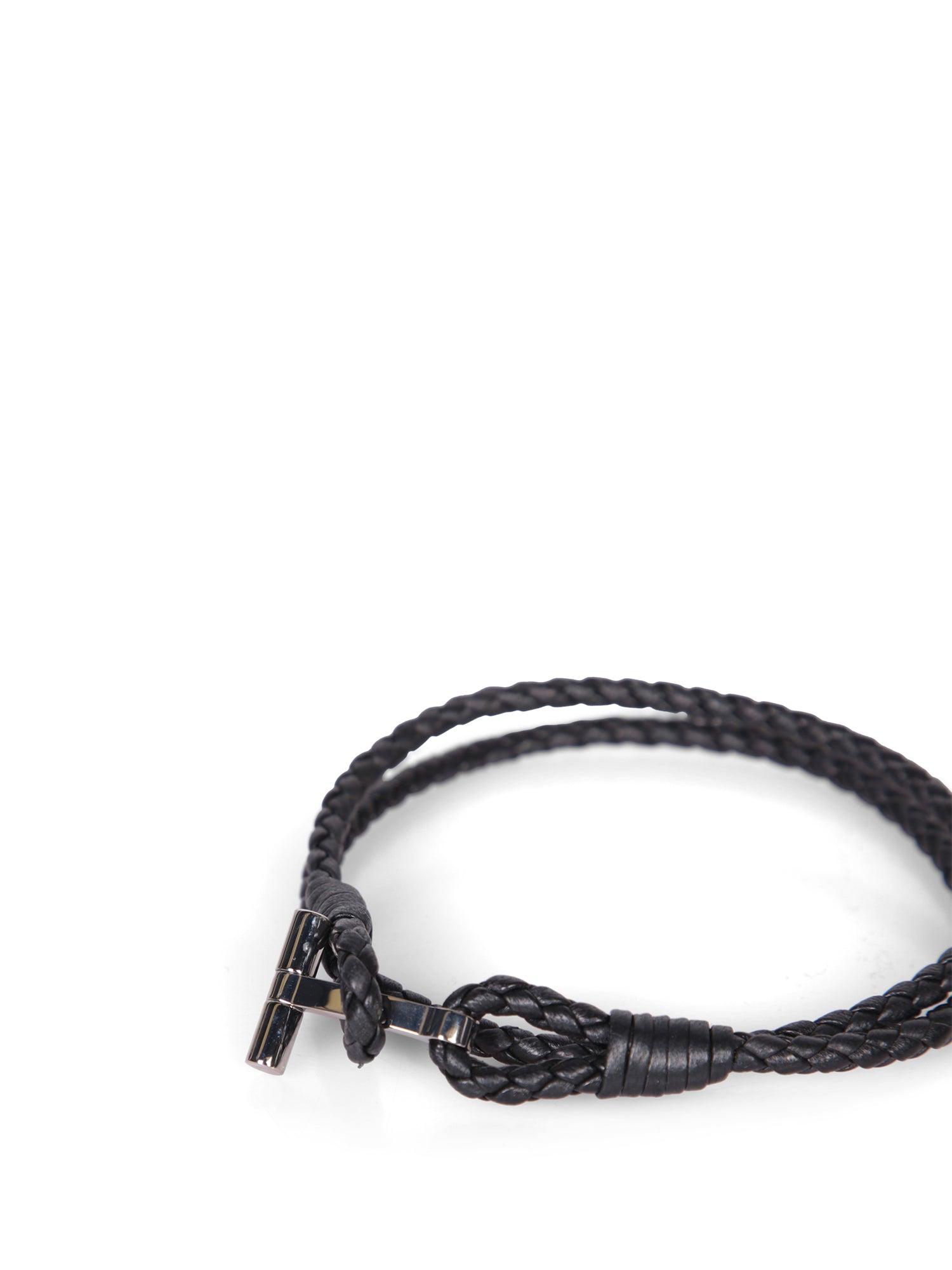 A refined addition to any accessory collection, this Tom Ford bracelet features intricately braided black leather with a sleek metallic closure that embodies a luxurious, contemporary aesthetic.