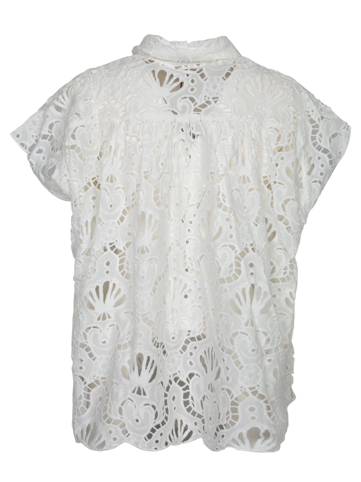 Short sleeve shirt. Made of lace with Seashell Eyelet pattern. Front button closure.