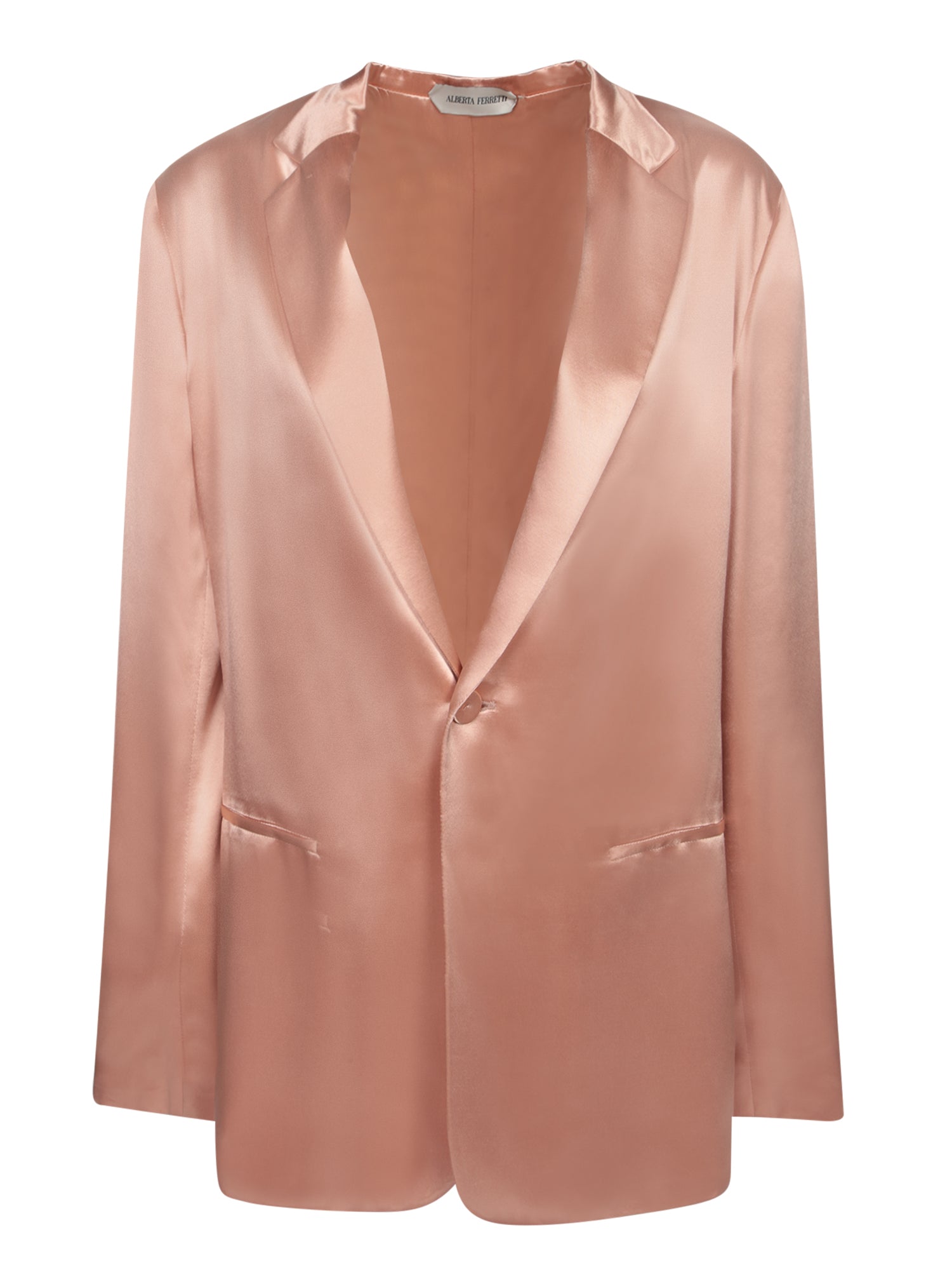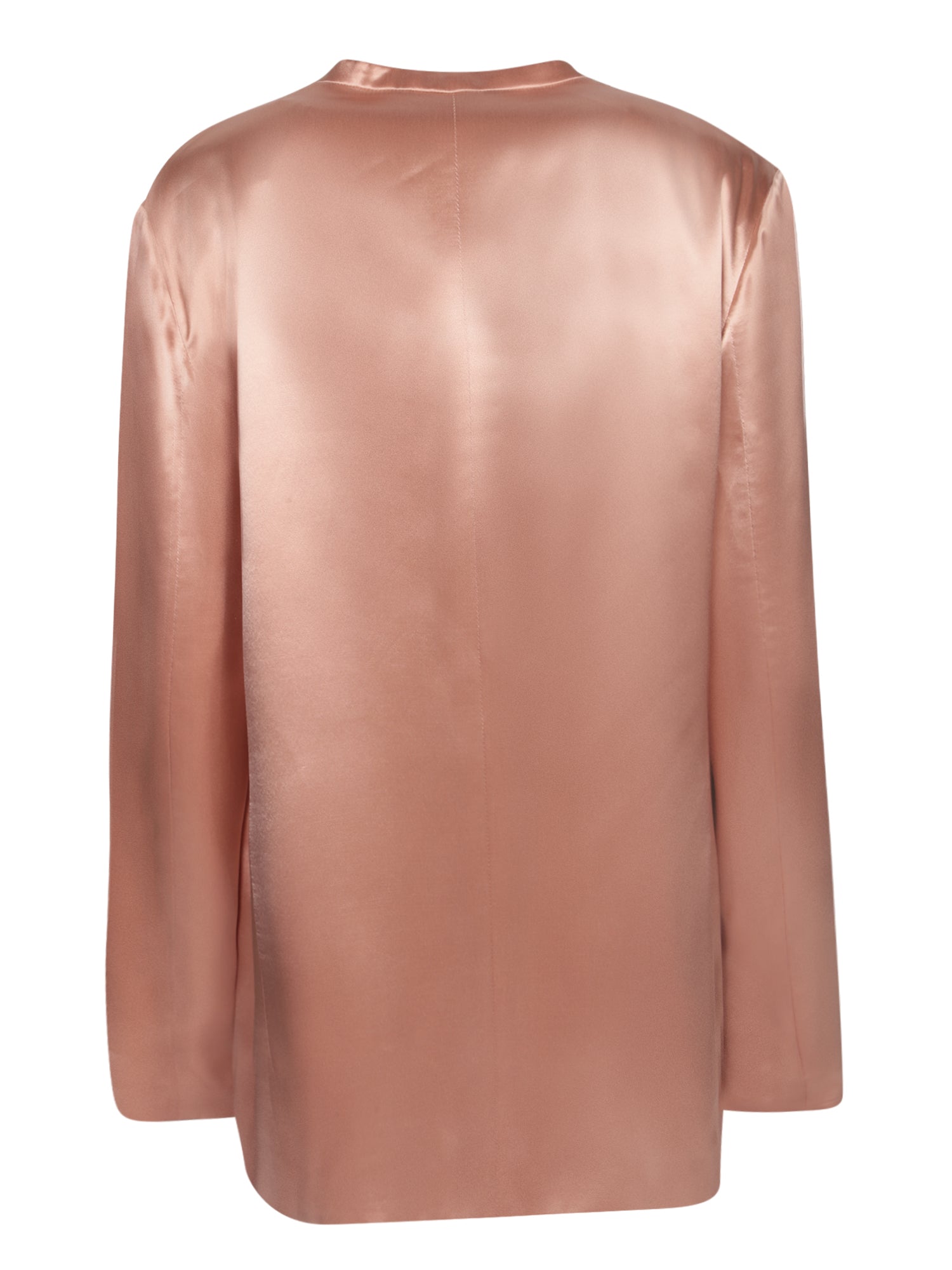 Relaxed fit jacket. Made of shiny satin. Pink color.