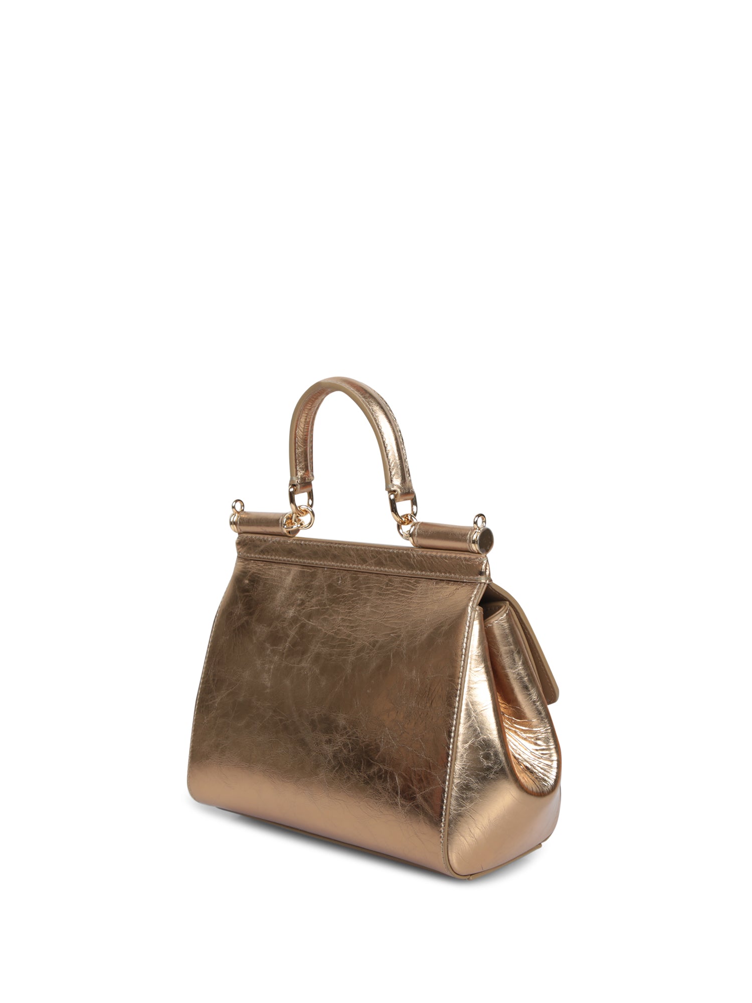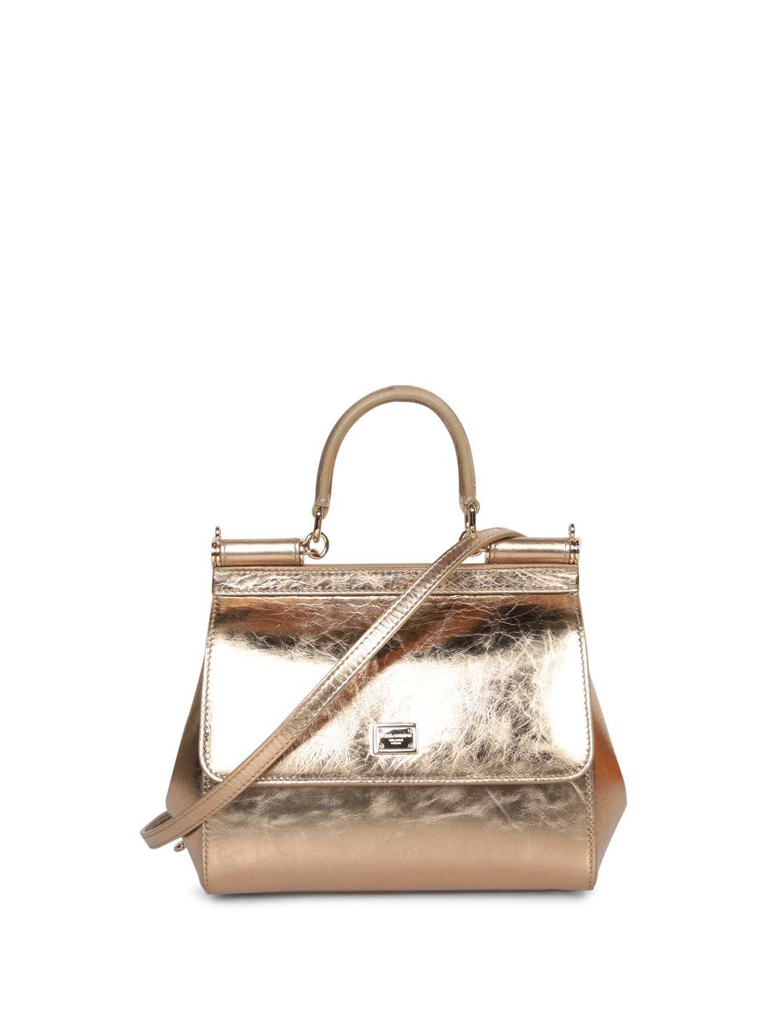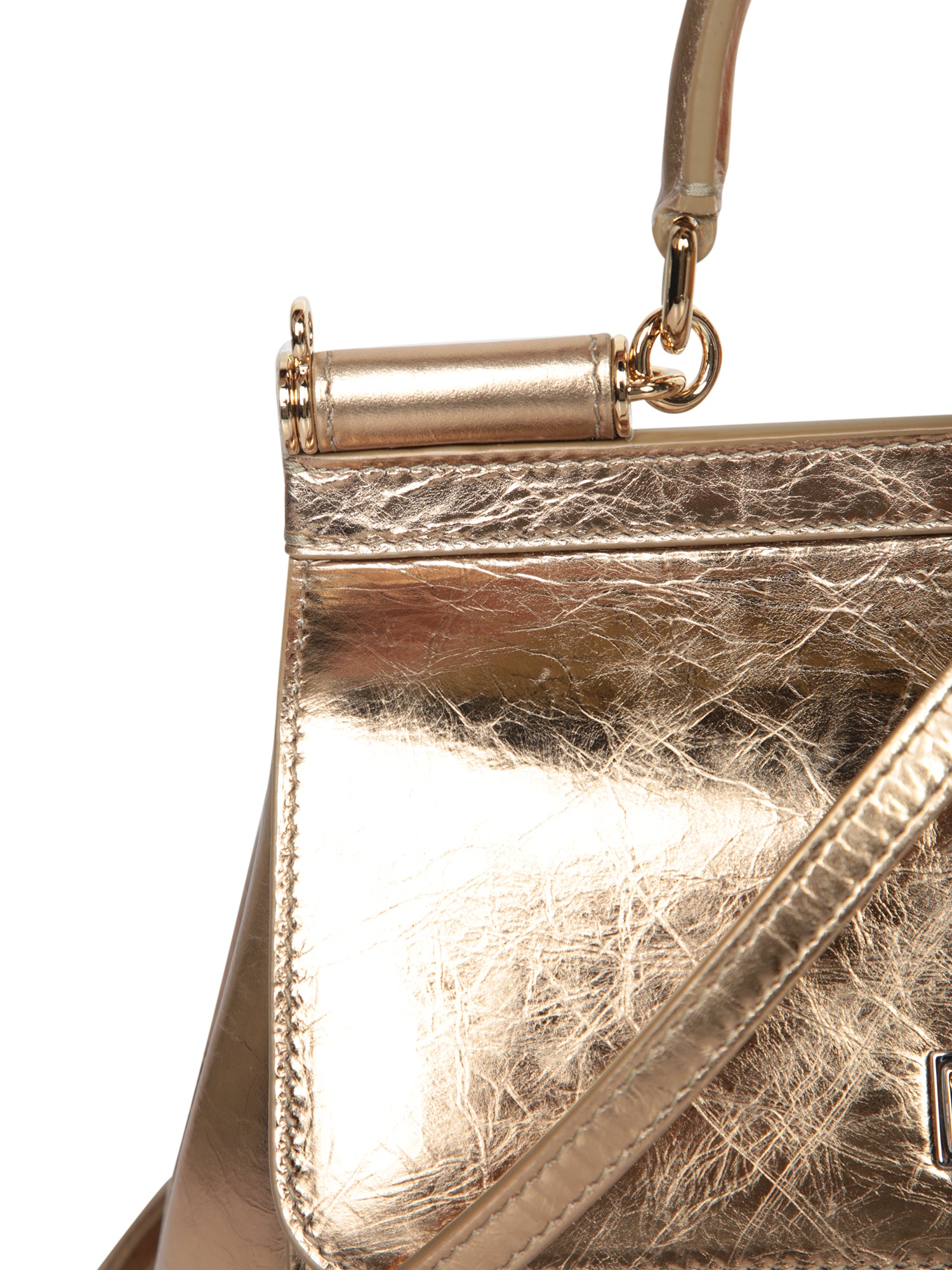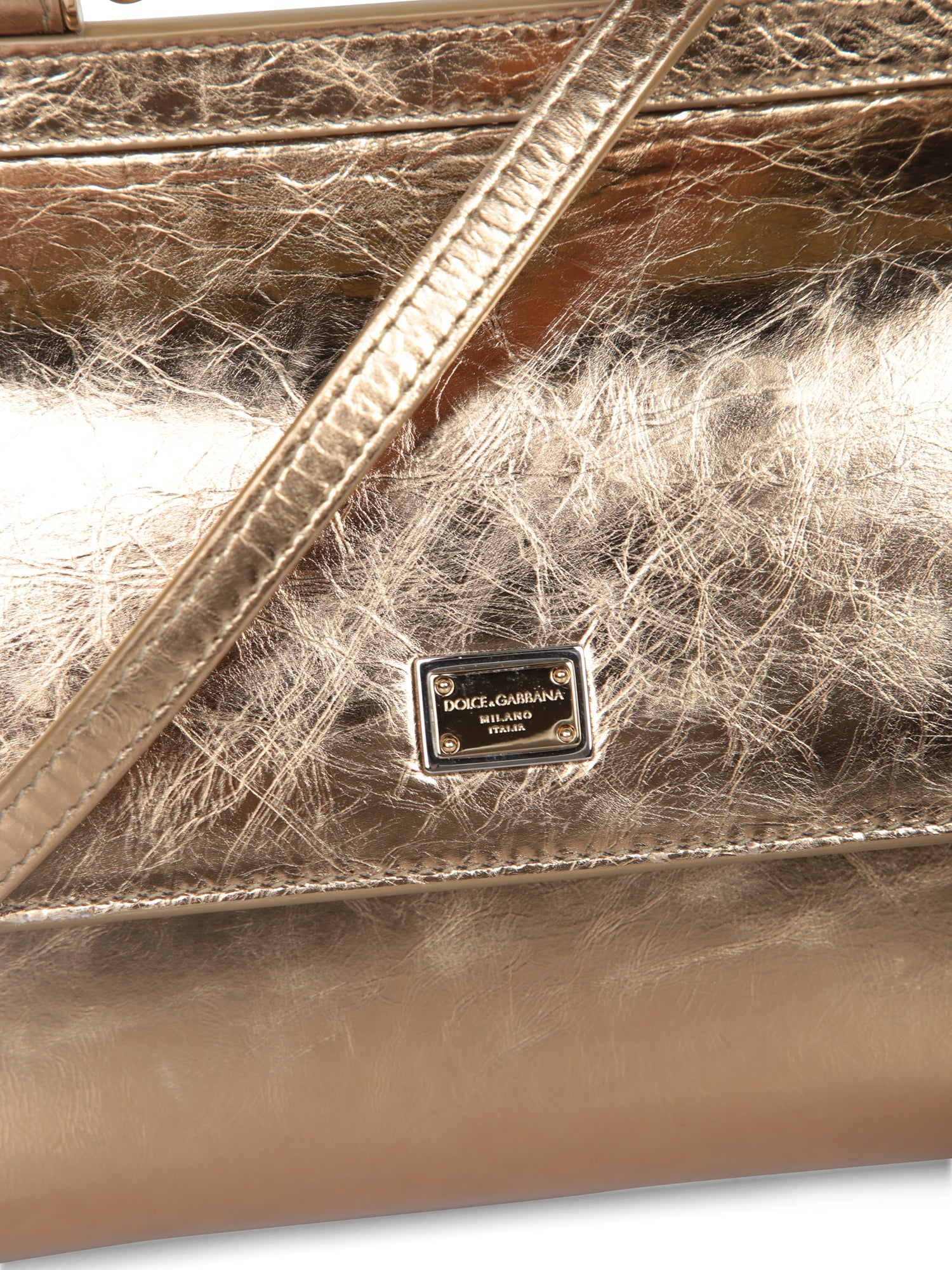 Intricate gold metallic design with brown leather details creates an air of sophisticated luxury, perfect for enhancing any refined outfit.