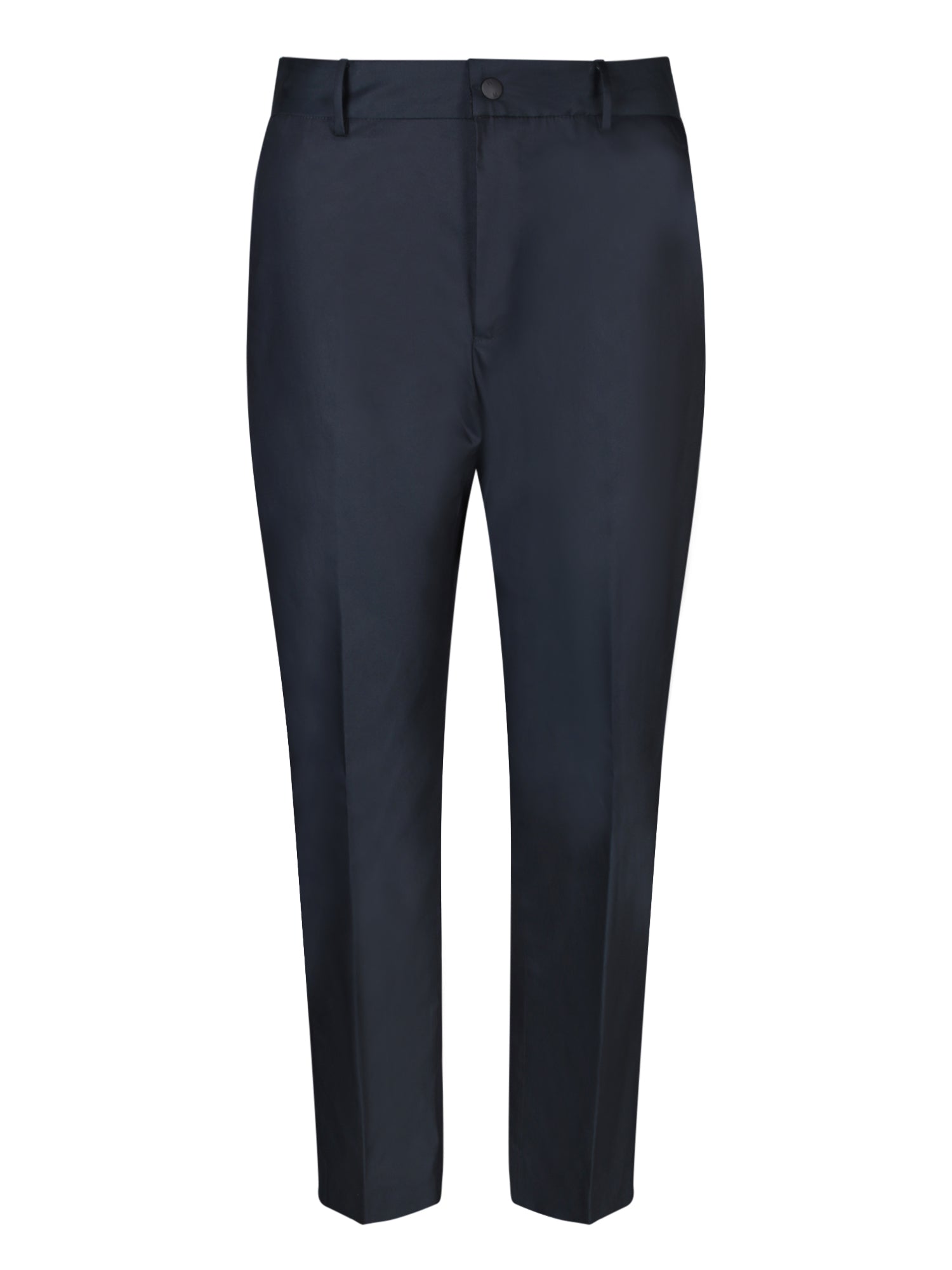 Mid-rise. Straight leg. Front fastening. Side pockets.