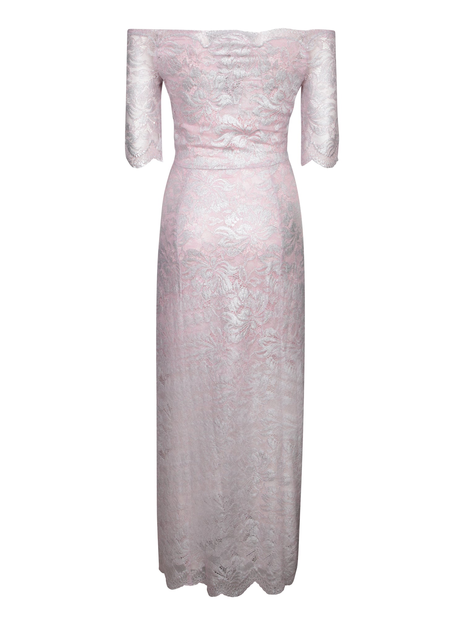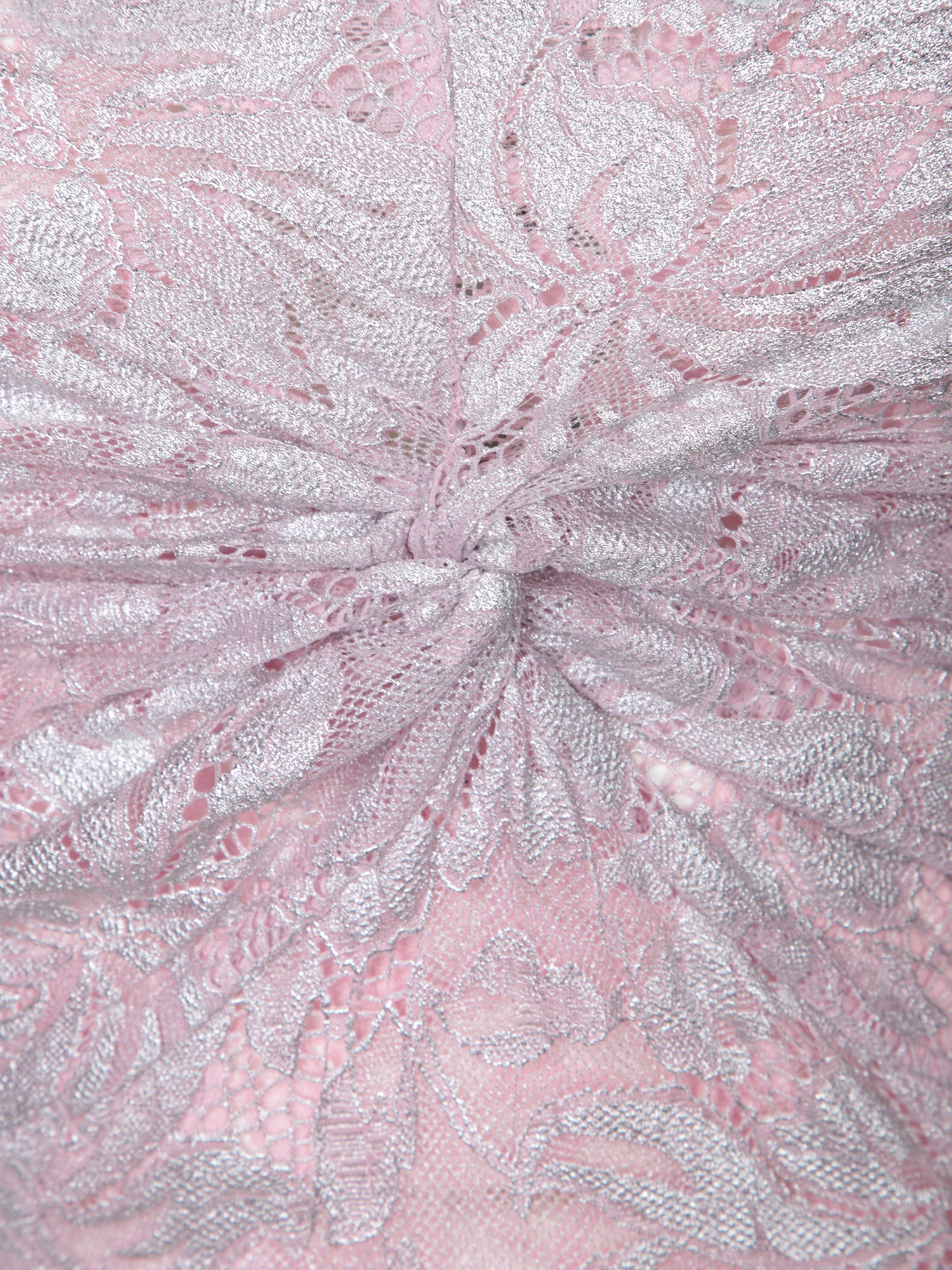 This exclusive Paco Rabanne dress merges elegance and sophistication with intricate silver pink lace detailing and a central knot accentuating the silhouette. Perfect for evening events, it showcases exquisite craftsmanship with a sophisticated cut.