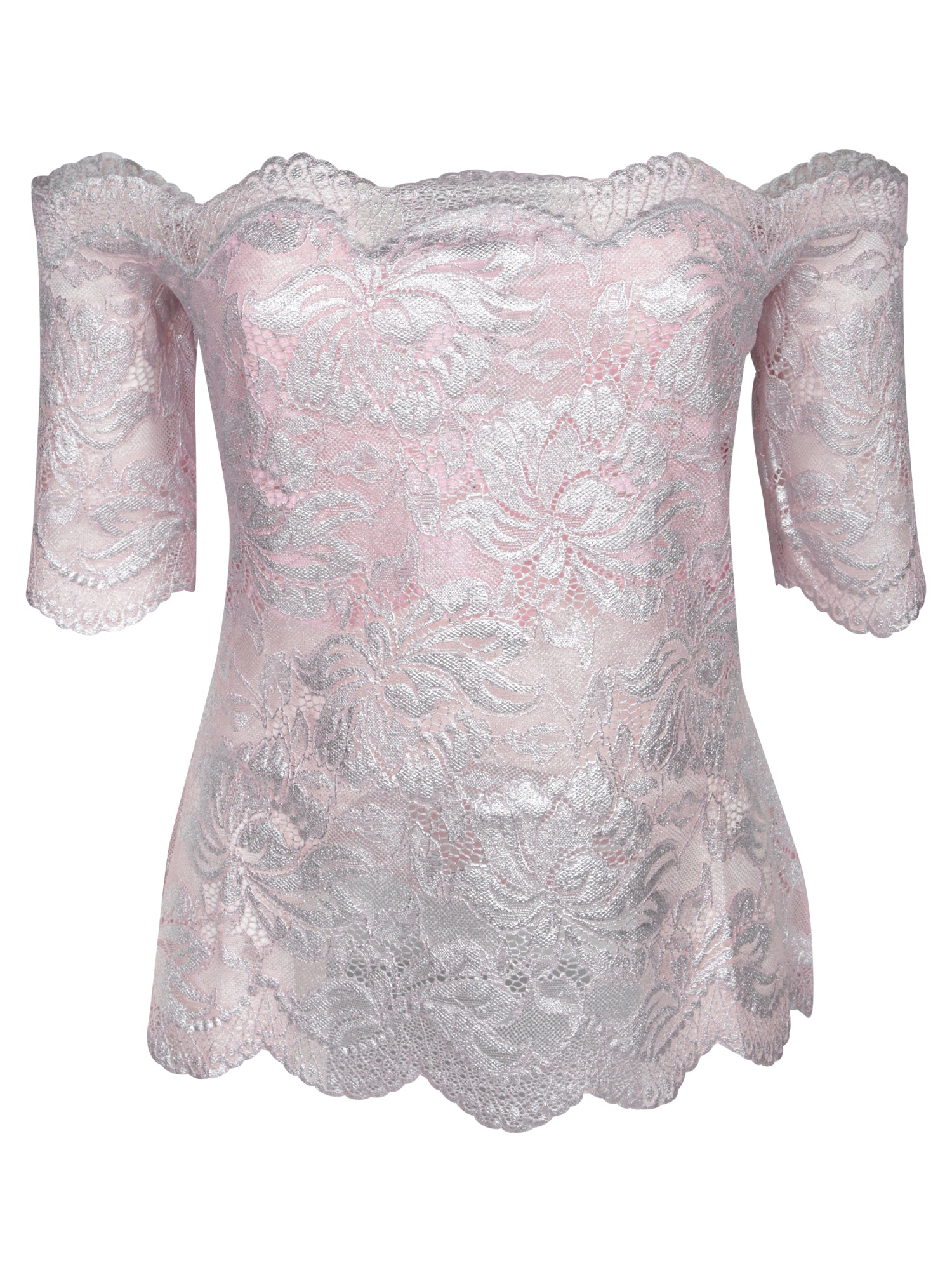 This PACO RABANNE delicate silver pink lace T-Shirt enchants with its sweetheart neckline and scalloped hem. An ideal piece to add a touch of elegance and femininity to your wardrobe.