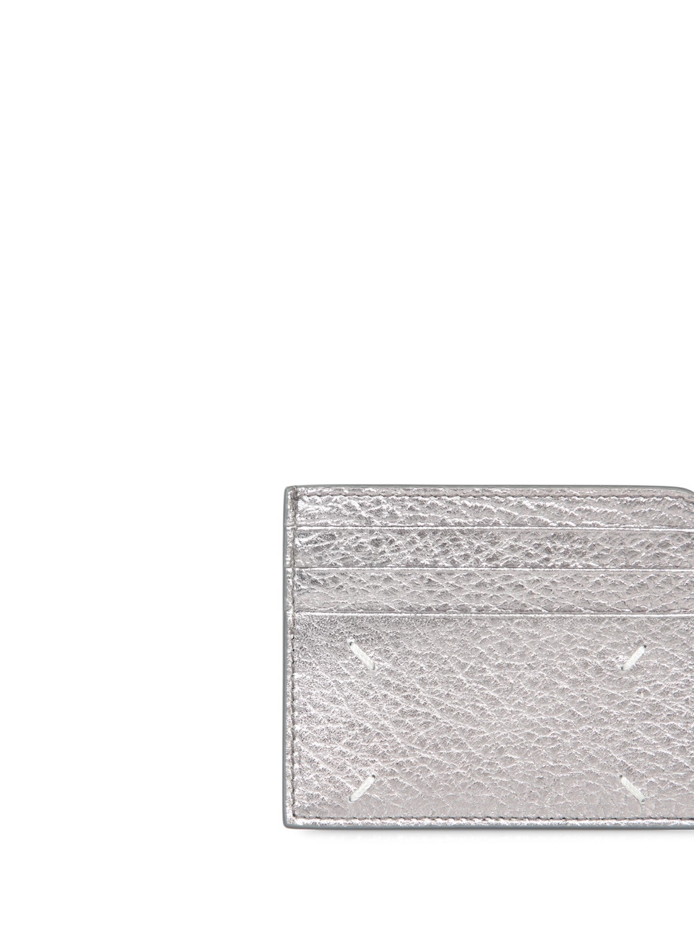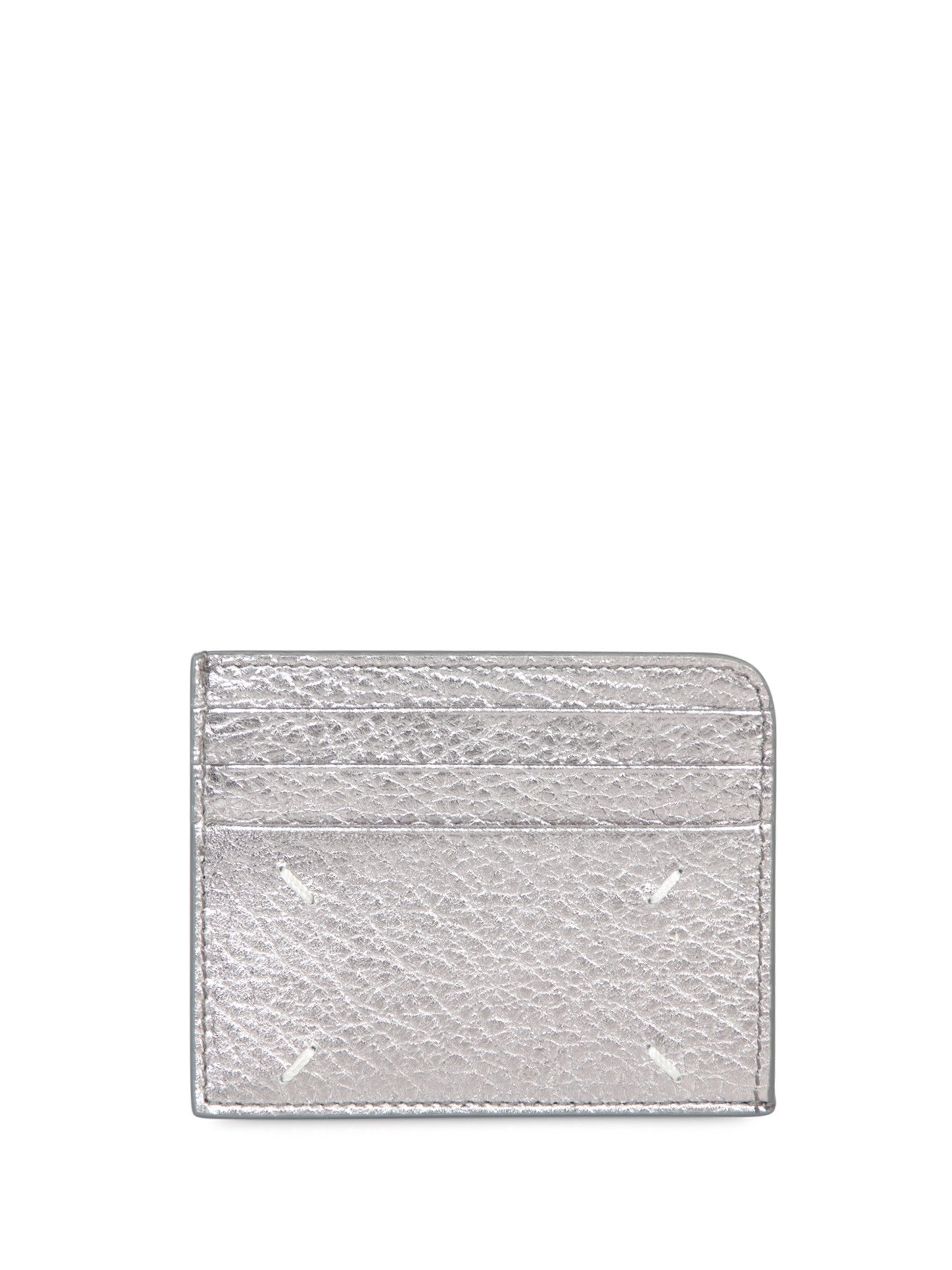 Crafted from high-quality metallic leather, this sleek Maison Margiela card holder features a minimalist design with functional spaces for daily card organization.