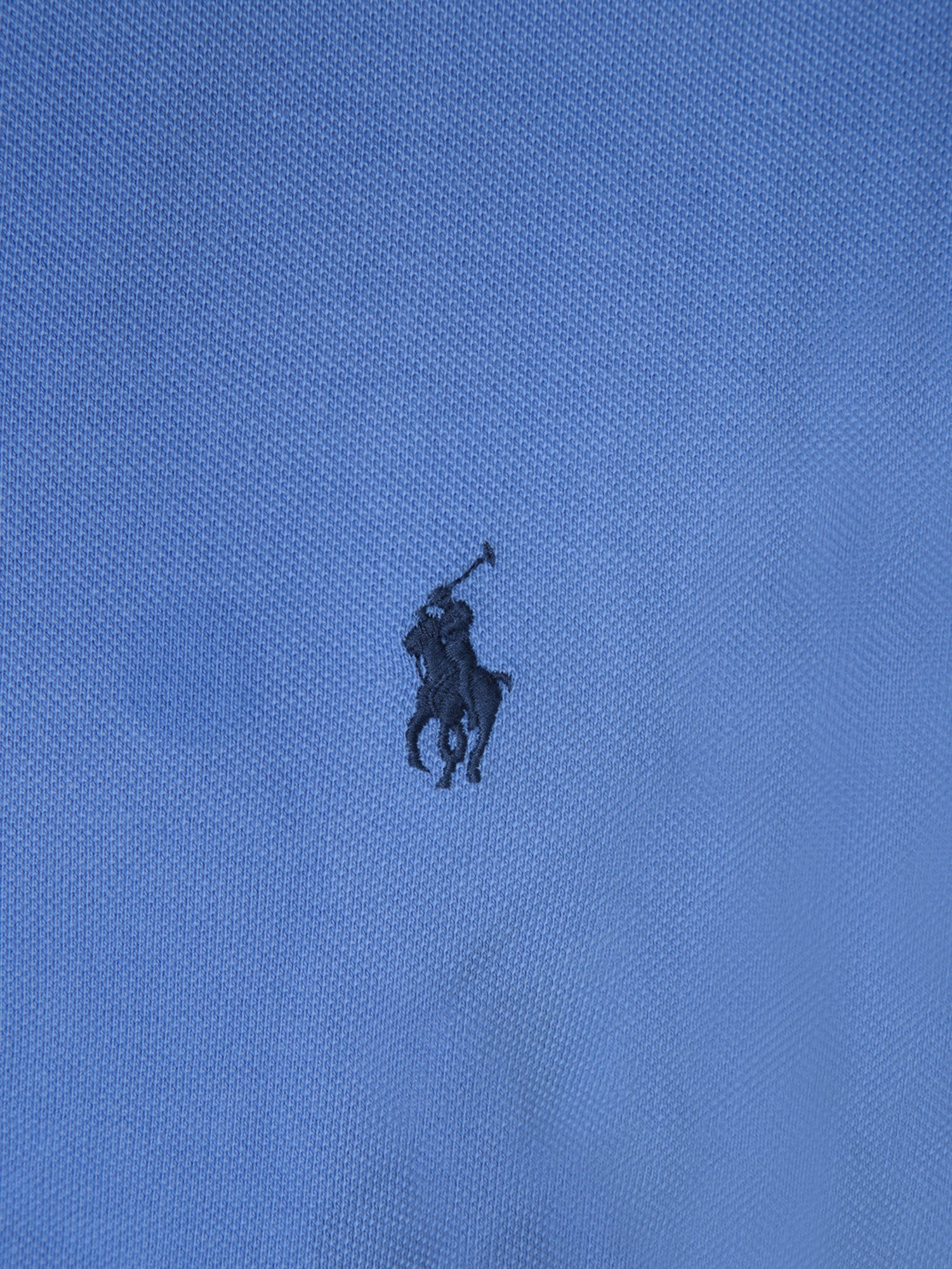 Short sleeves, piquet fabric, classic collar with two-button placket.