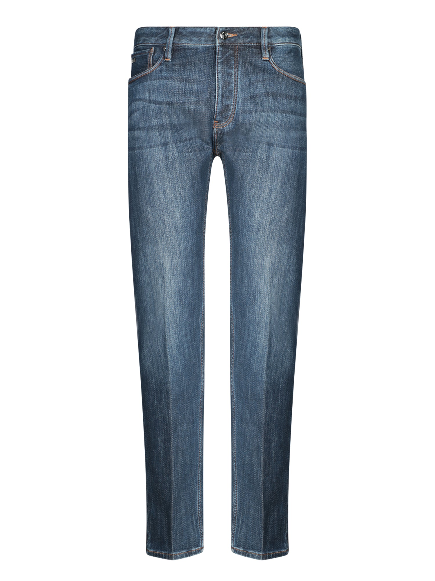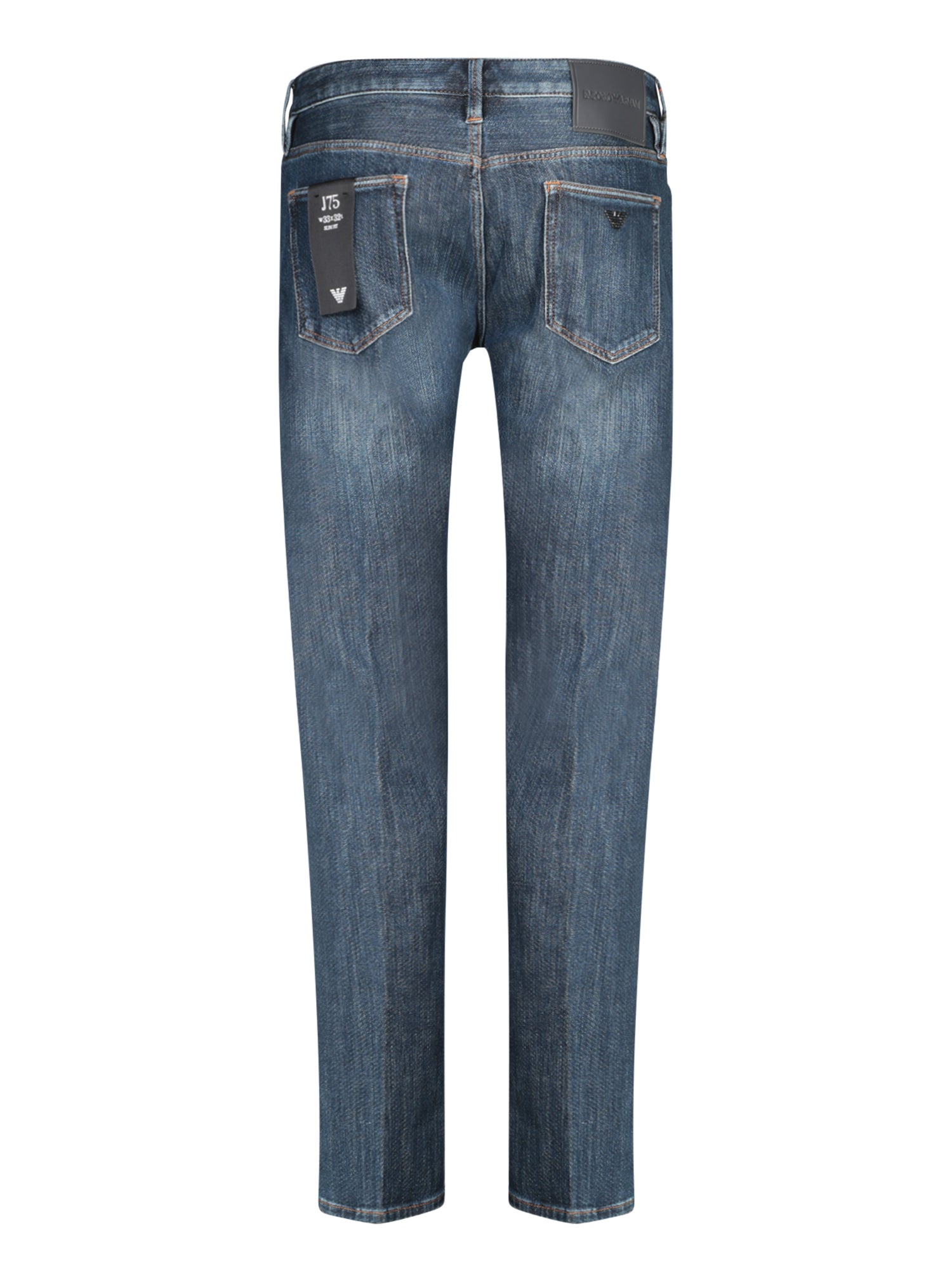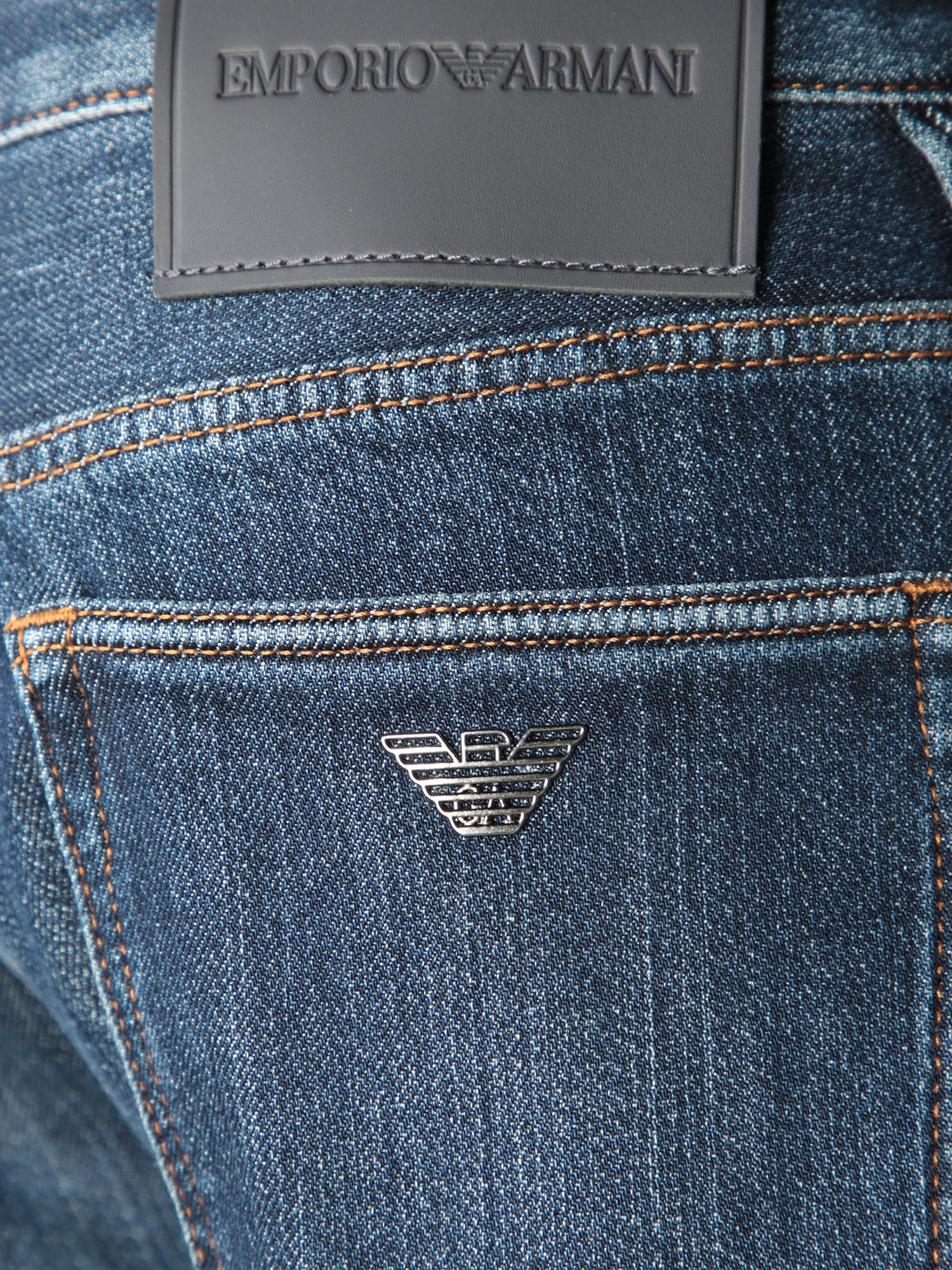Showcase impeccable style with Emporio Armani's slim fit jeans, featuring a modern zip and button closure. They include a distinctive plaque on the back and are crafted from durable blue denim ensuring comfort and longevity.