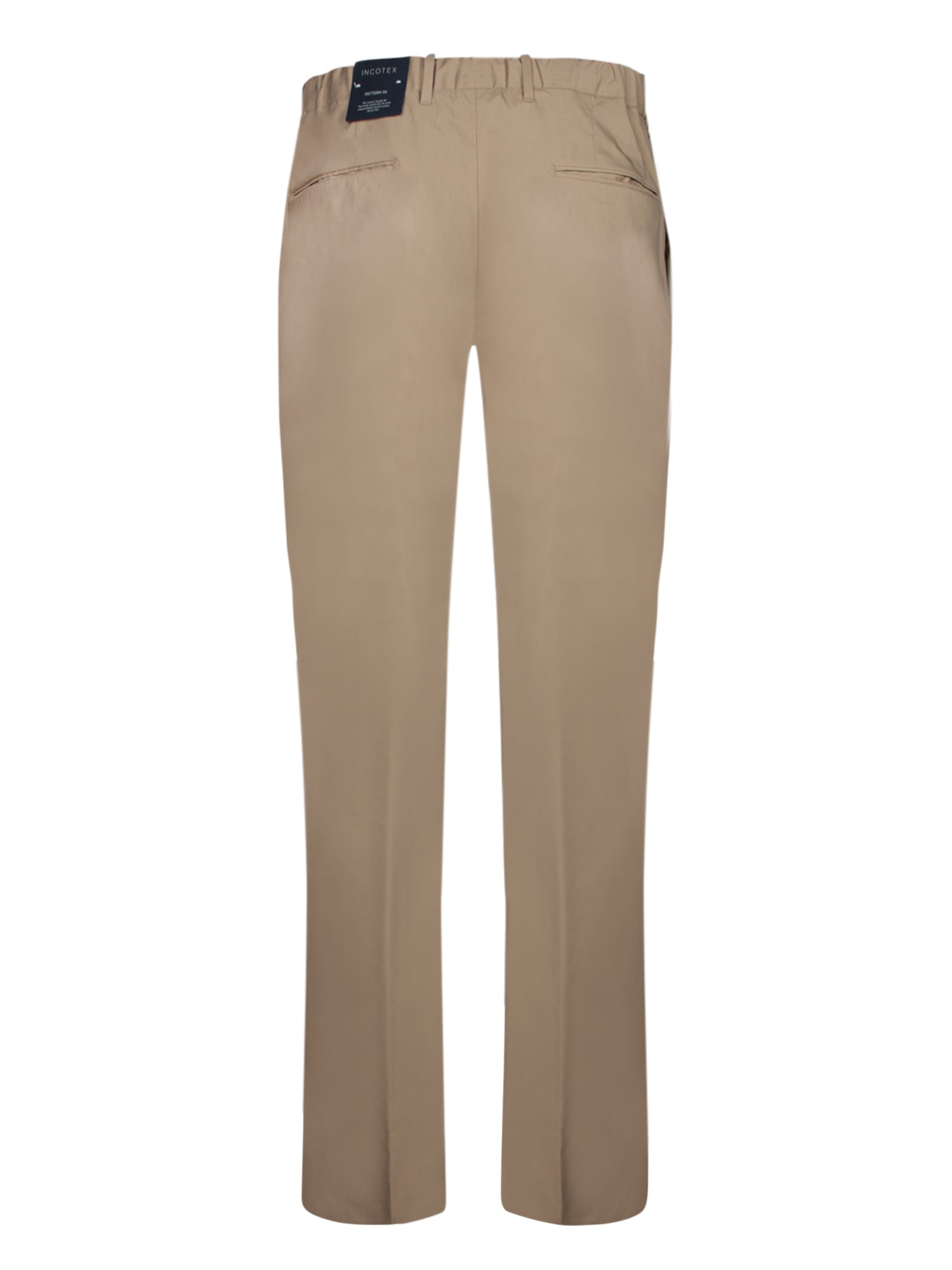 These elegant INCOTEX trousers in beige feature a modern cut that enhances the silhouette, making them perfect for a formal occasion or a business casual outfit.