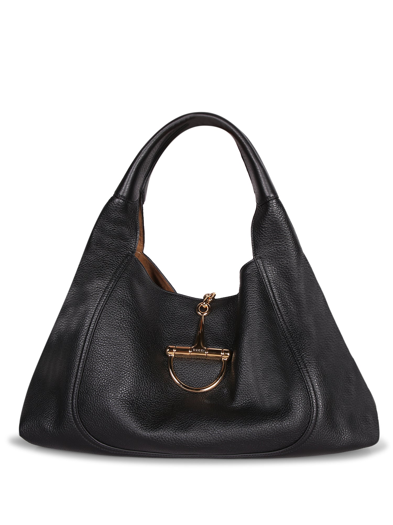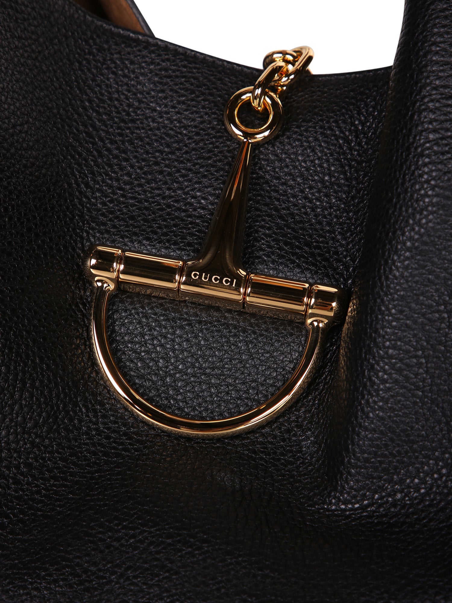 Crafted from high-quality leather. Features an iconic gold-tone horsebit closure. Sturdy top handles.