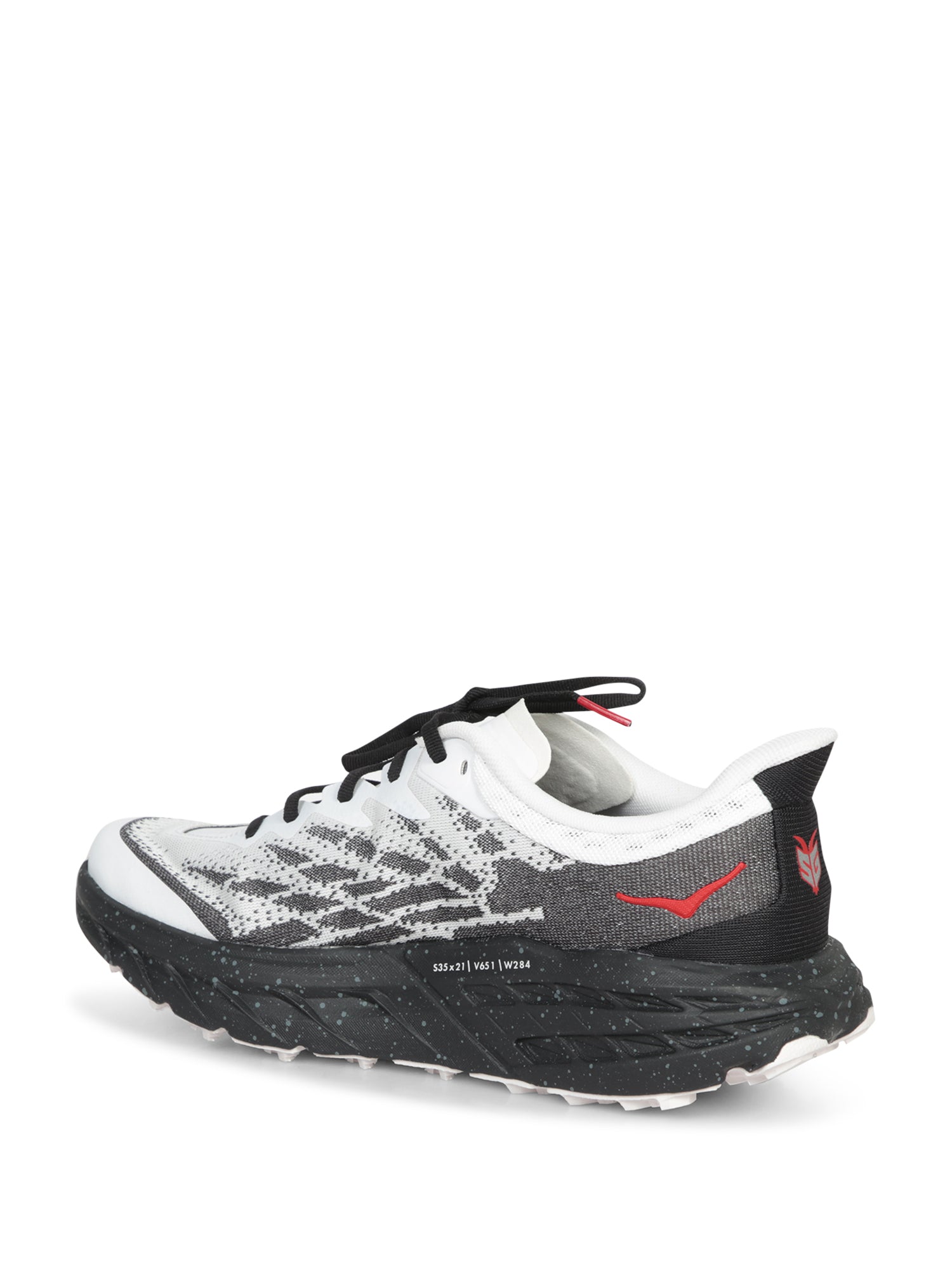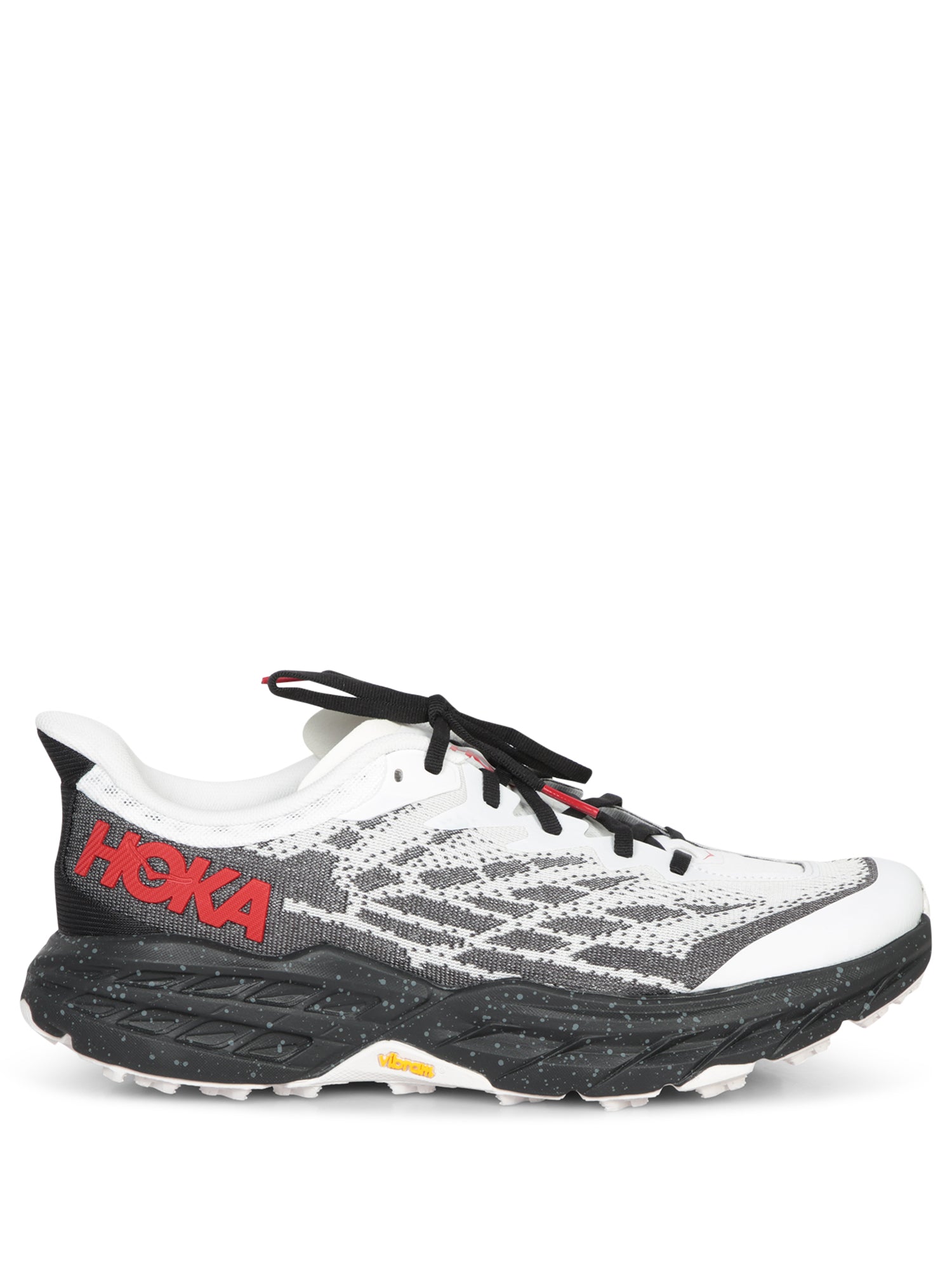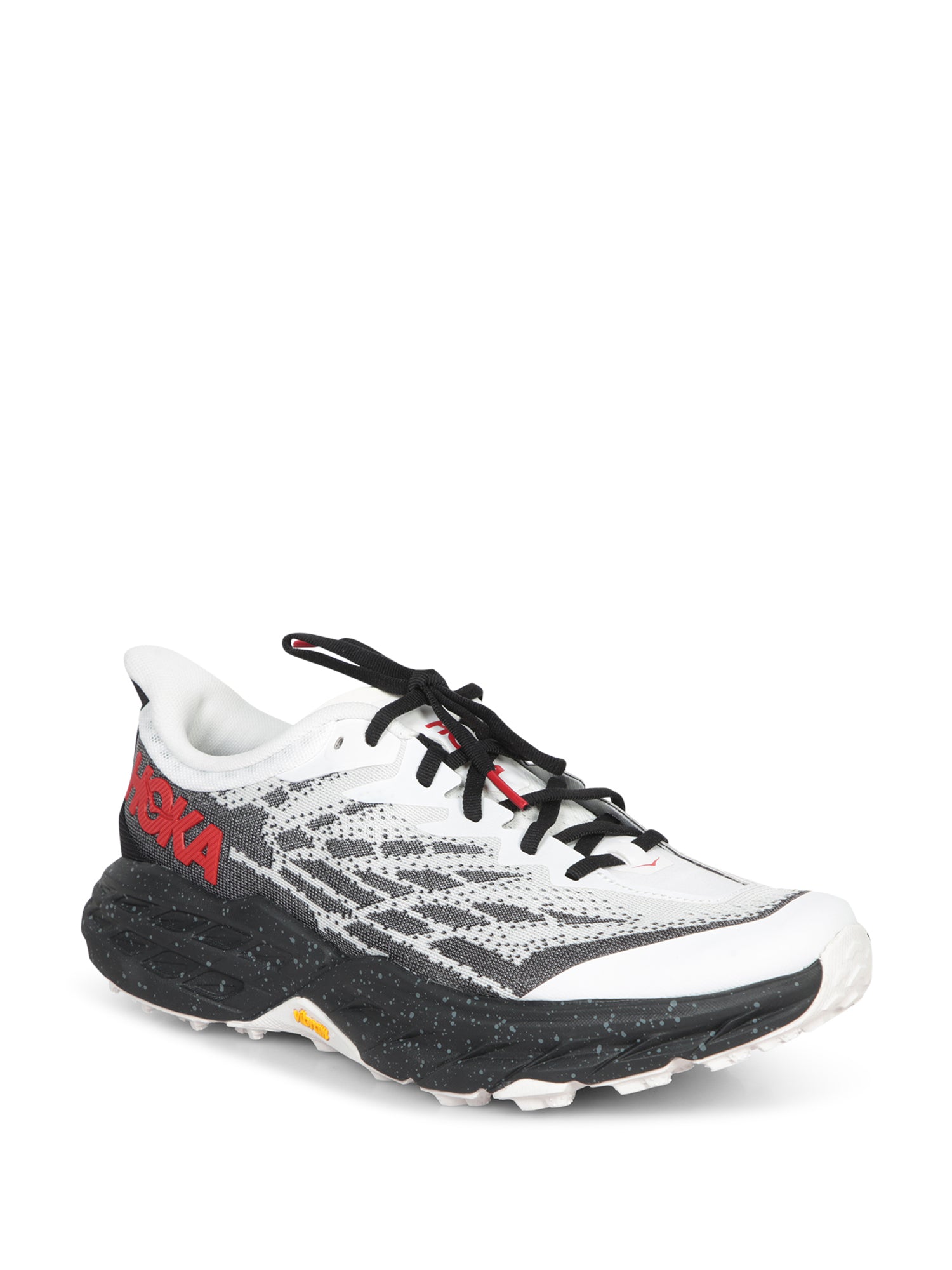 The Hoka One One Speedgoat 5 sneakers feature a snug black and white knit structure, designed to provide maximum comfort and high performance. The design is rounded off with a sturdy Vibram® sole that ensures traction and durability.