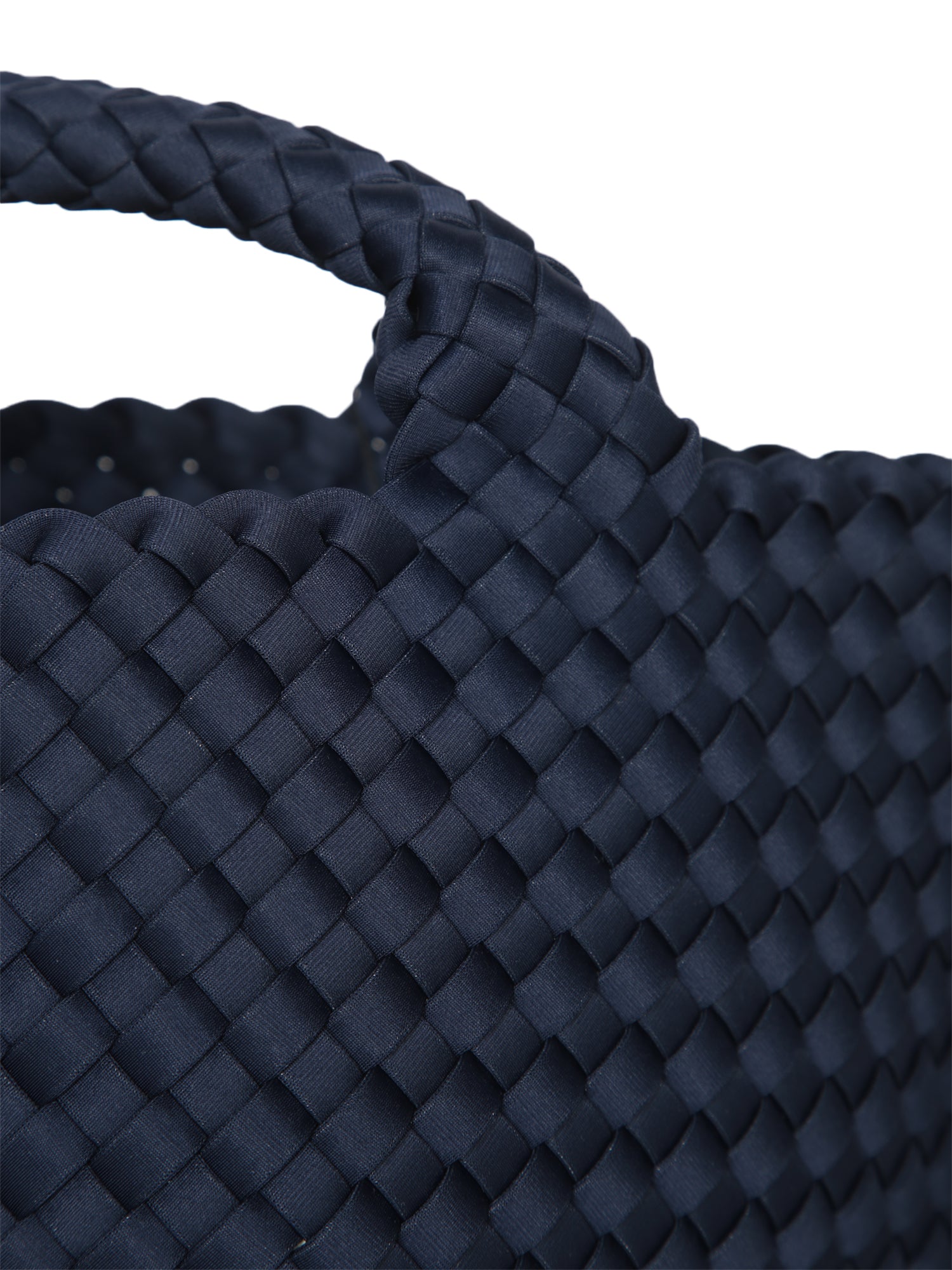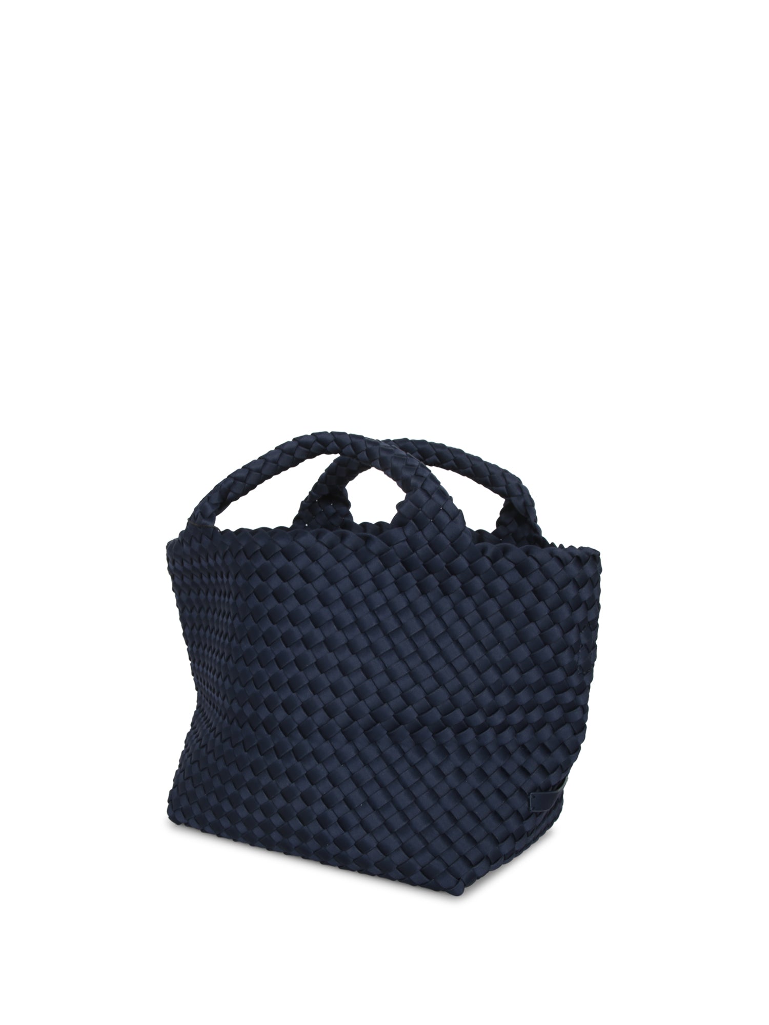 Hand-woven bag. Sturdy handles. Compact and structured design.