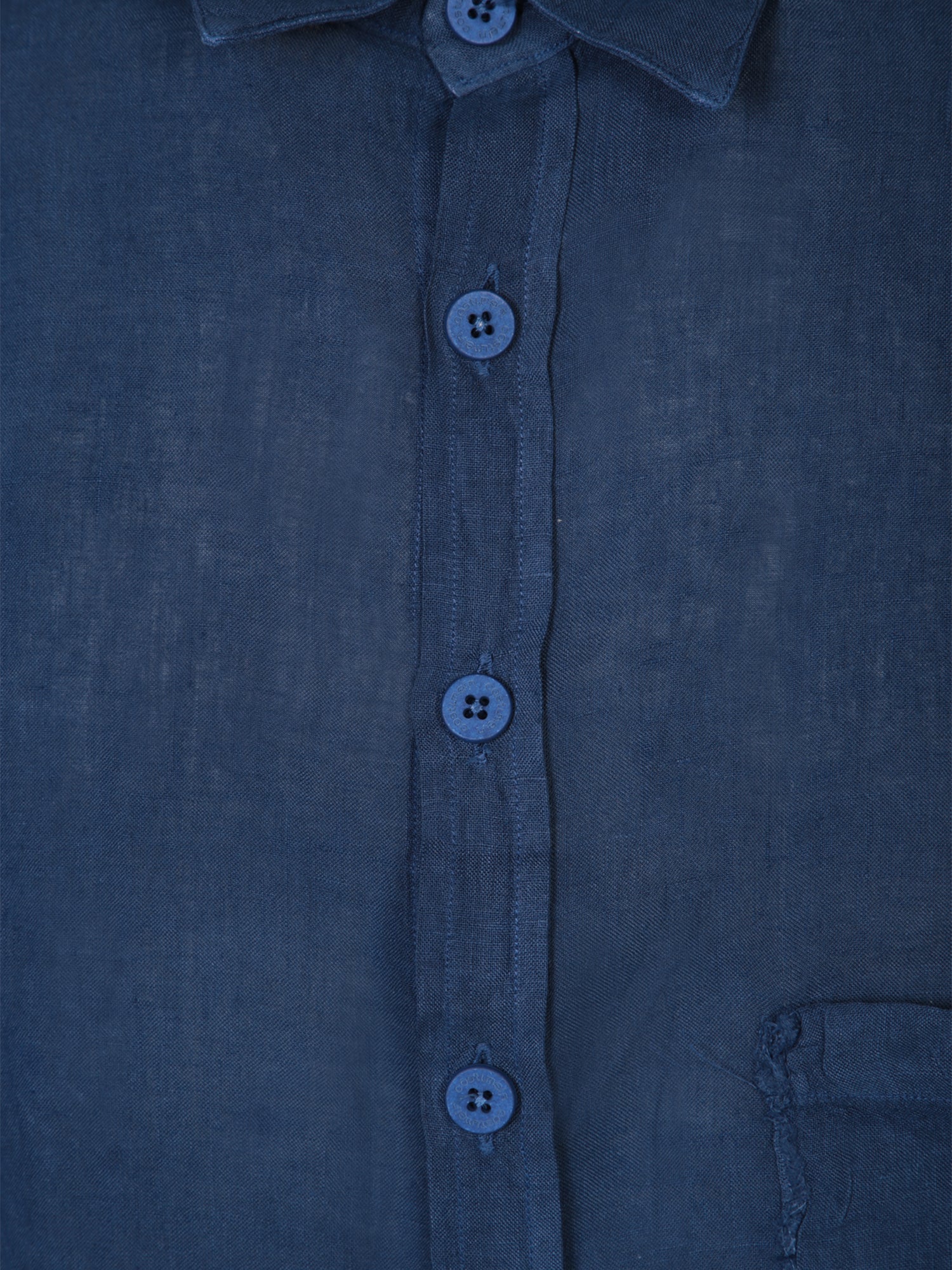 Short sleeves, linen fabric, chest patch pocket, front button closure, classic collar.
