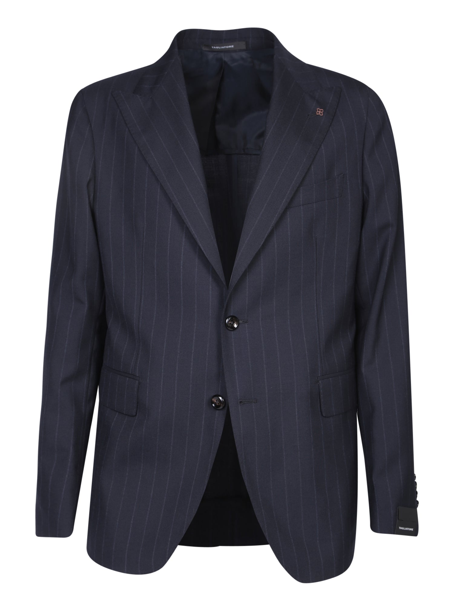 The refined Tagliatore suit blends a tailored silhouette with a modern blue stripe pattern. Meticulous craftsmanship ensures timeless elegance and a perfect fit for any formal occasion.