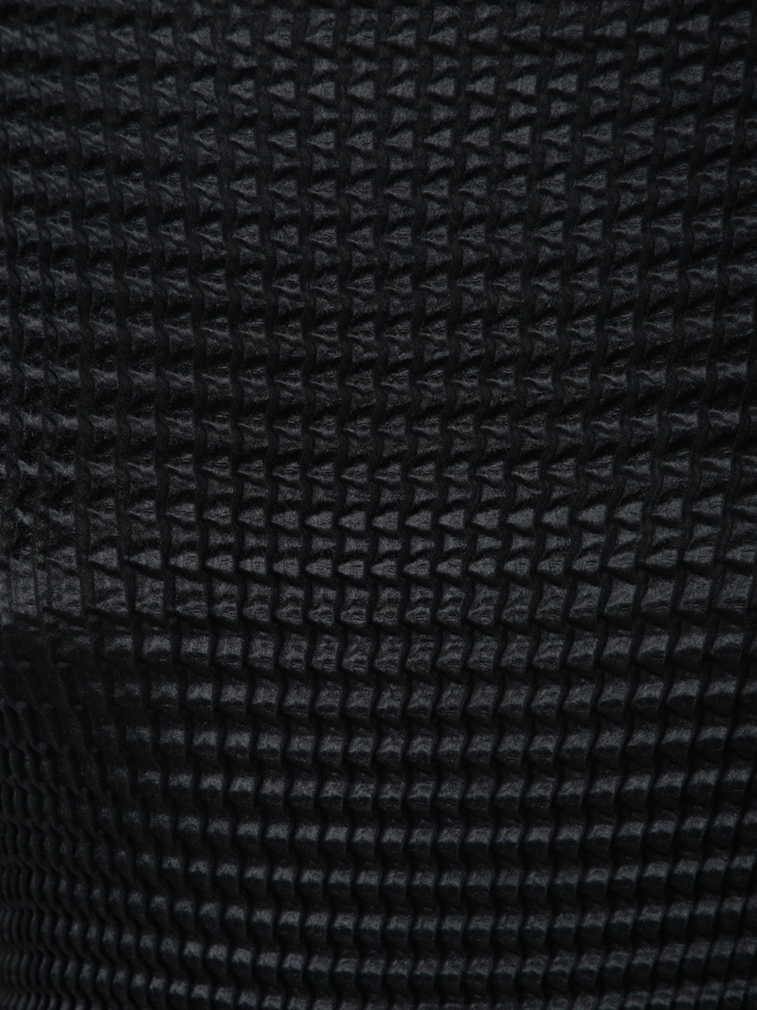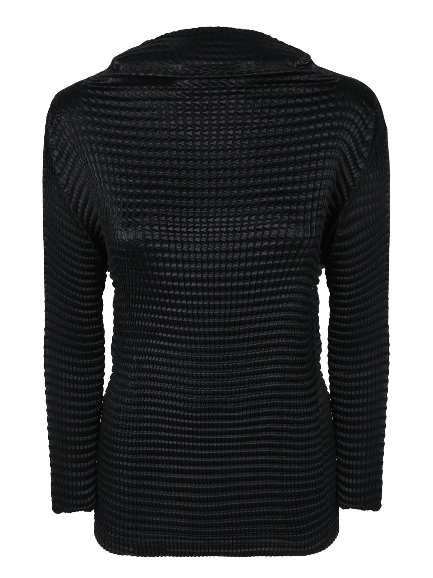 Elegance and modernity blend in this black pleated top by ISSEY MIYAKE. Featuring an innovative fabric that mimics the softness of suede, this piece is a sophisticated choice for those who like to stand out.