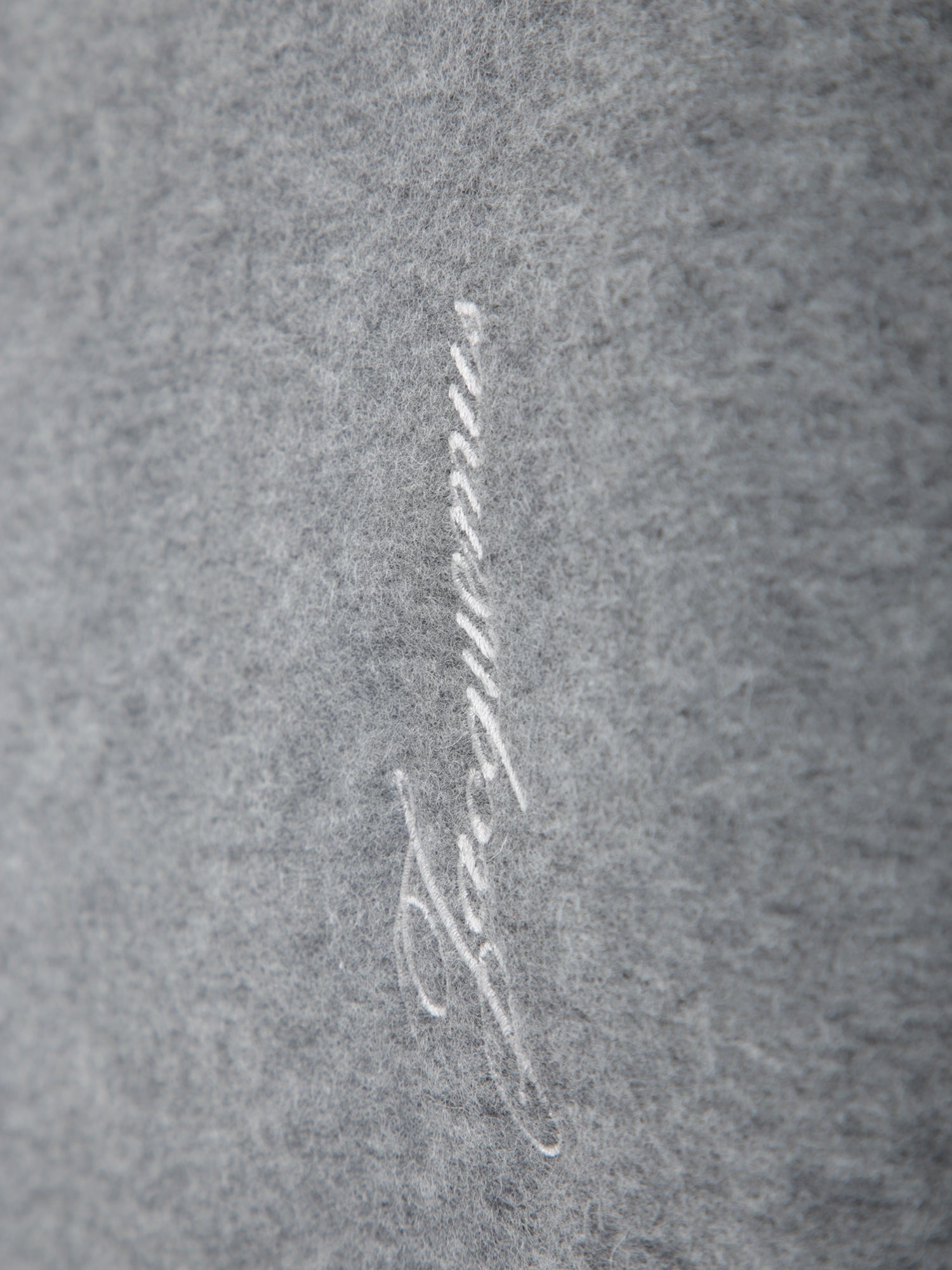 Soft fabric scarf with a gradient finish. Jacquemus embroidered logo in tone-on-tone. Fringed edges.
